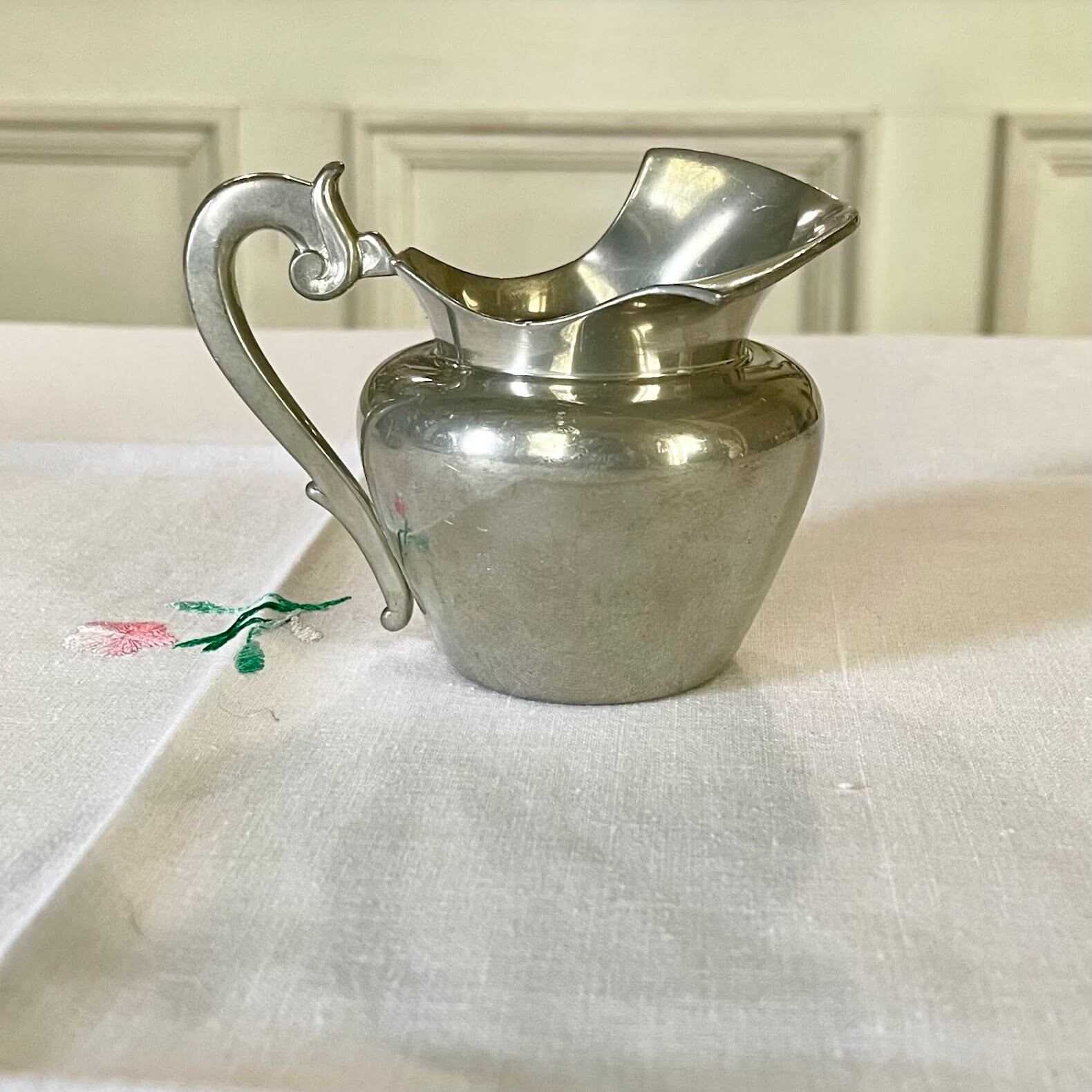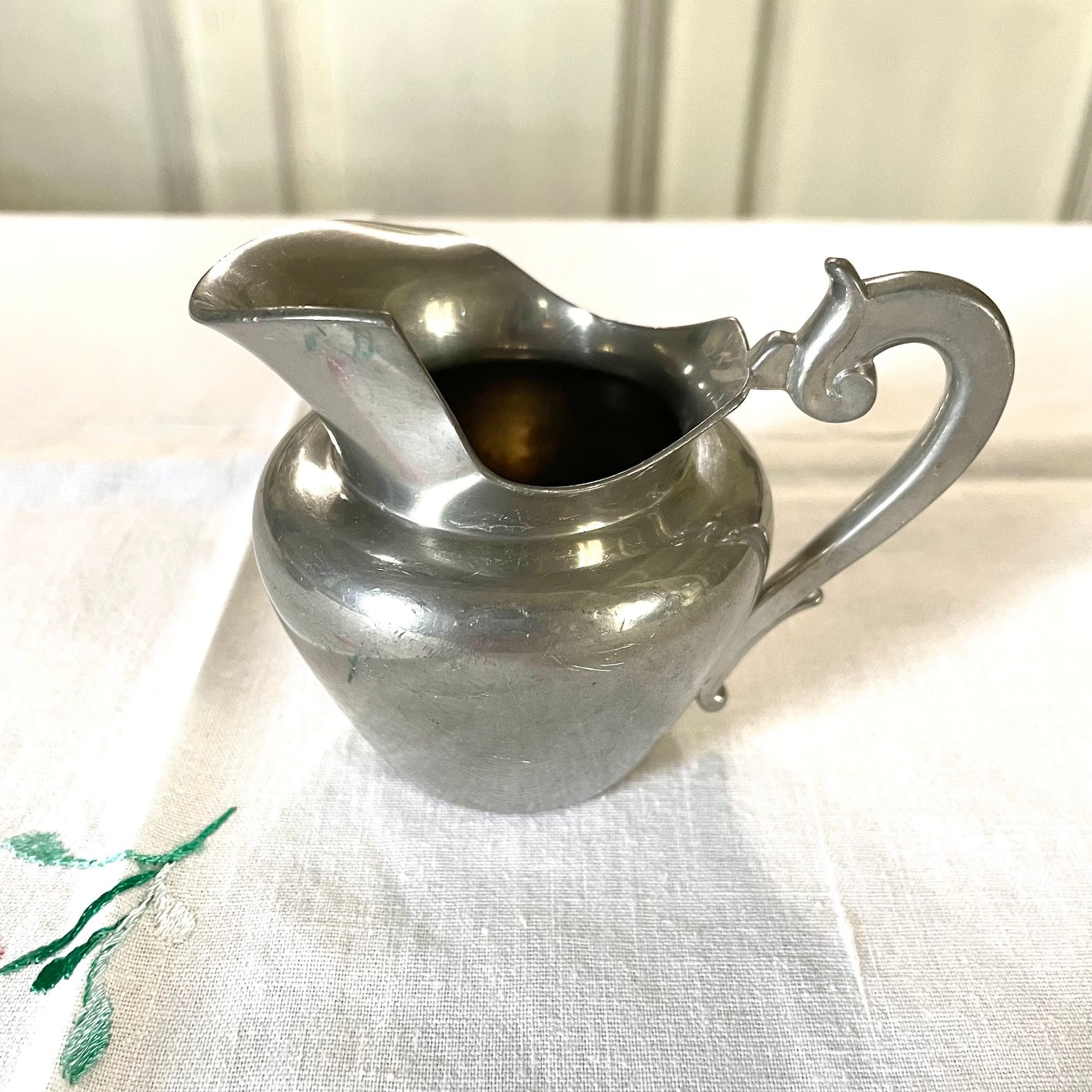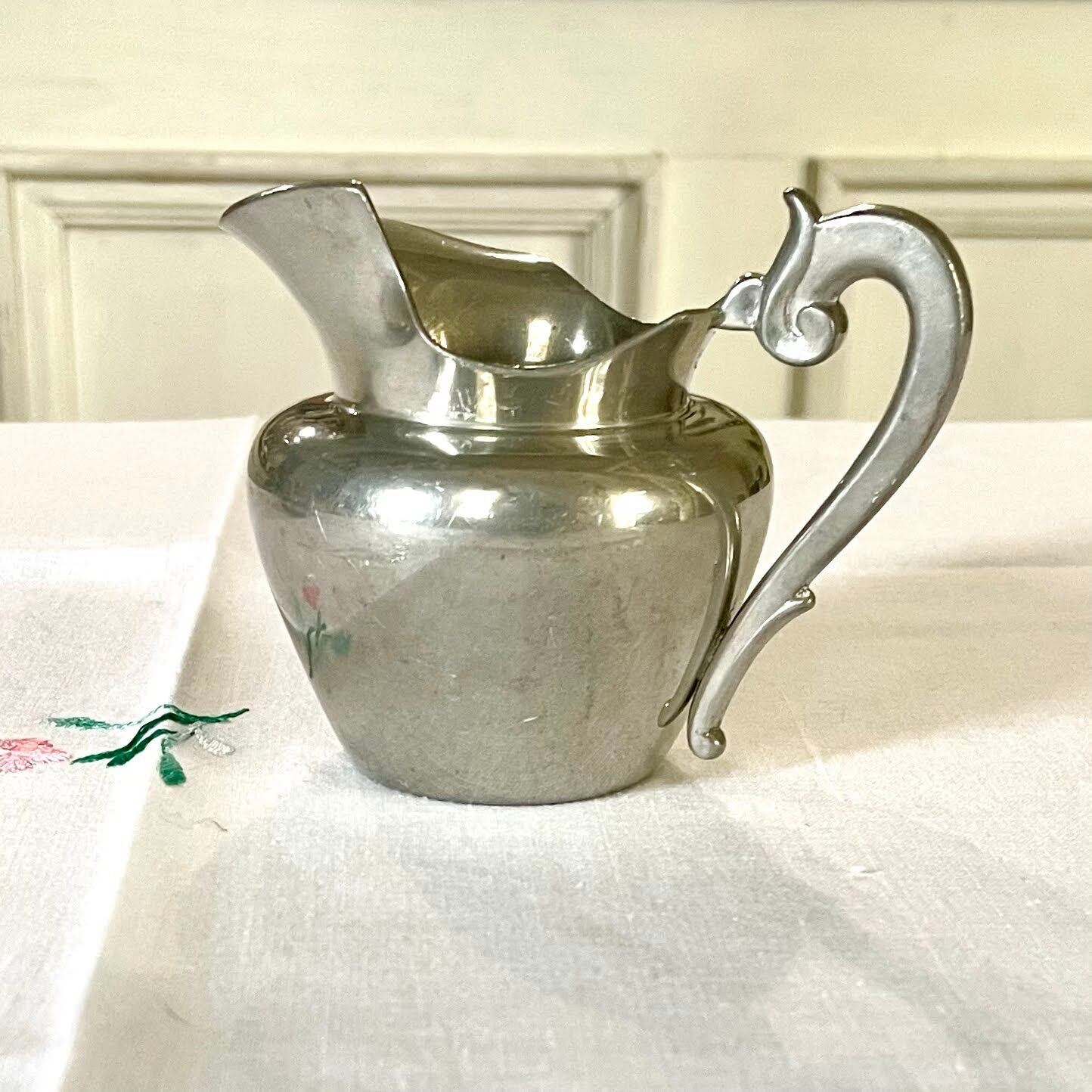 〖フランスアンティーク エタン シルバーメタル クレミエ ミルクピッチャー クリームポット フランスシャビーシック【703】〗