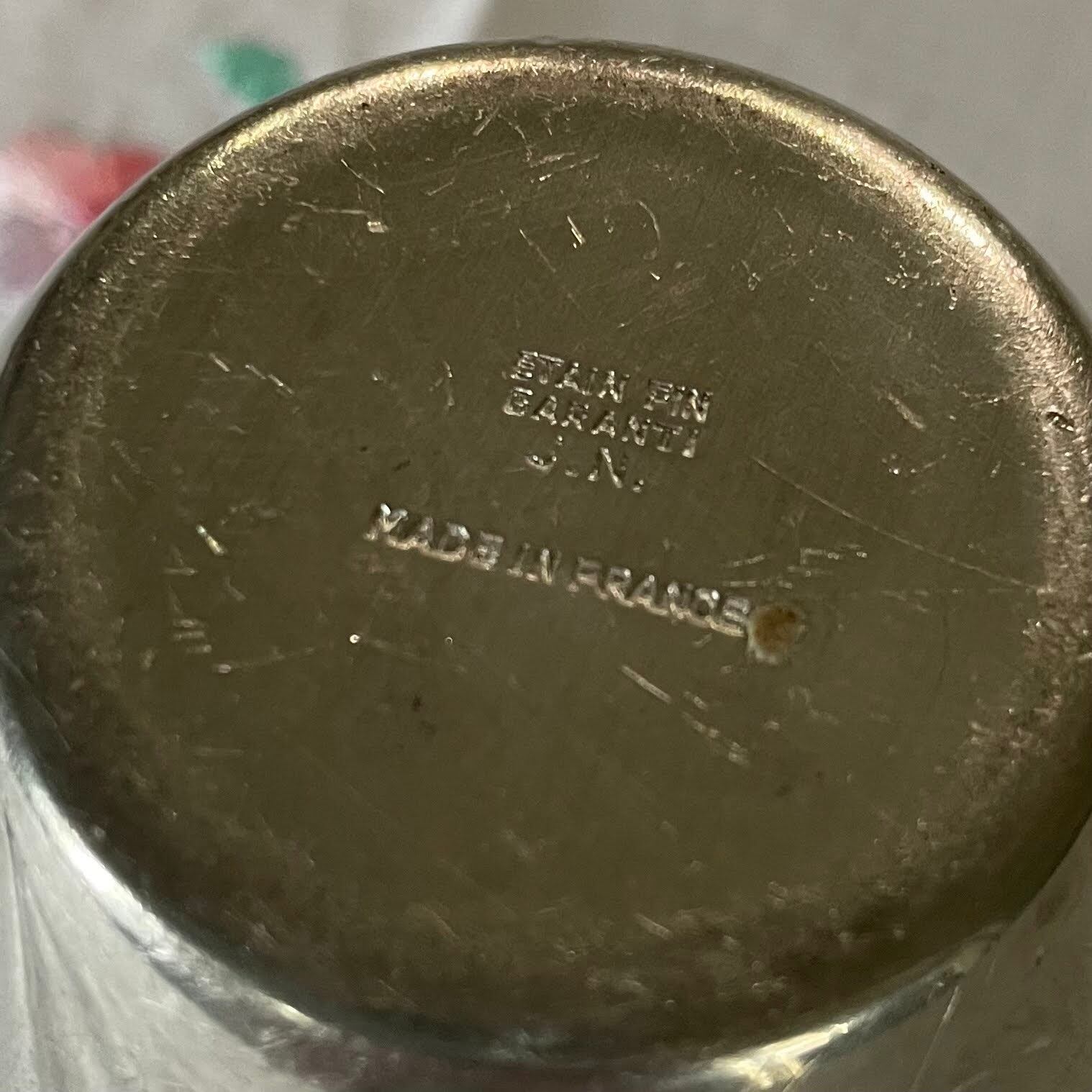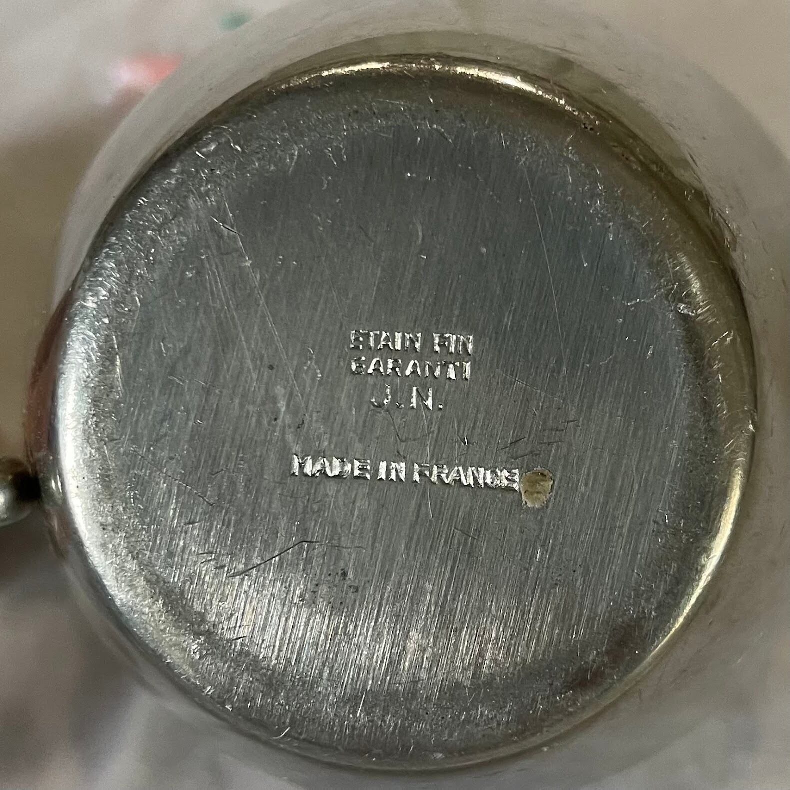 ETAIN FIN(鉛を含まないエタン)の刻印あり。高品質な錫製です。
