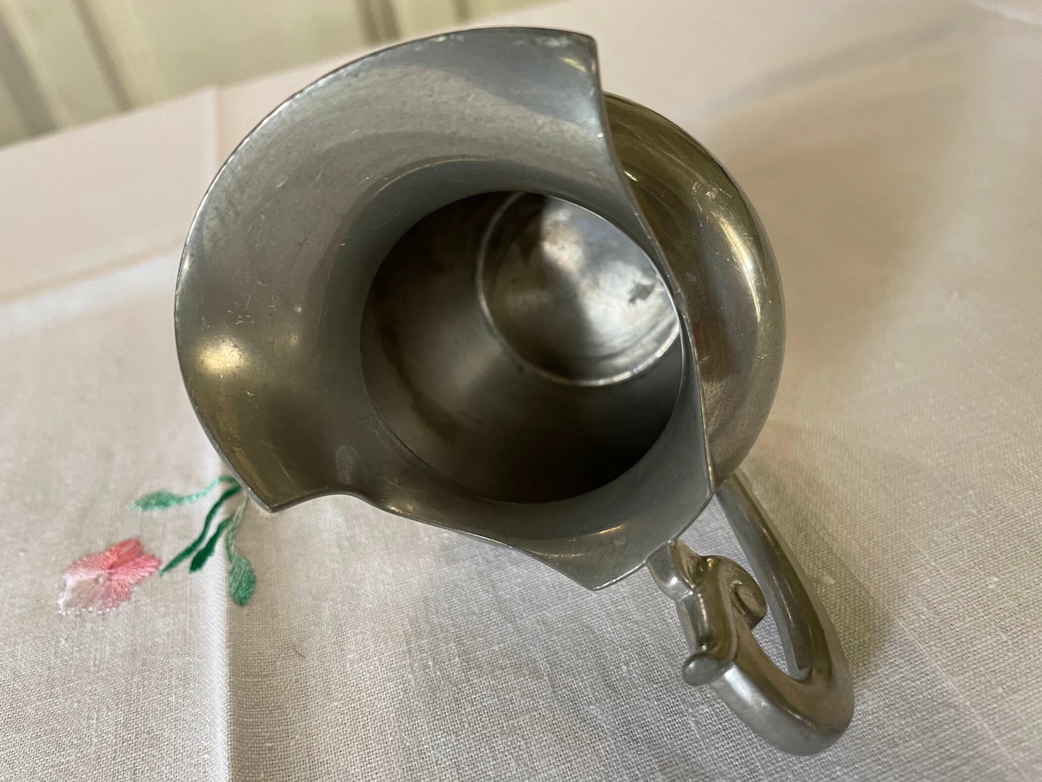 注ぎ口に変形、細かなキズ、内側に薄っすら変色があります。