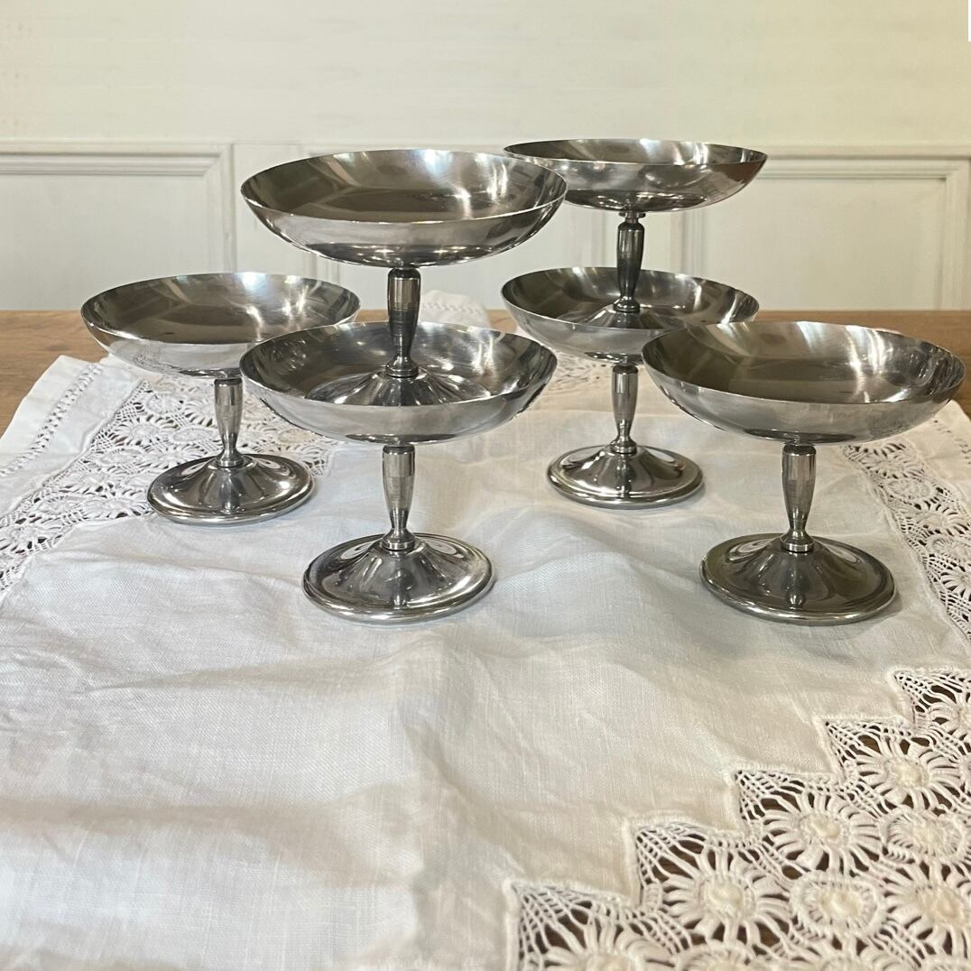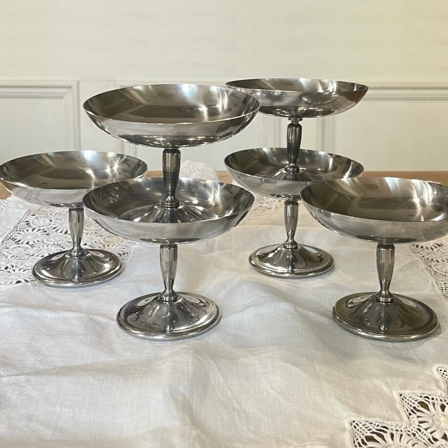 【送料無料】【2個セット】フランスアンティーク エレガント アイスカップ グラス ステンレス フランスインテリア【770-B】【フランスバイヤーセレクト品】