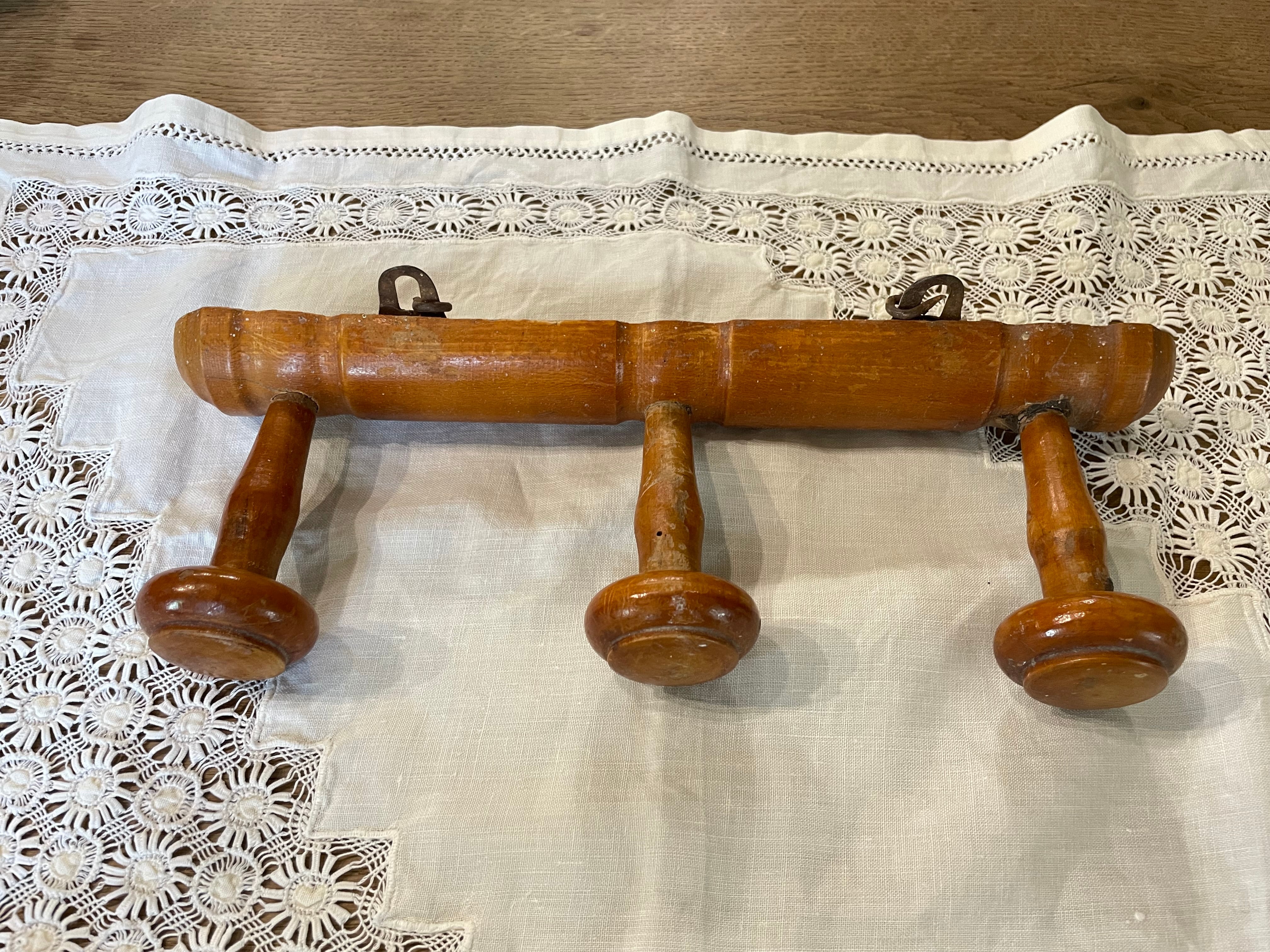 【送料無料】フランスアンティーク ウォールハンガー 壁付フック バンブースタイル 3フック 木製【785】【フランスバイヤーセレクト品】