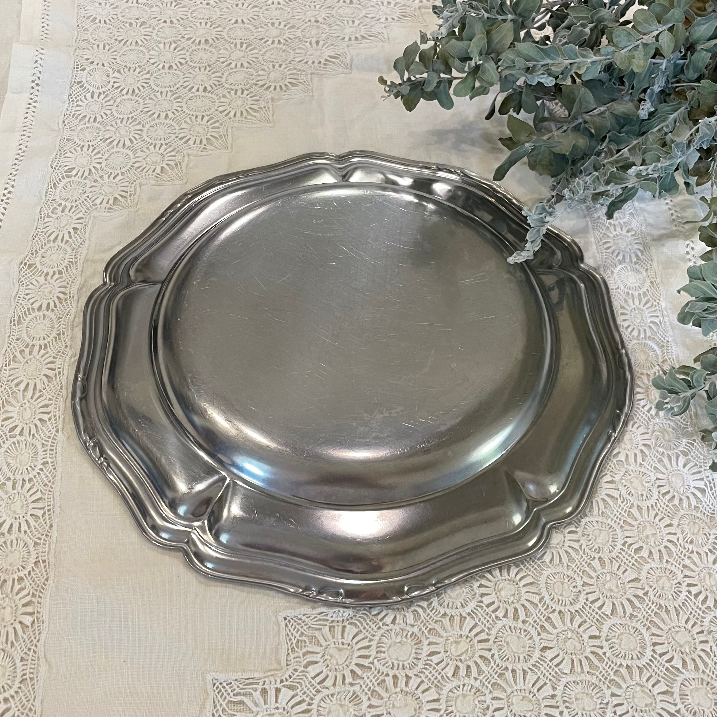 〖フランスアンティーク 花リム 丸型 プレート フランスインテリア【742-A】〗