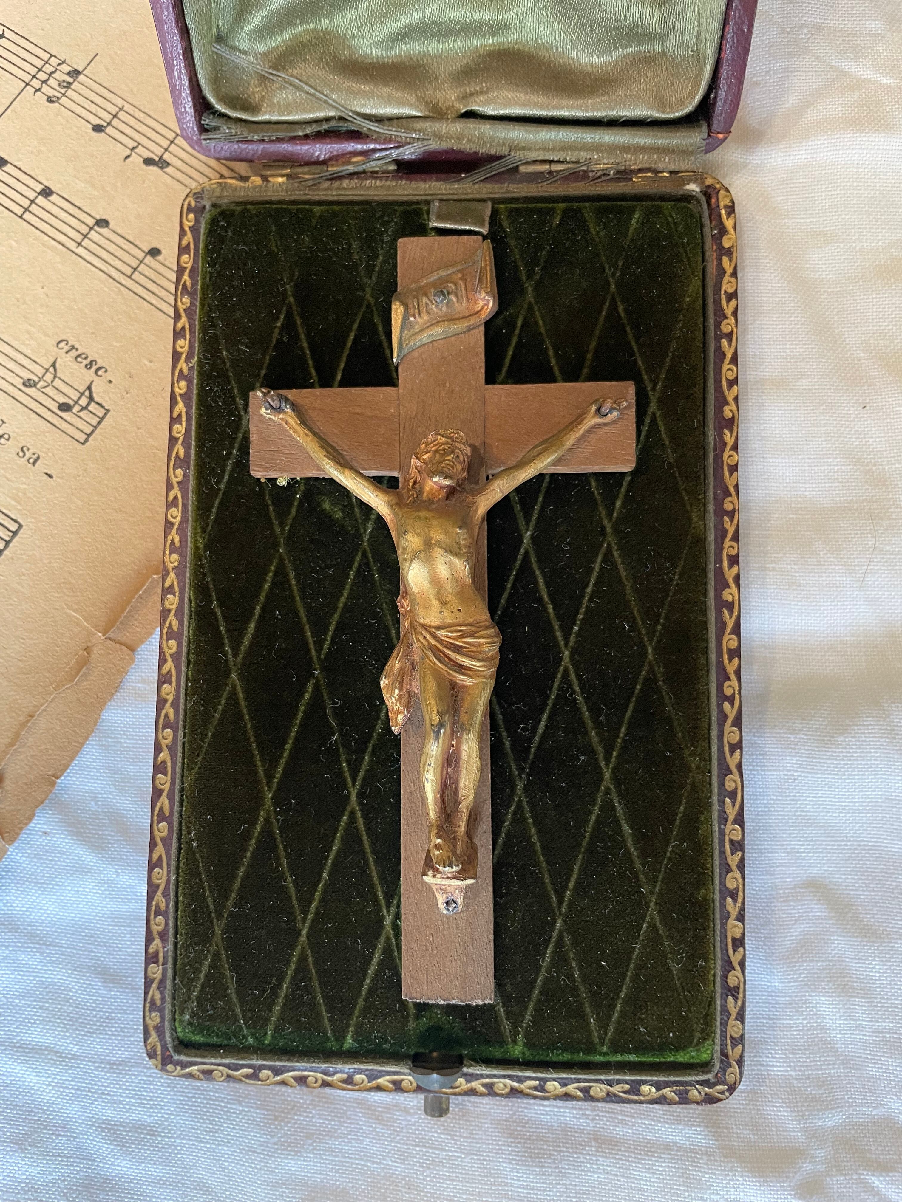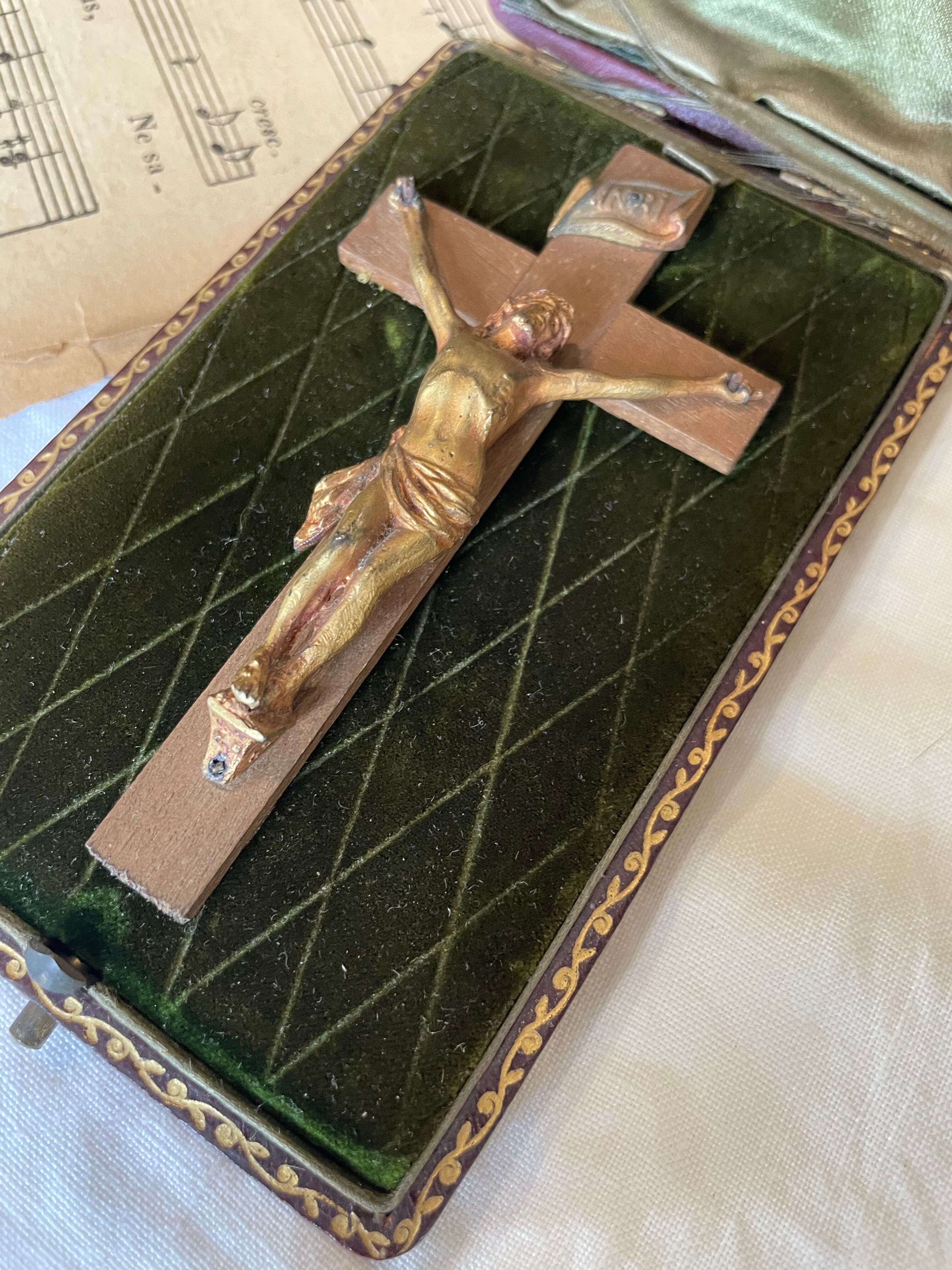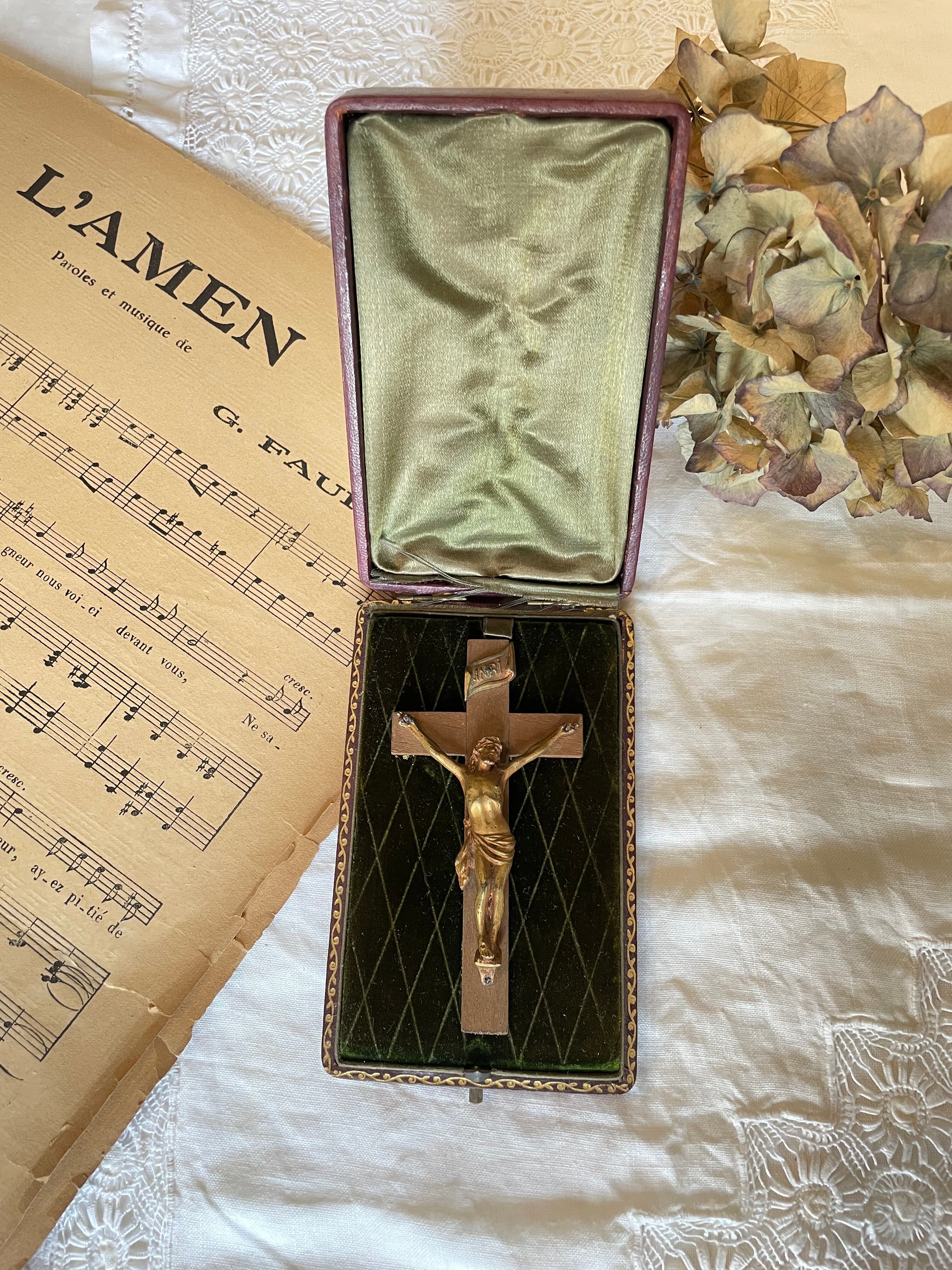 〖フランスアンティーク 箱入りキリスト十字架 組み立て式【821】〗