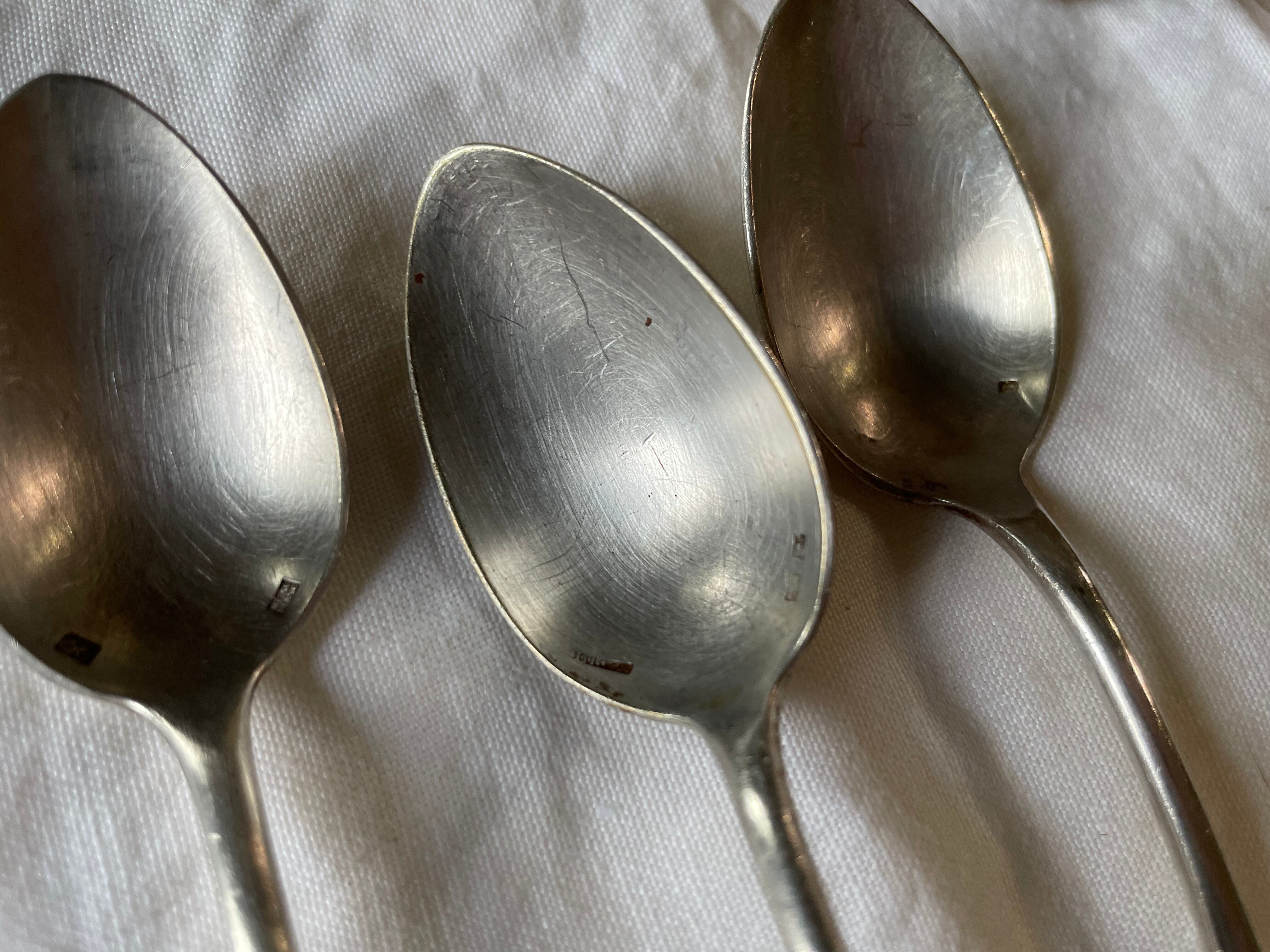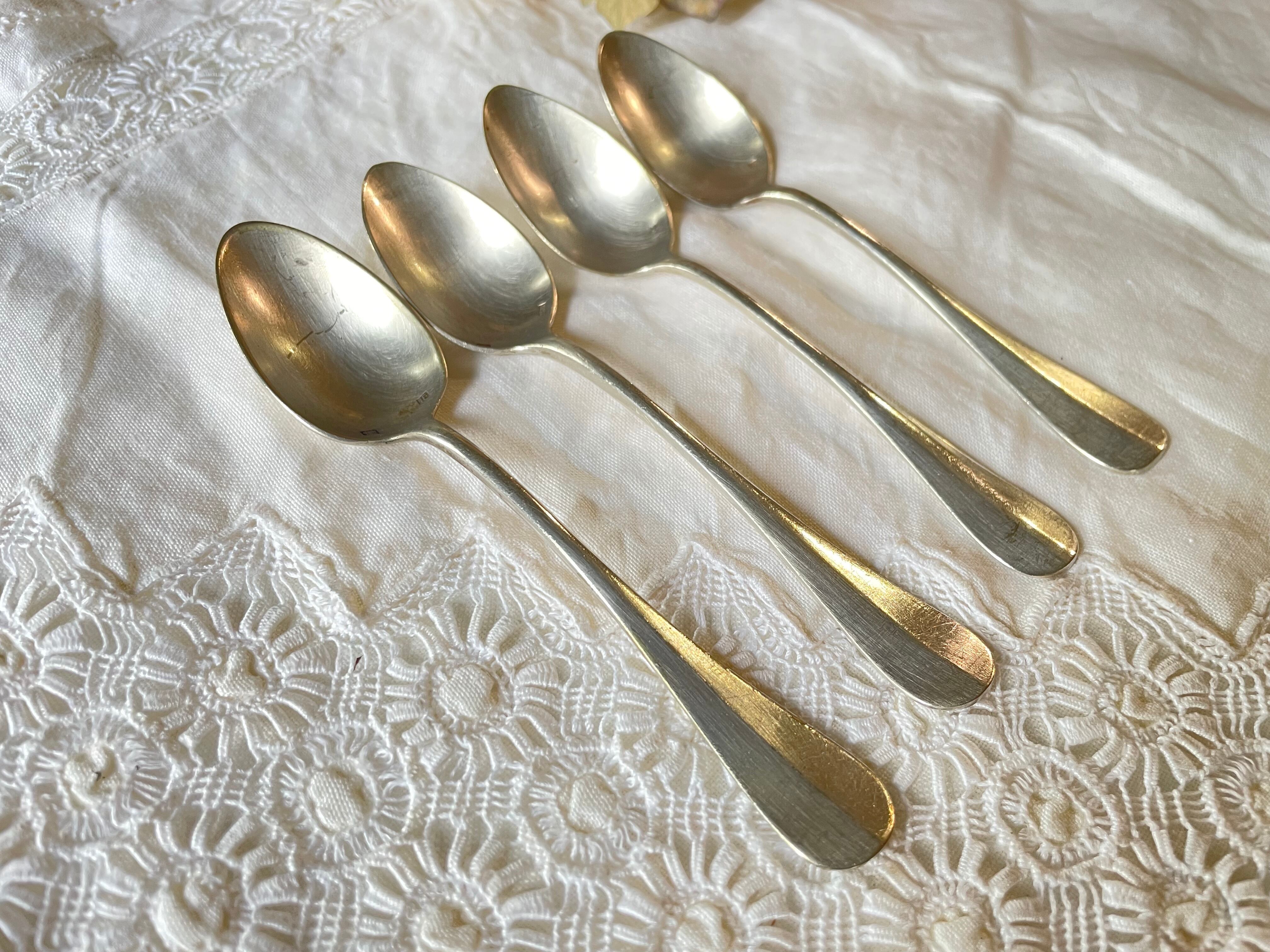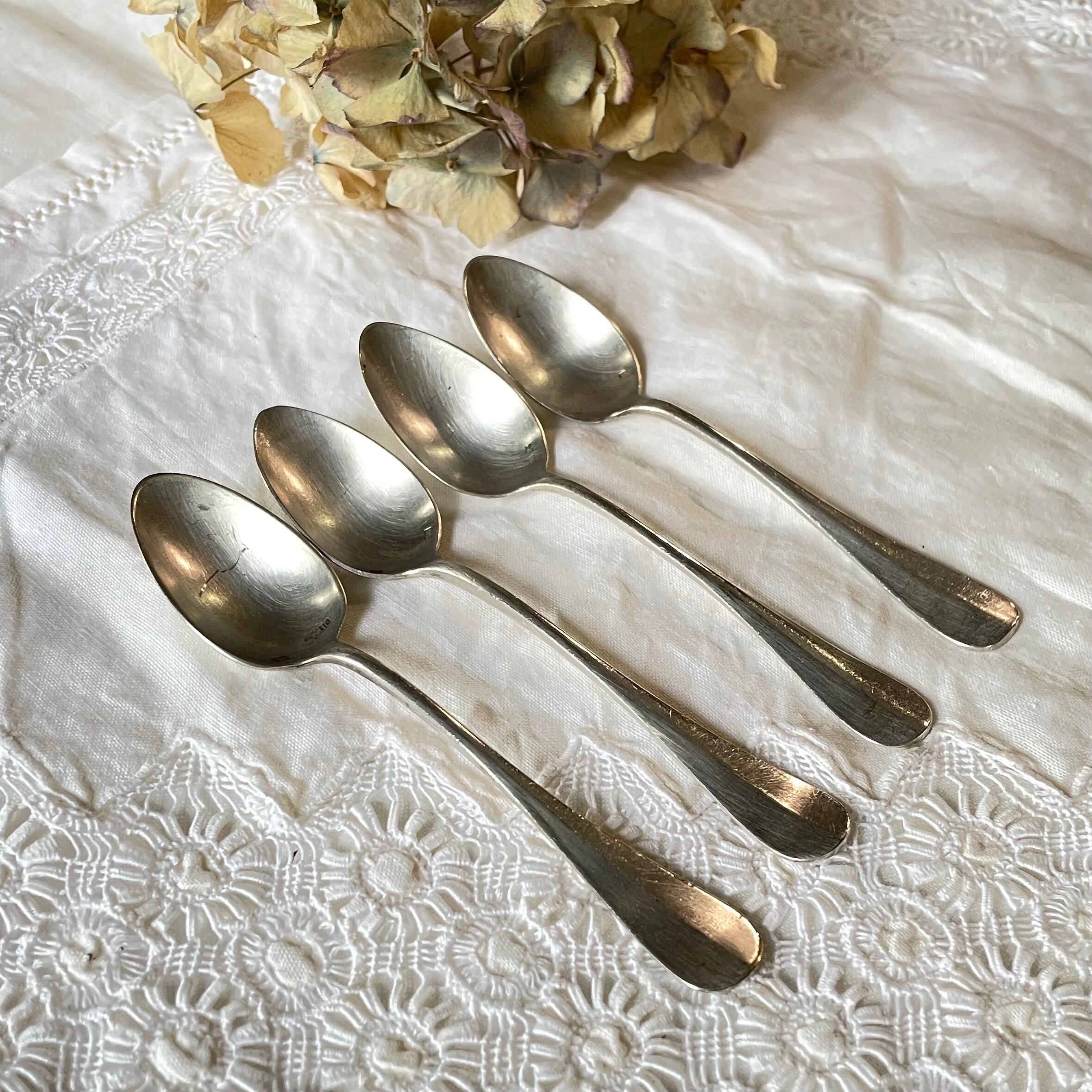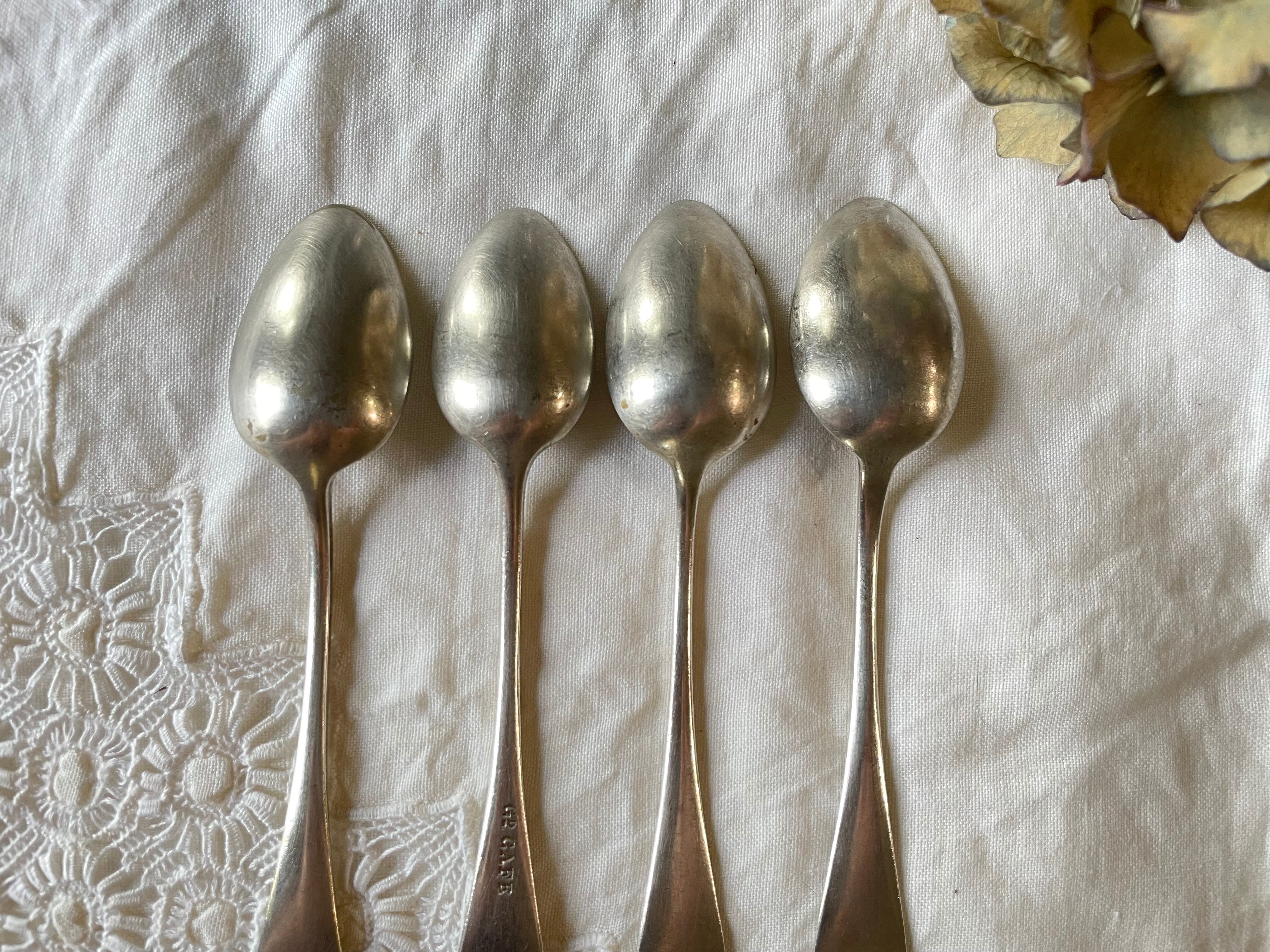 〖(4本セット)フランスアンティーク シルバーメタル デザートスプーン セット【853】〗