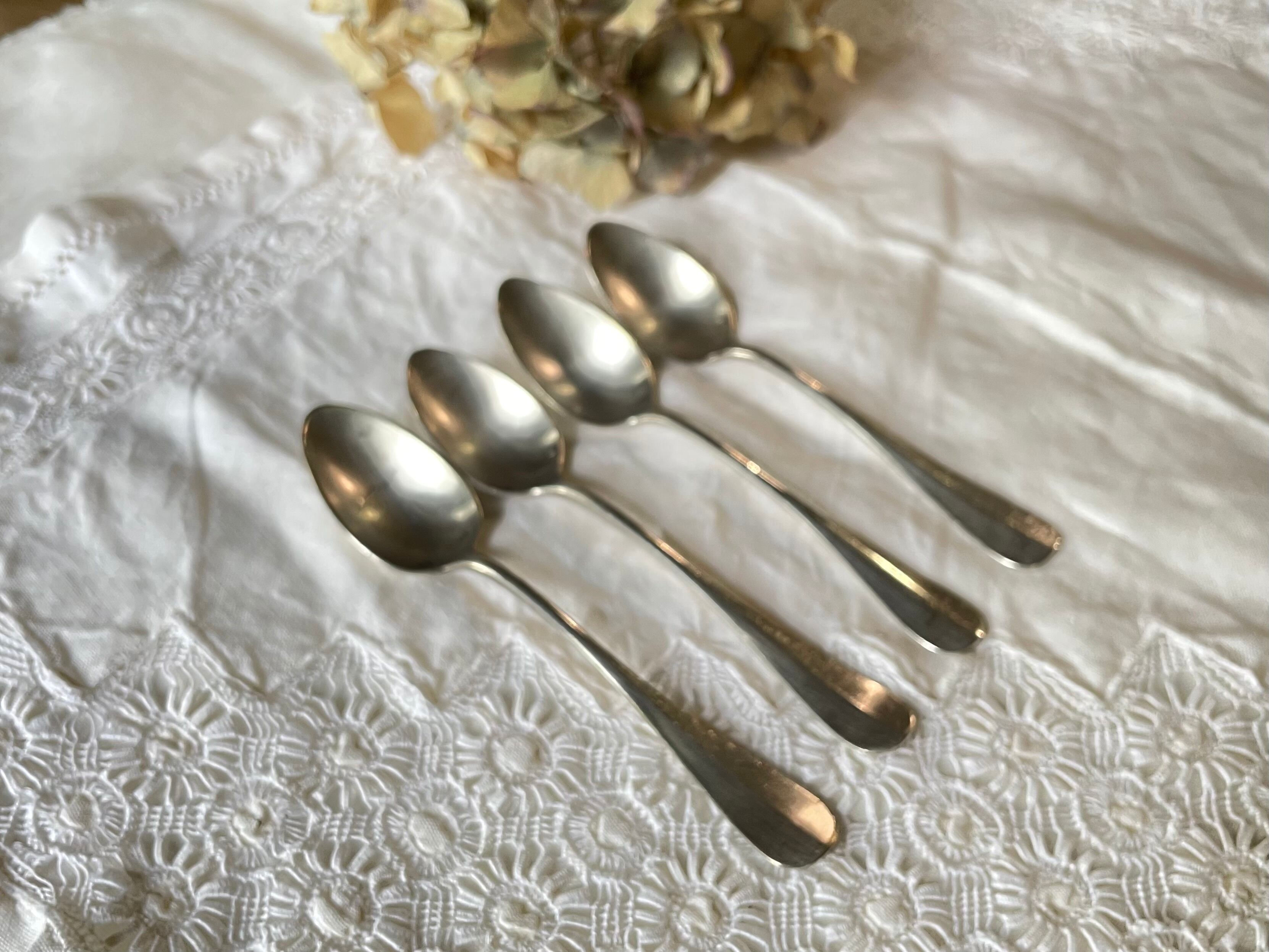 【送料無料】(4本セット)フランスアンティーク シルバーメタル デザートスプーン セット【853】【フランスバイヤーセレクト品】