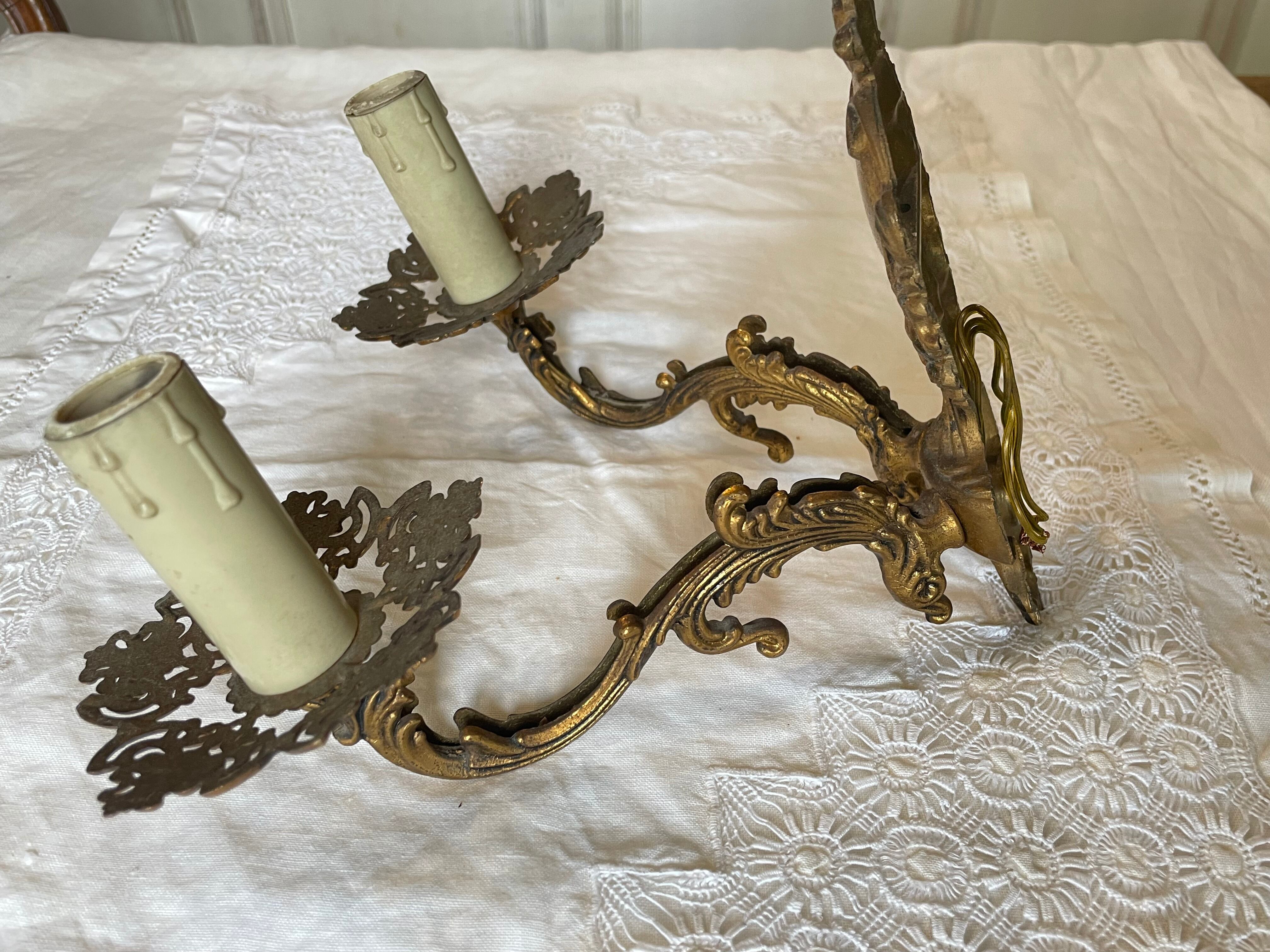 【送料無料】B フランスアンティーク ウォールランプ 真鍮 レースデザイン【818】【フランスバイヤーセレクト品】