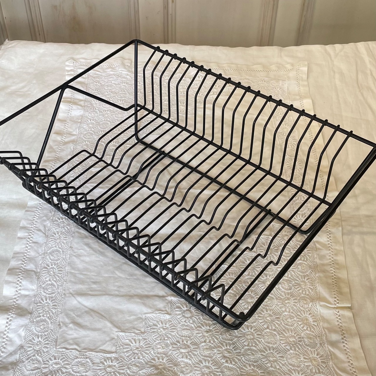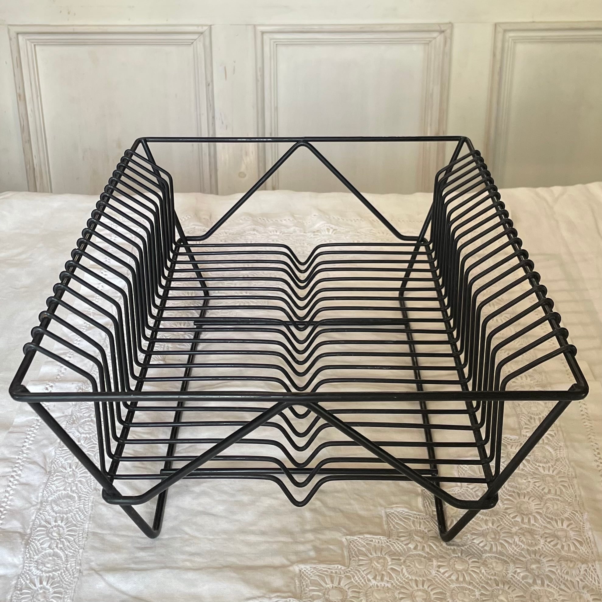 〖フランスアンティーク ディッシュラック プレート収納 メタル ブラック【822】〗