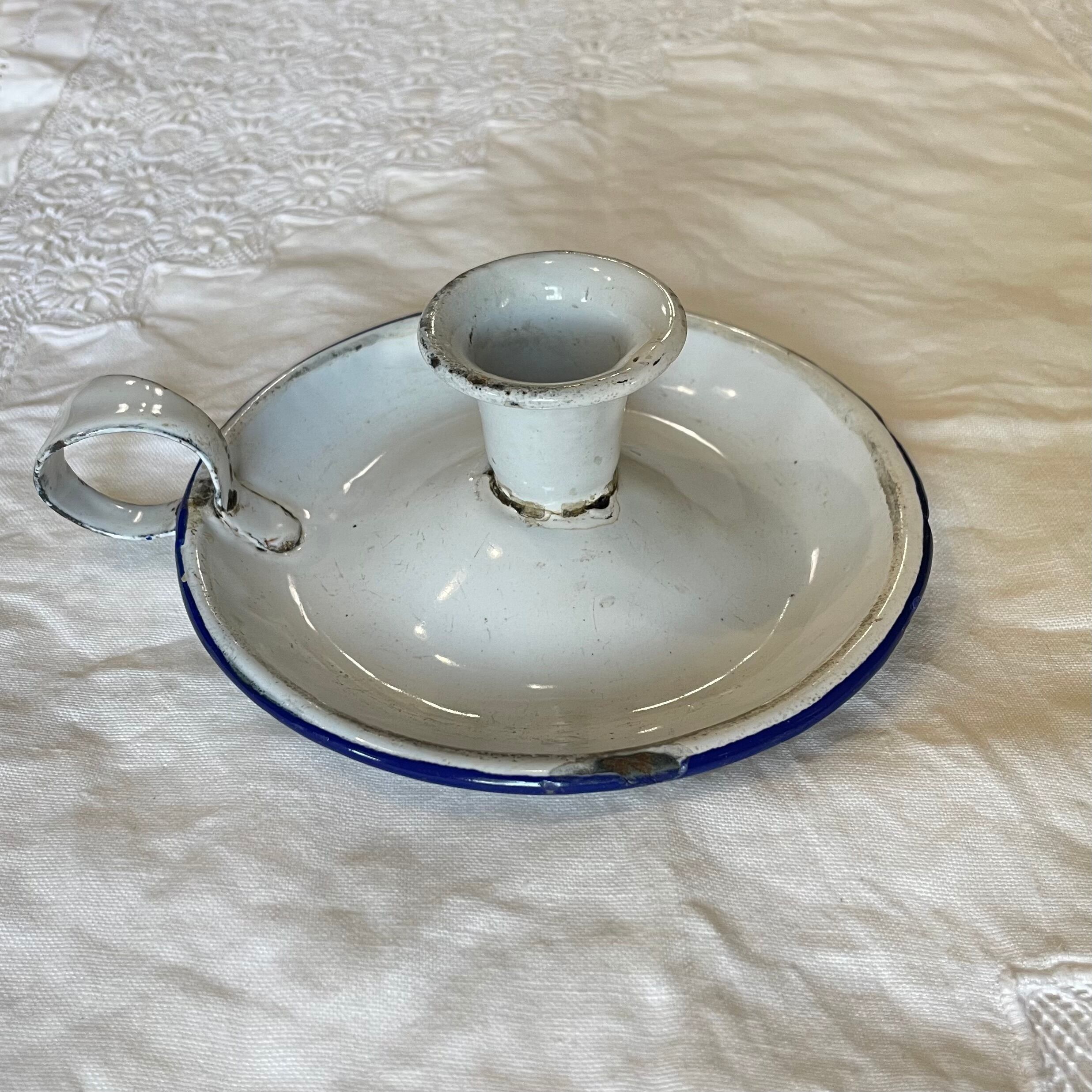 【送料無料】フランスアンティーク ホーローのキャンドルスタンド ホワイト シャビーシック【835】【フランスバイヤーセレクト品】