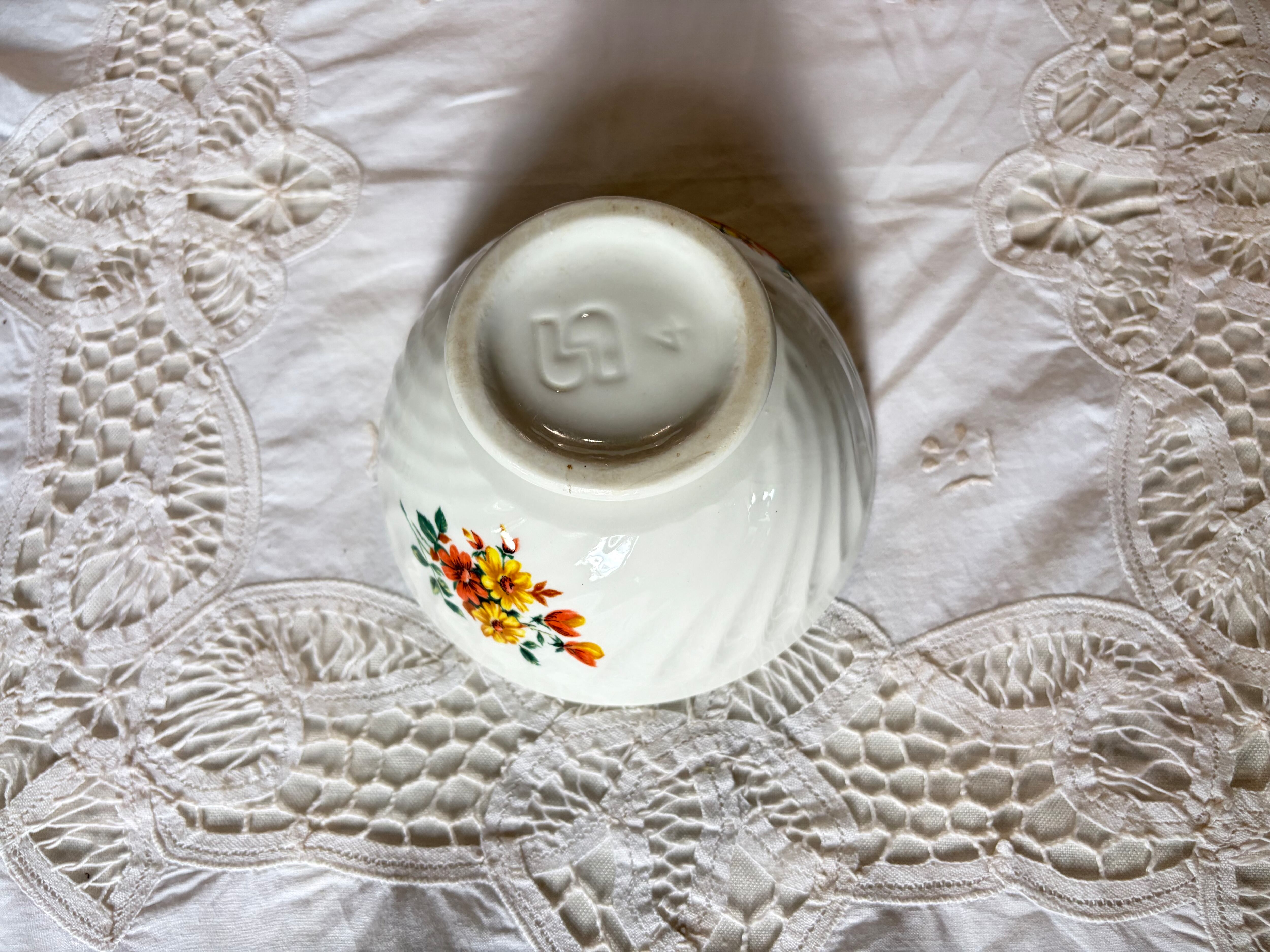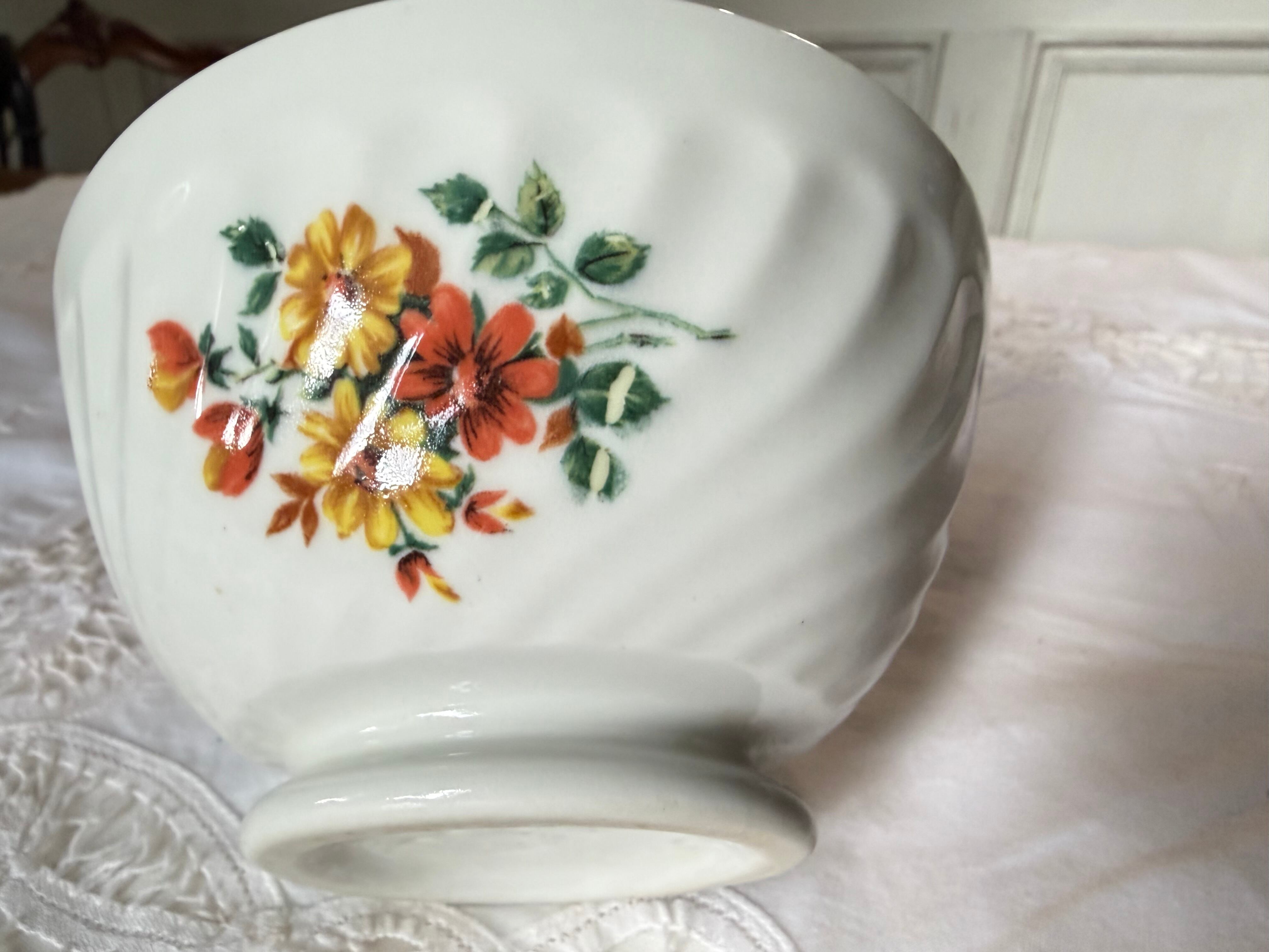 カフェオレボウル Sarreguemines(サルグミンヌ) フランス ヴィンテージ 落ち着いたオレンジと黄色のブーケ柄【V-292A】