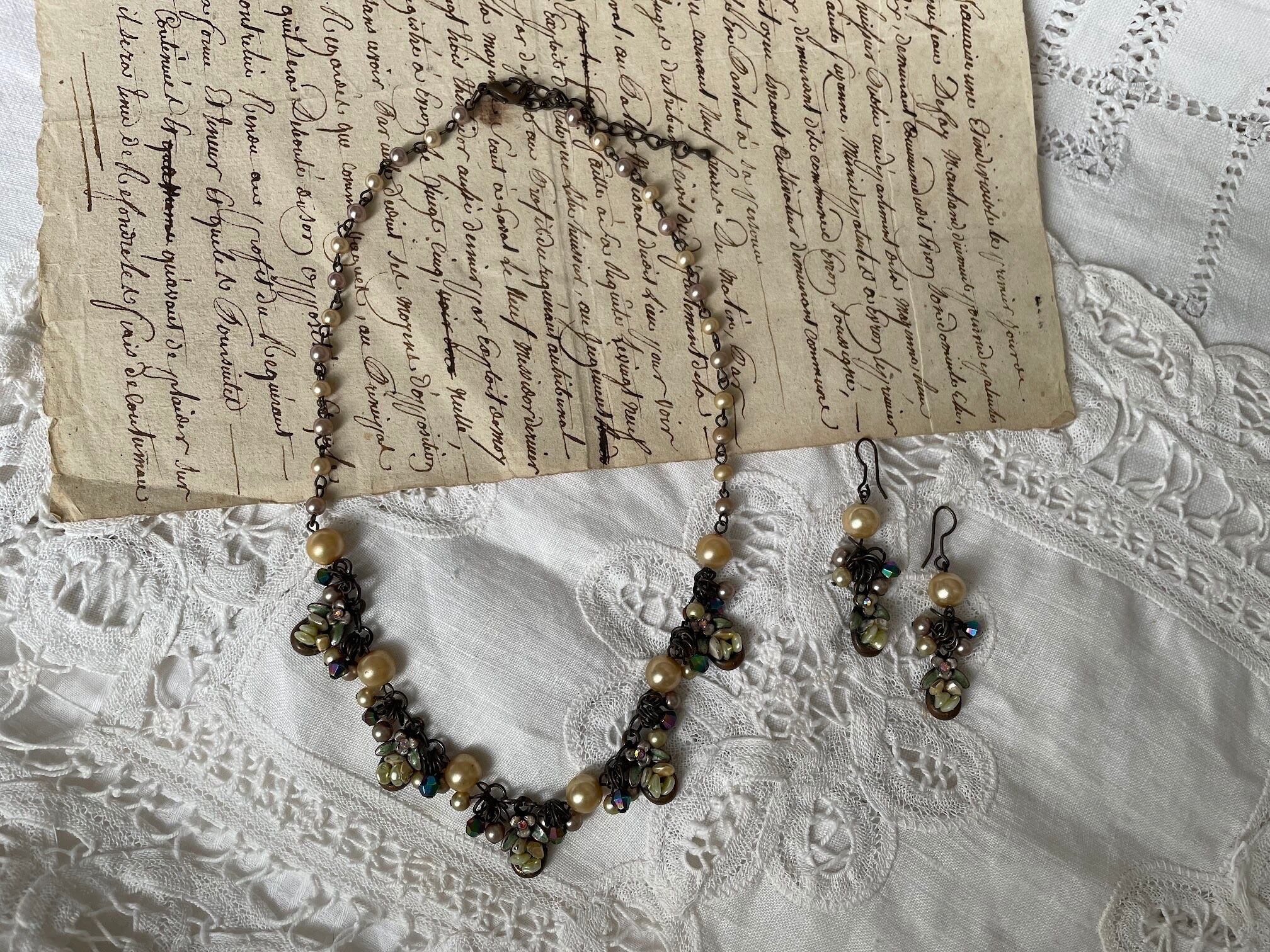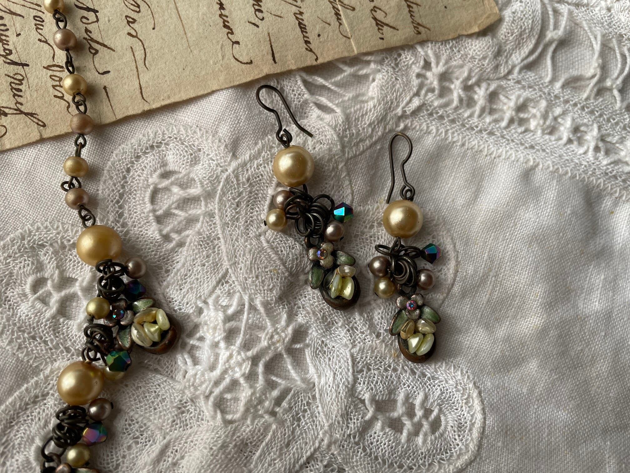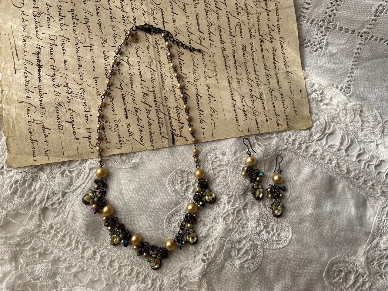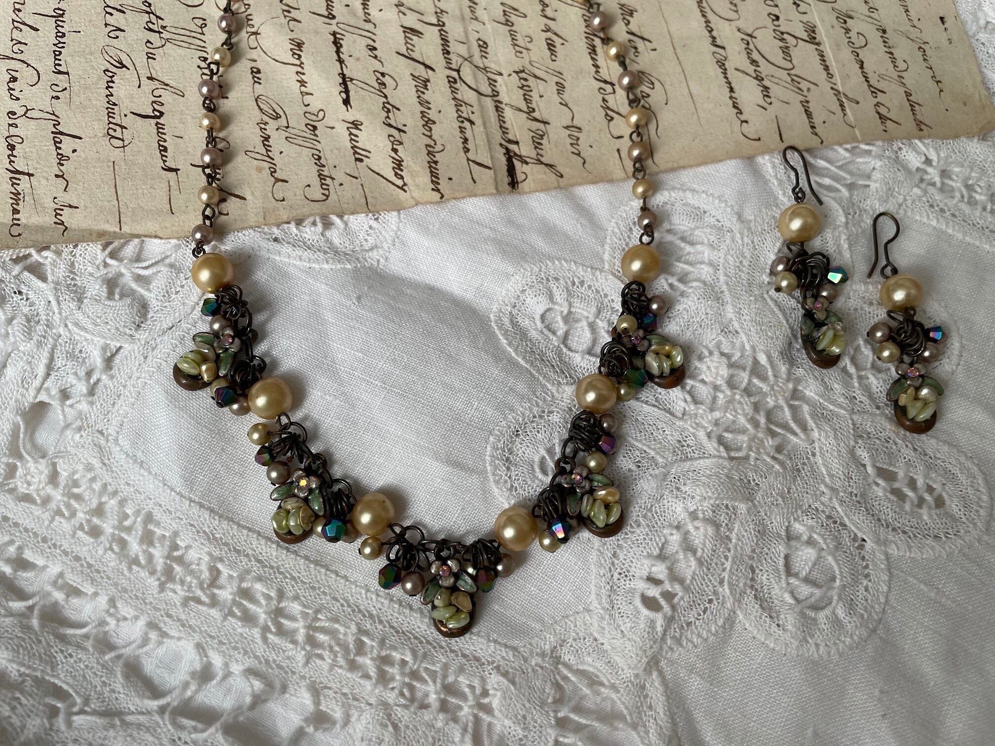 アンティーク ニュアンスカラーのネックレス&ピアス フランス ヴィンテージ 【B-41】