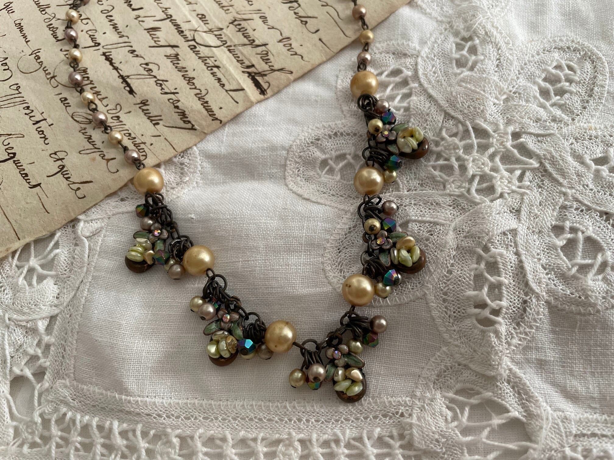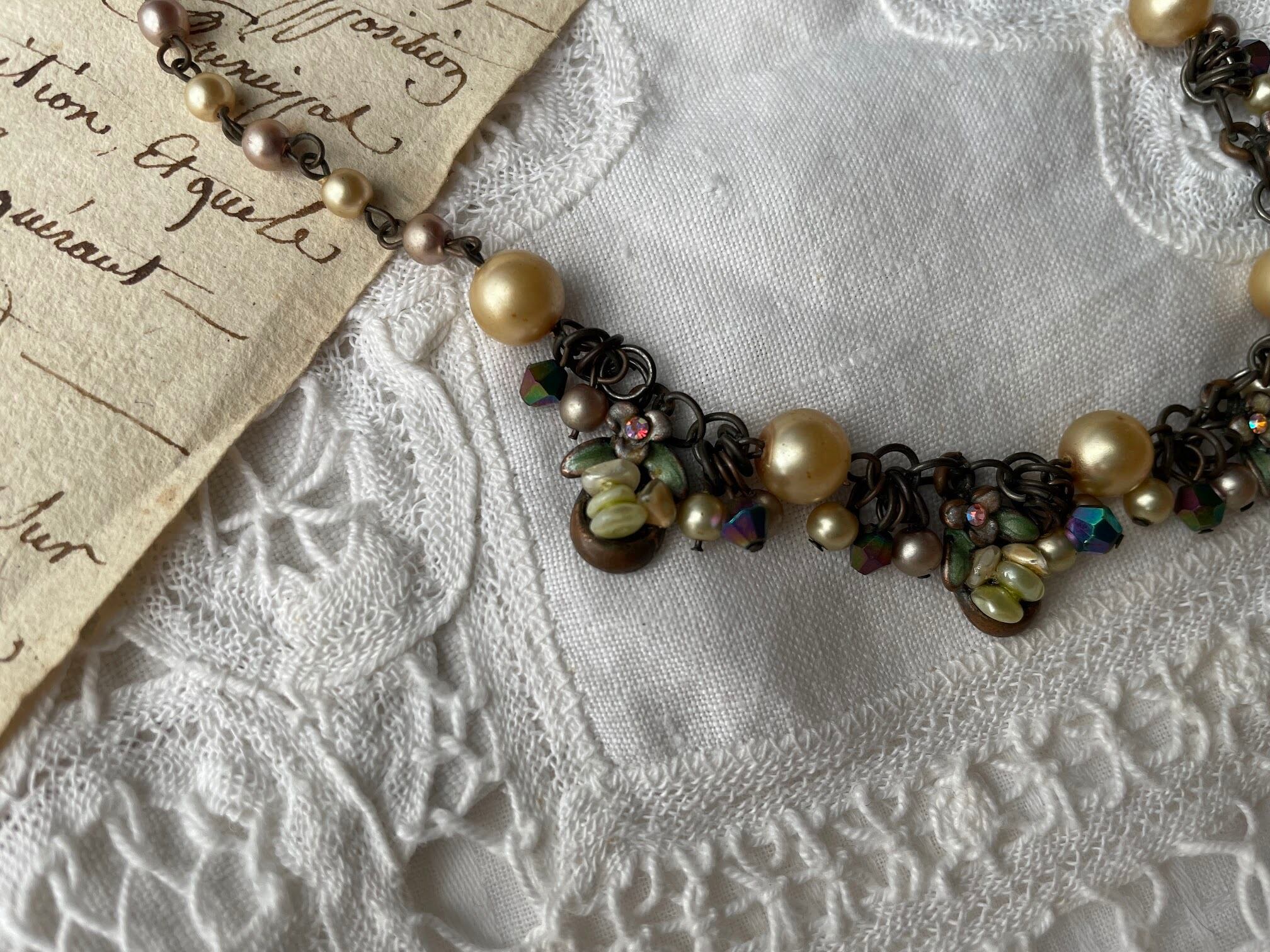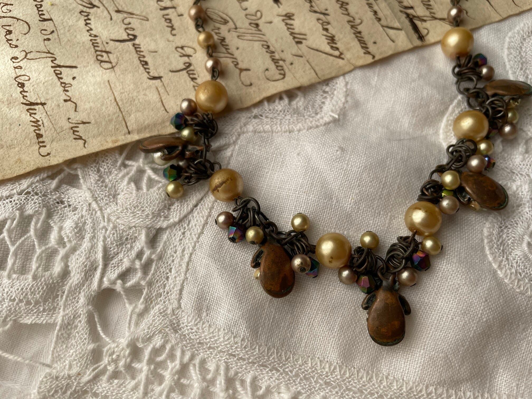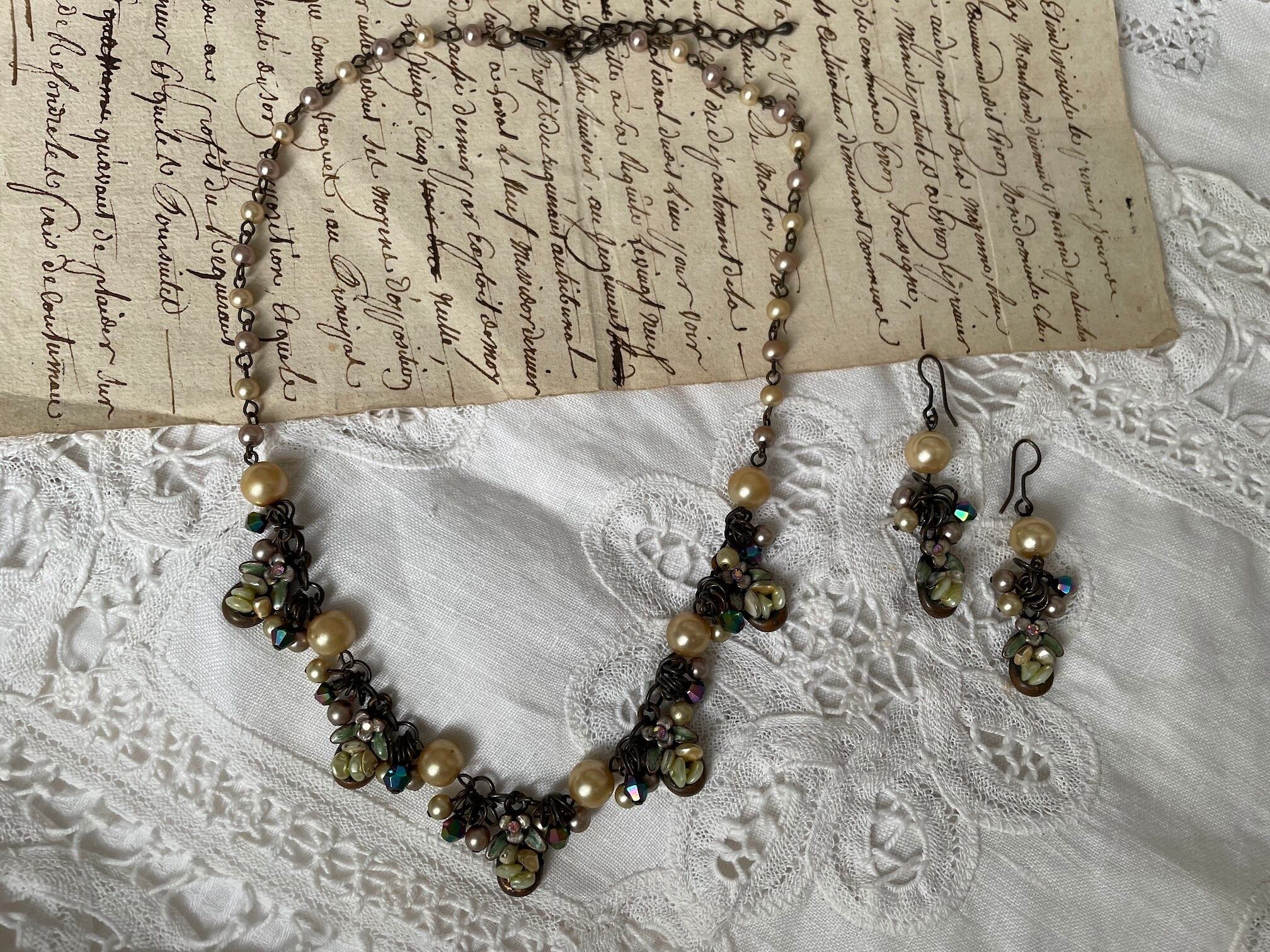 アンティーク ニュアンスカラーのネックレス&ピアス フランス ヴィンテージ 【B-41】