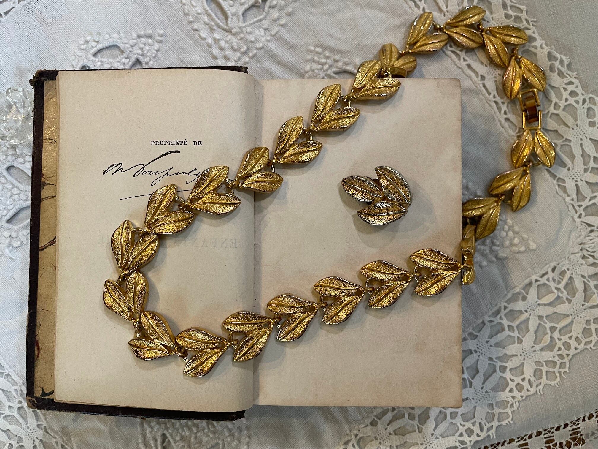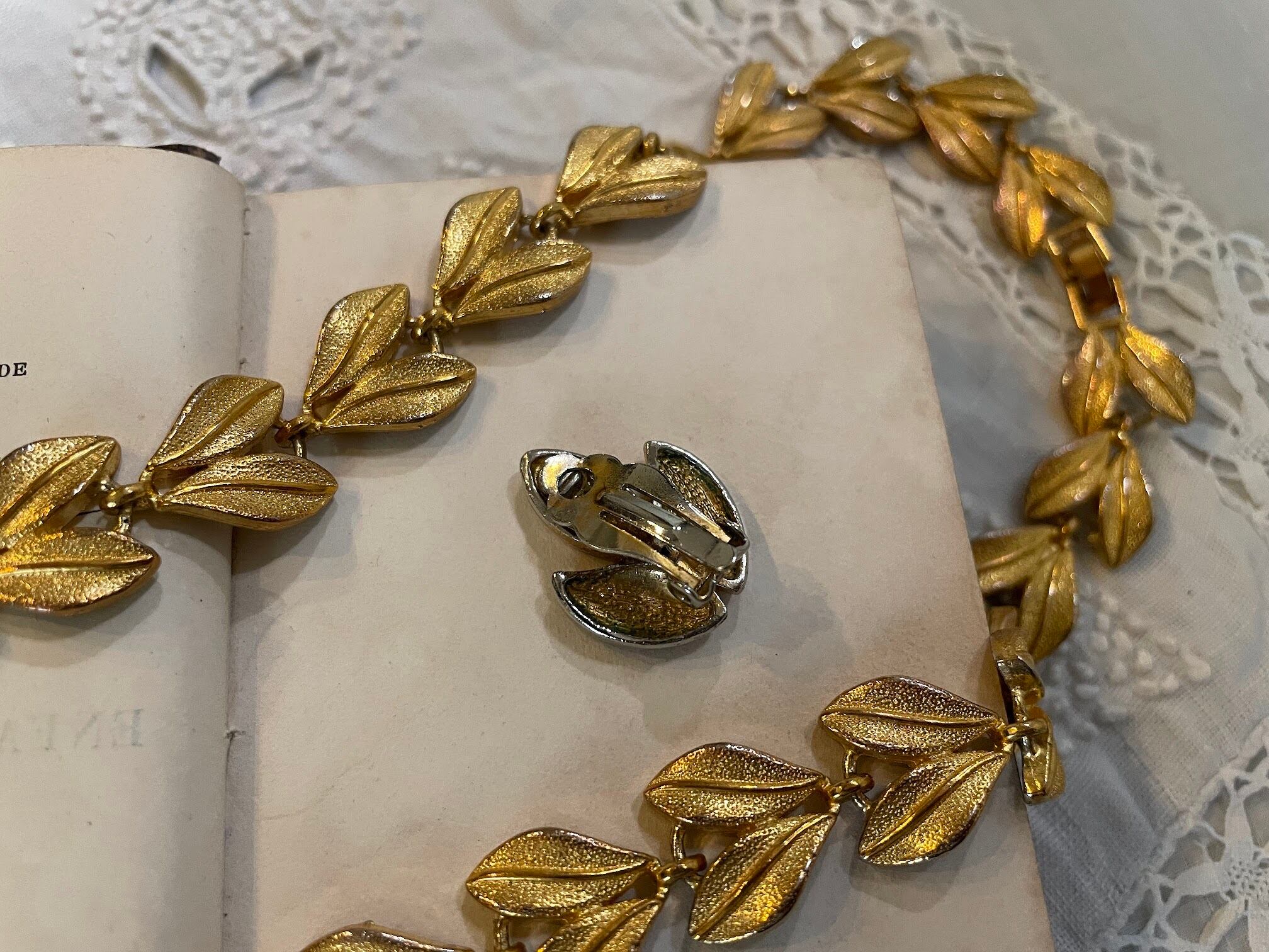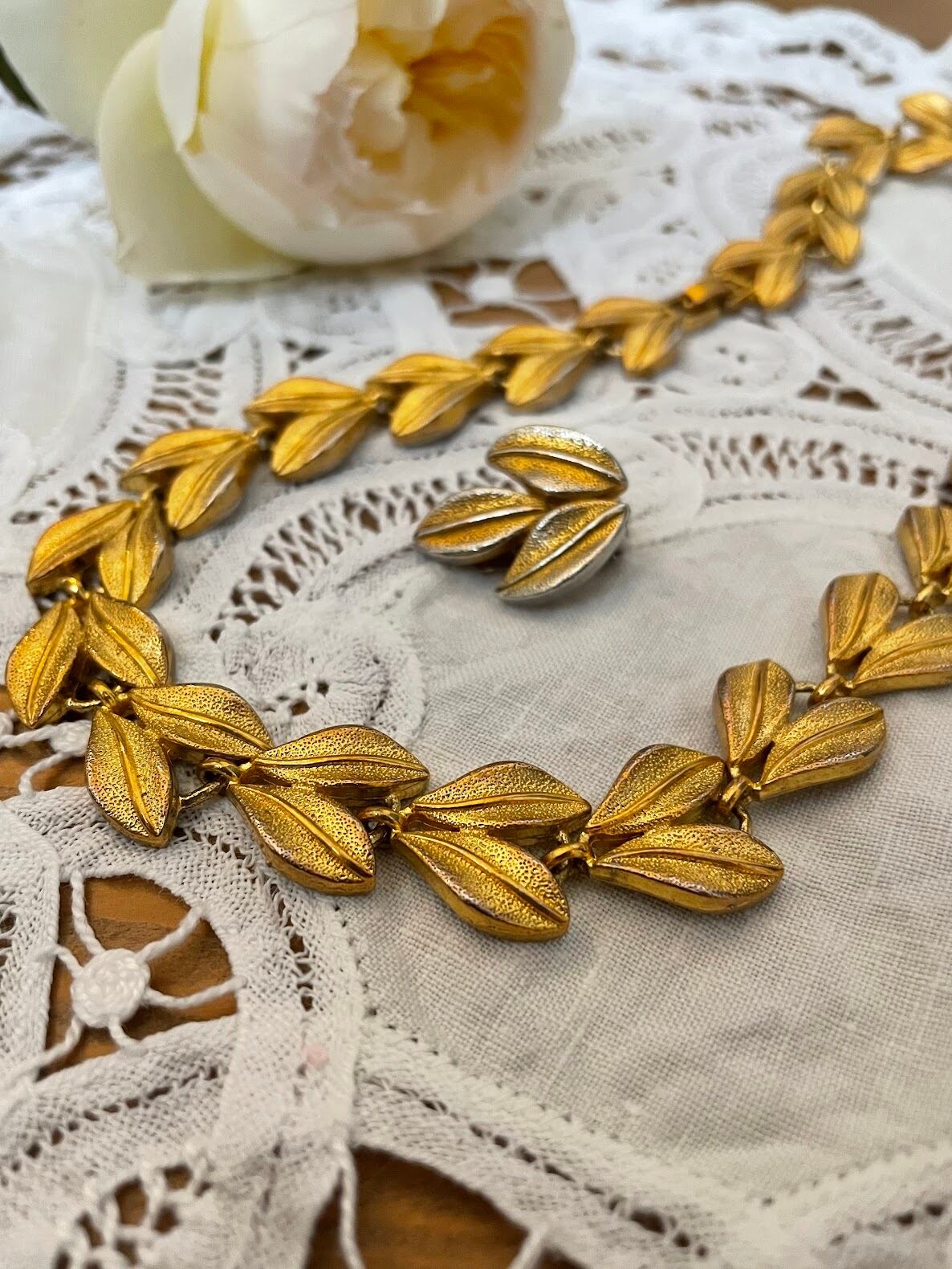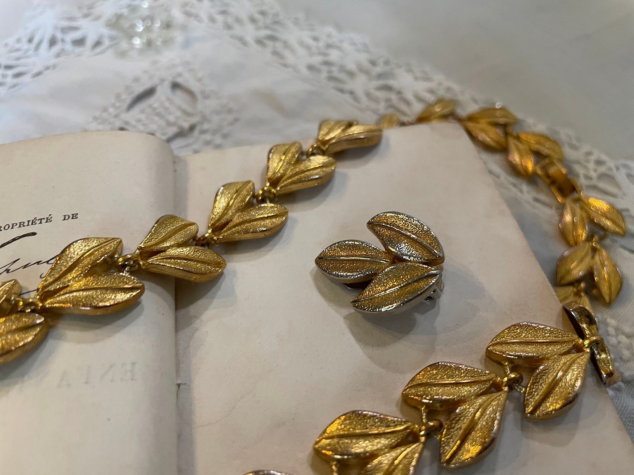 リーフモチーフのアンティークネックレスとイヤリングのセット フランス 【B-31/32】