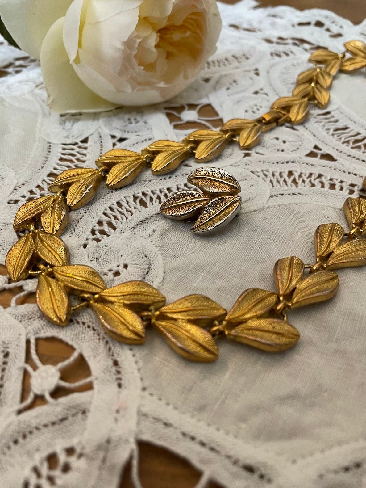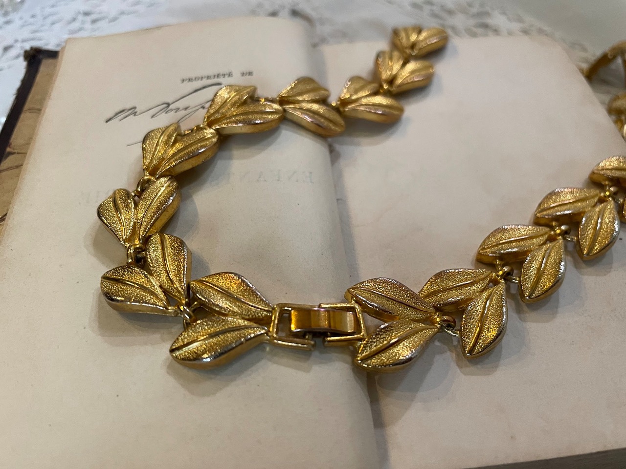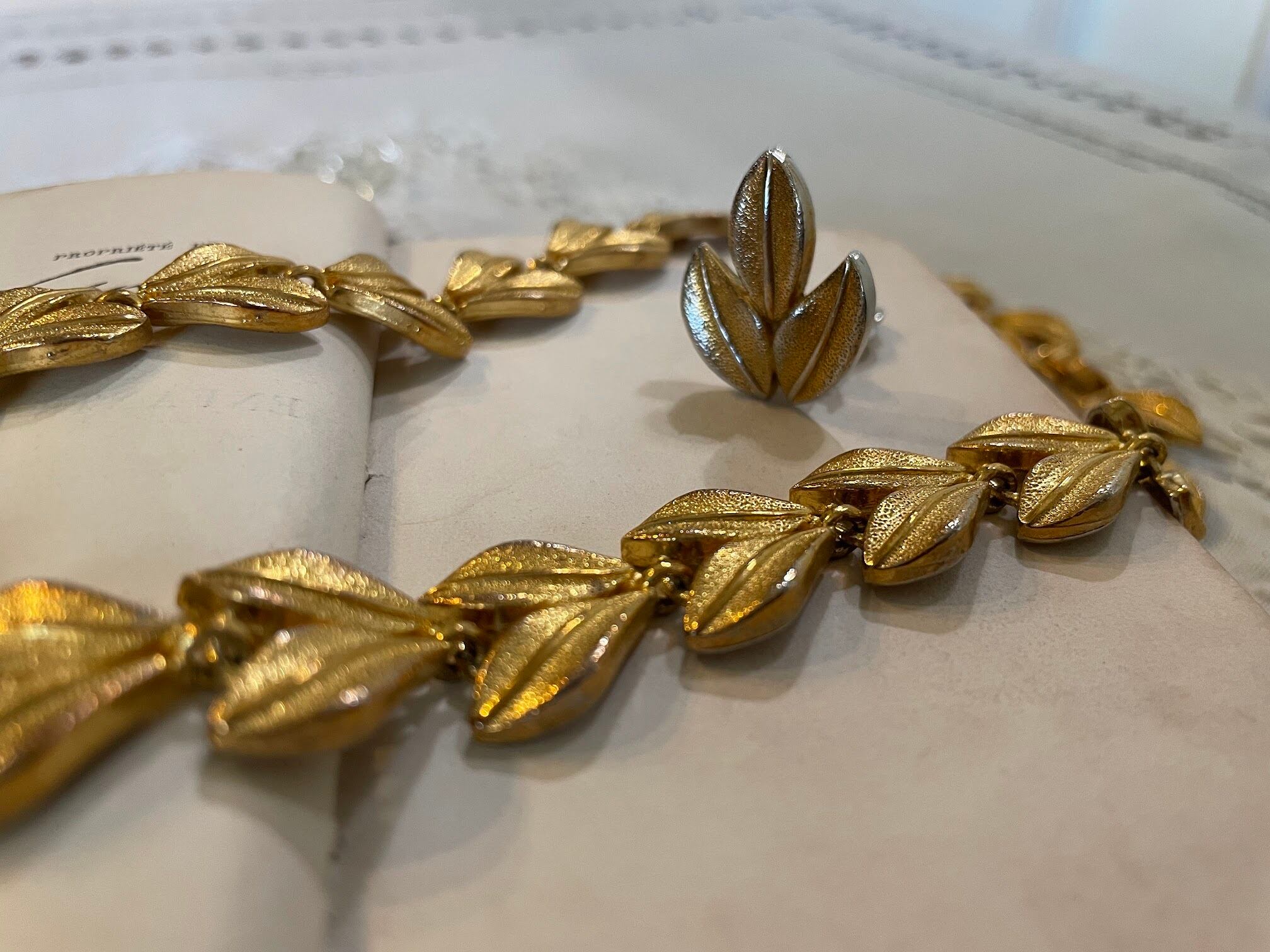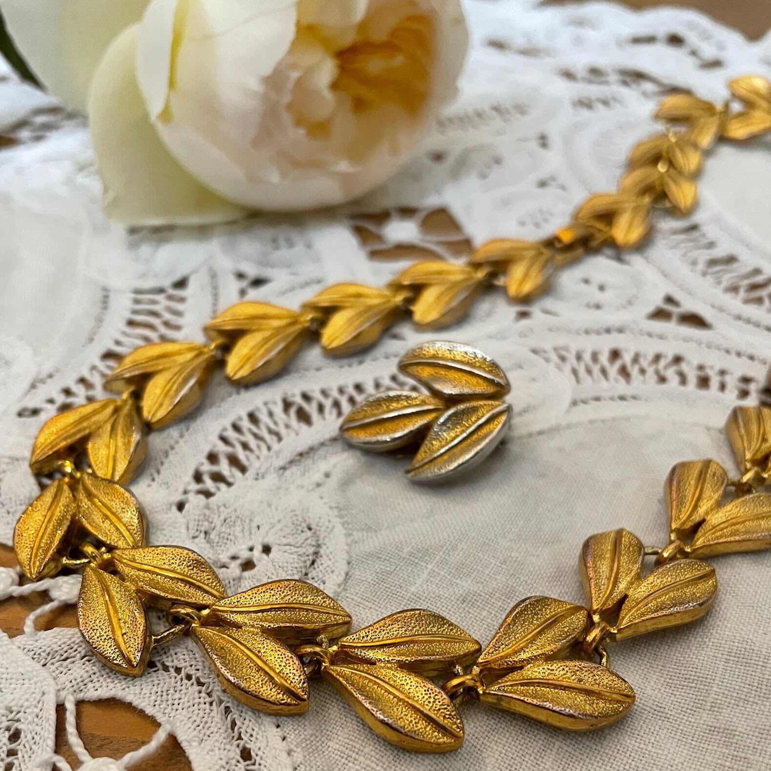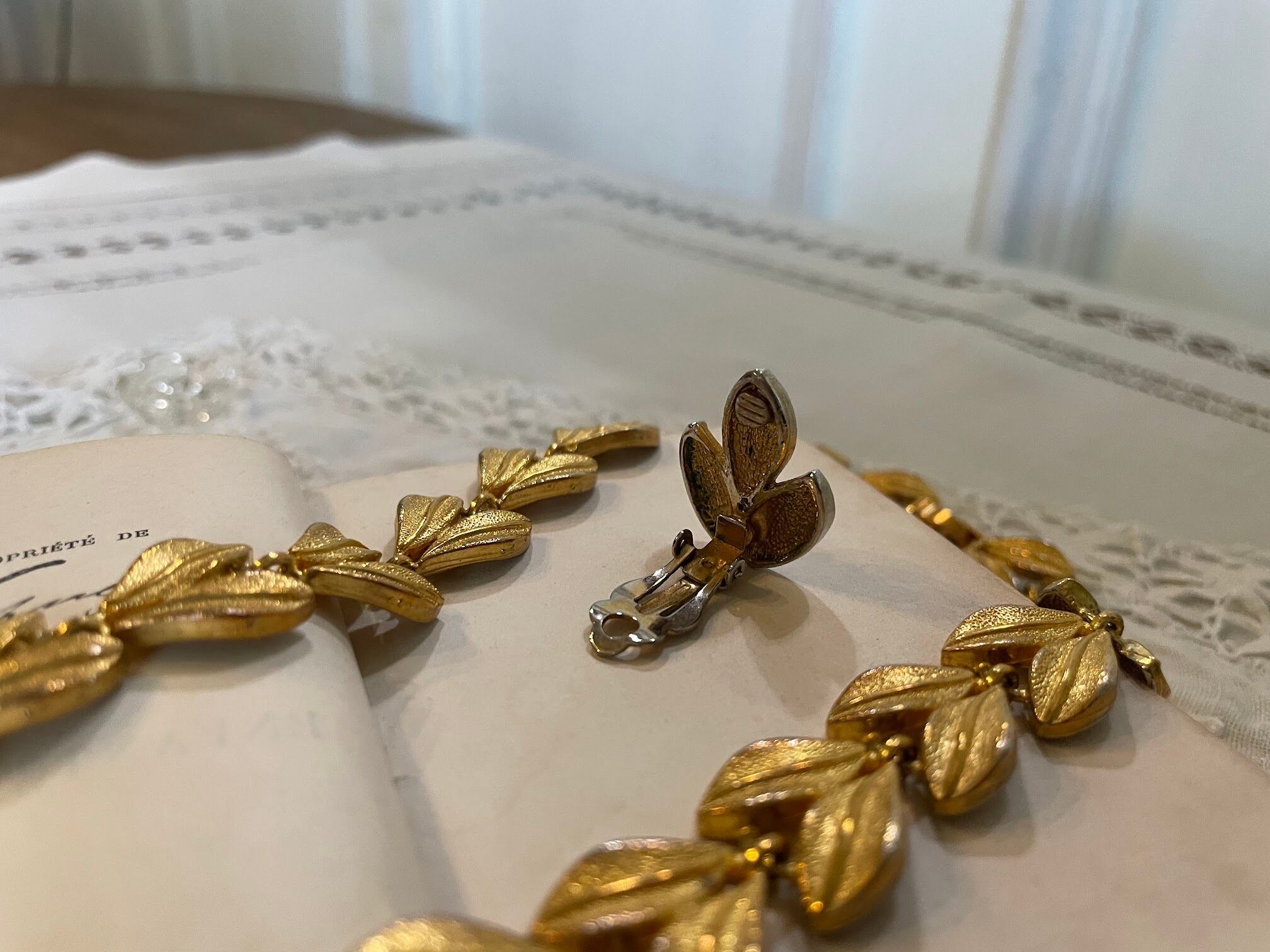 リーフモチーフのアンティークネックレスとイヤリングのセット フランス 【B-31/32】