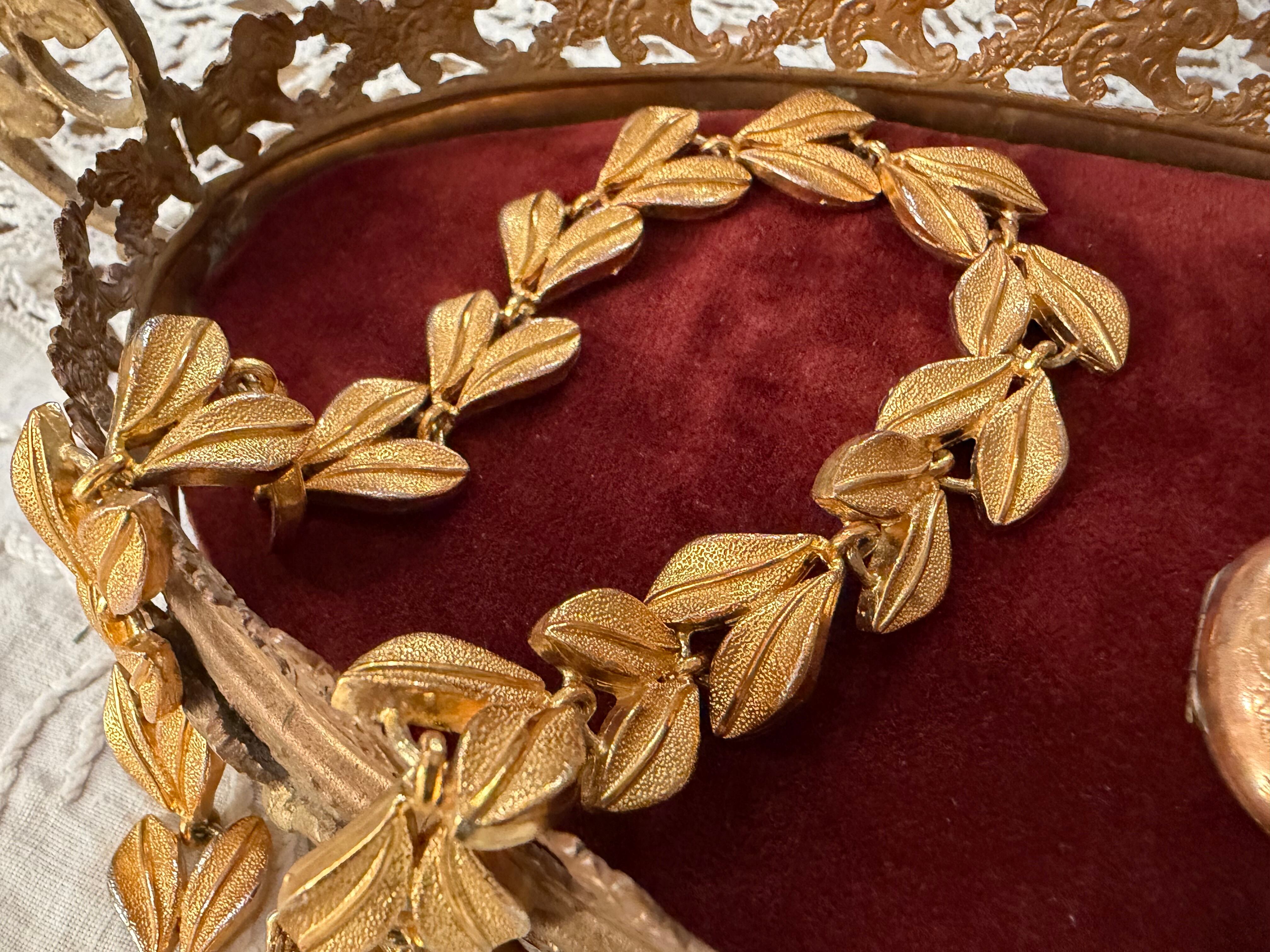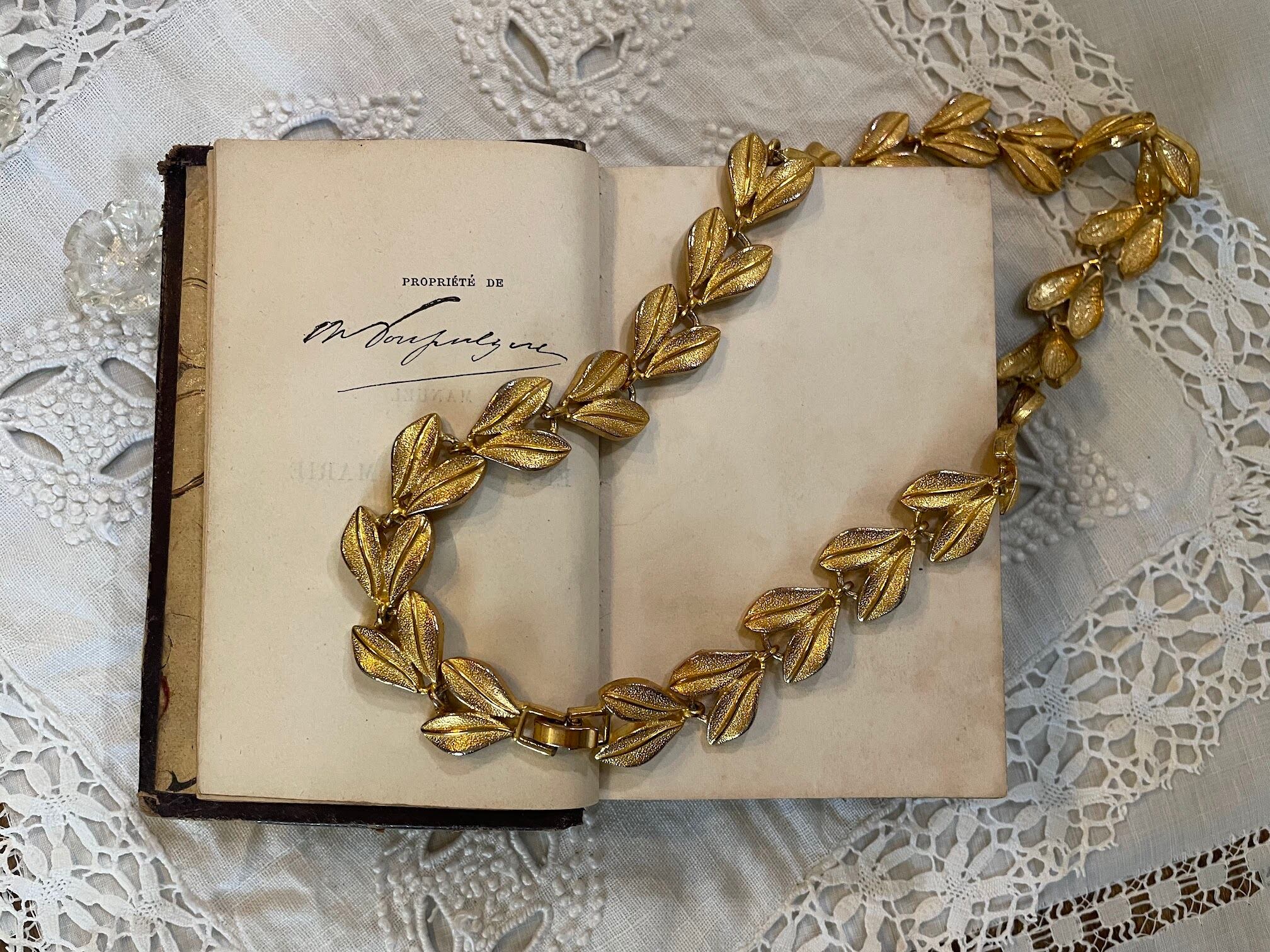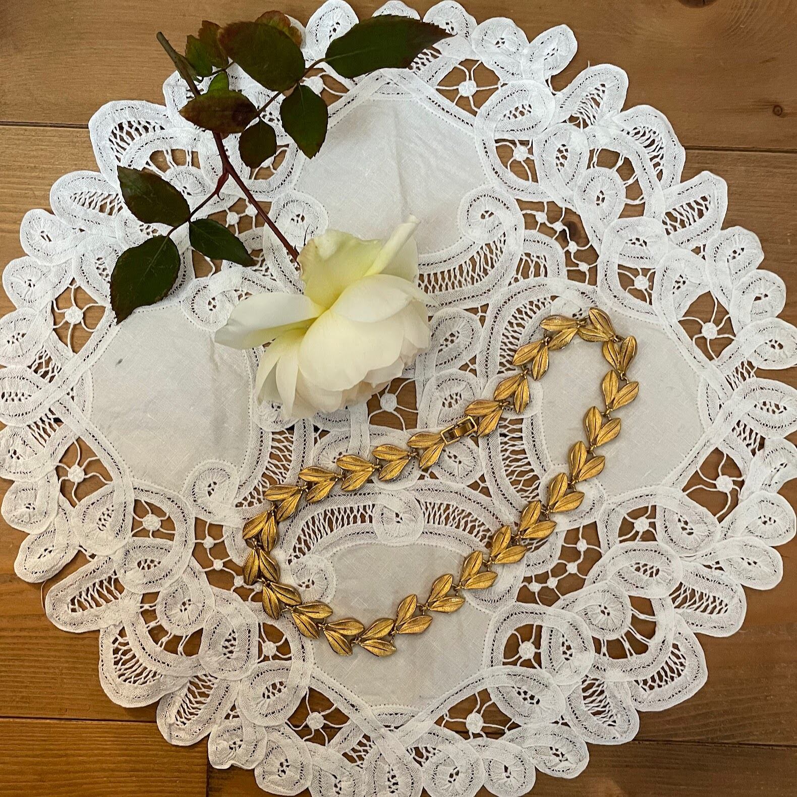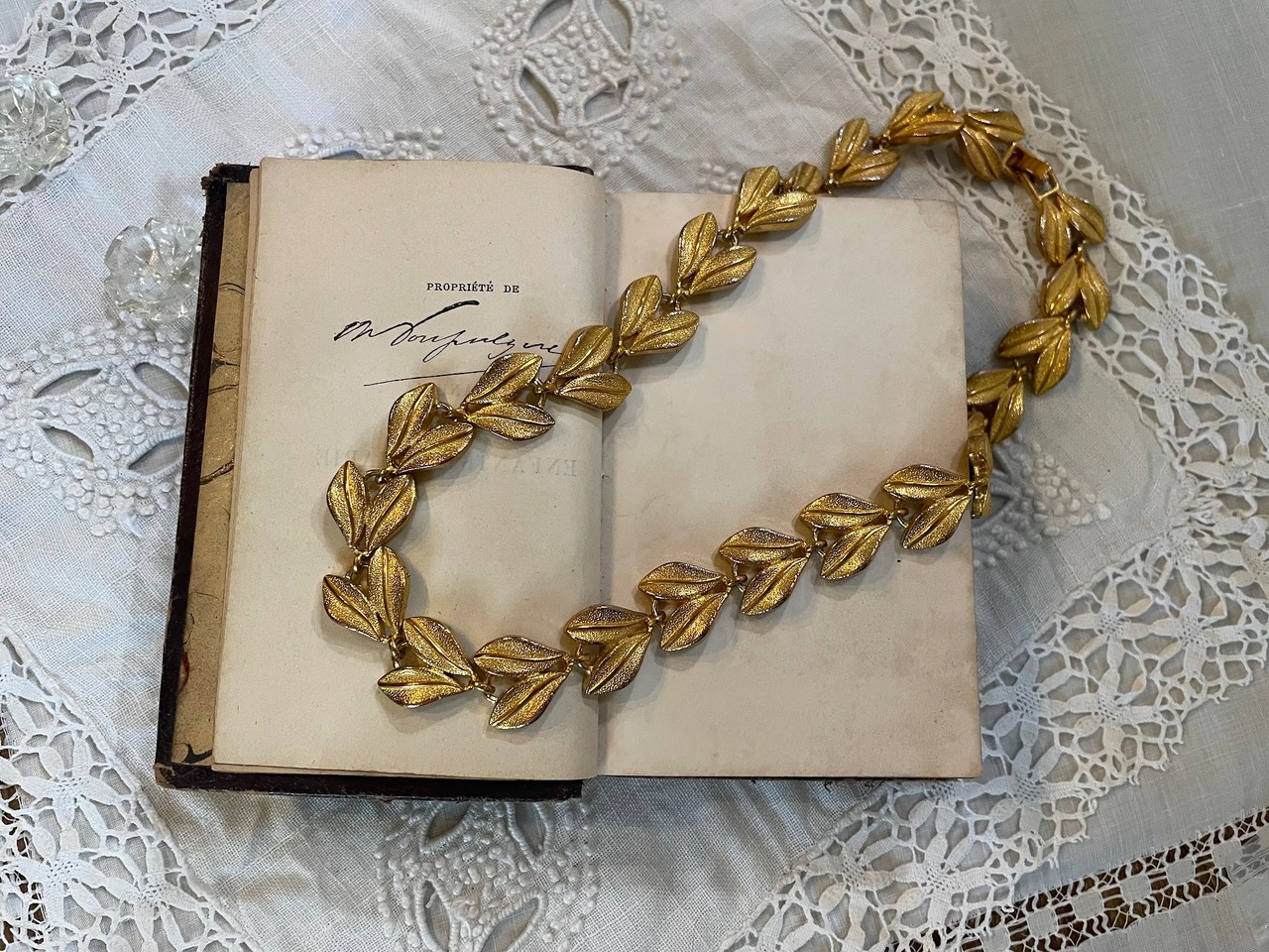 フランスから届いたリーフモチーフのアンティークネックレスです。