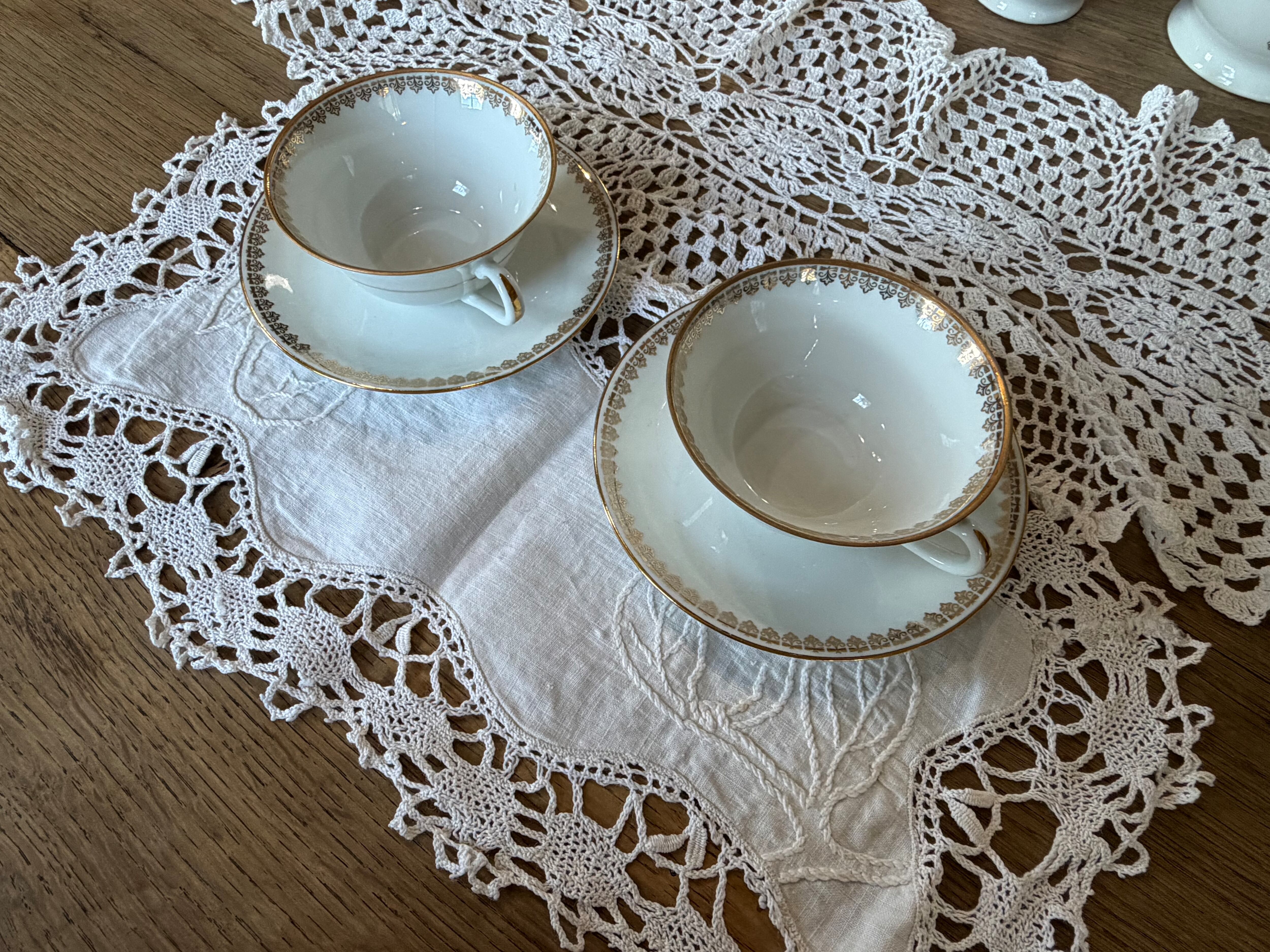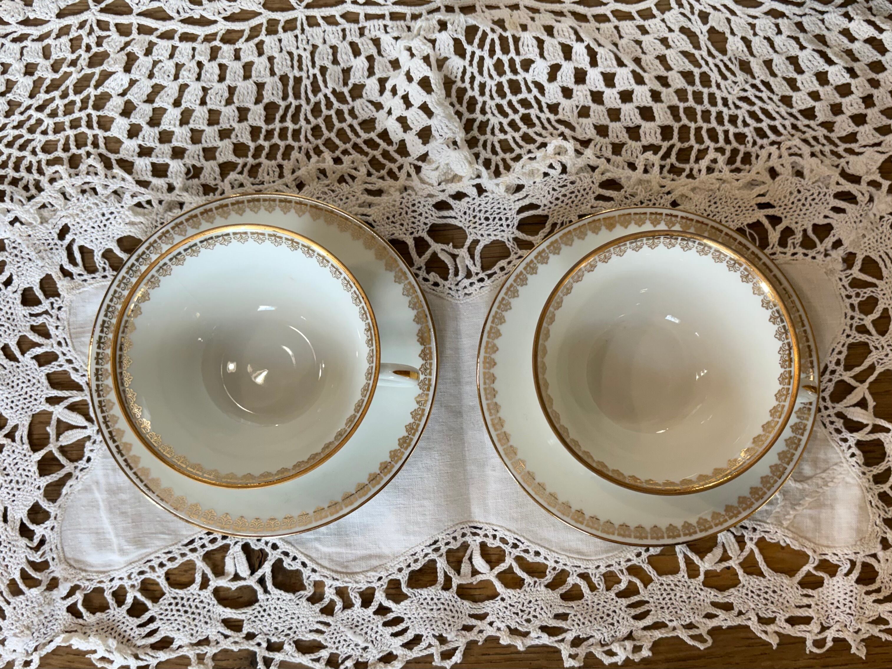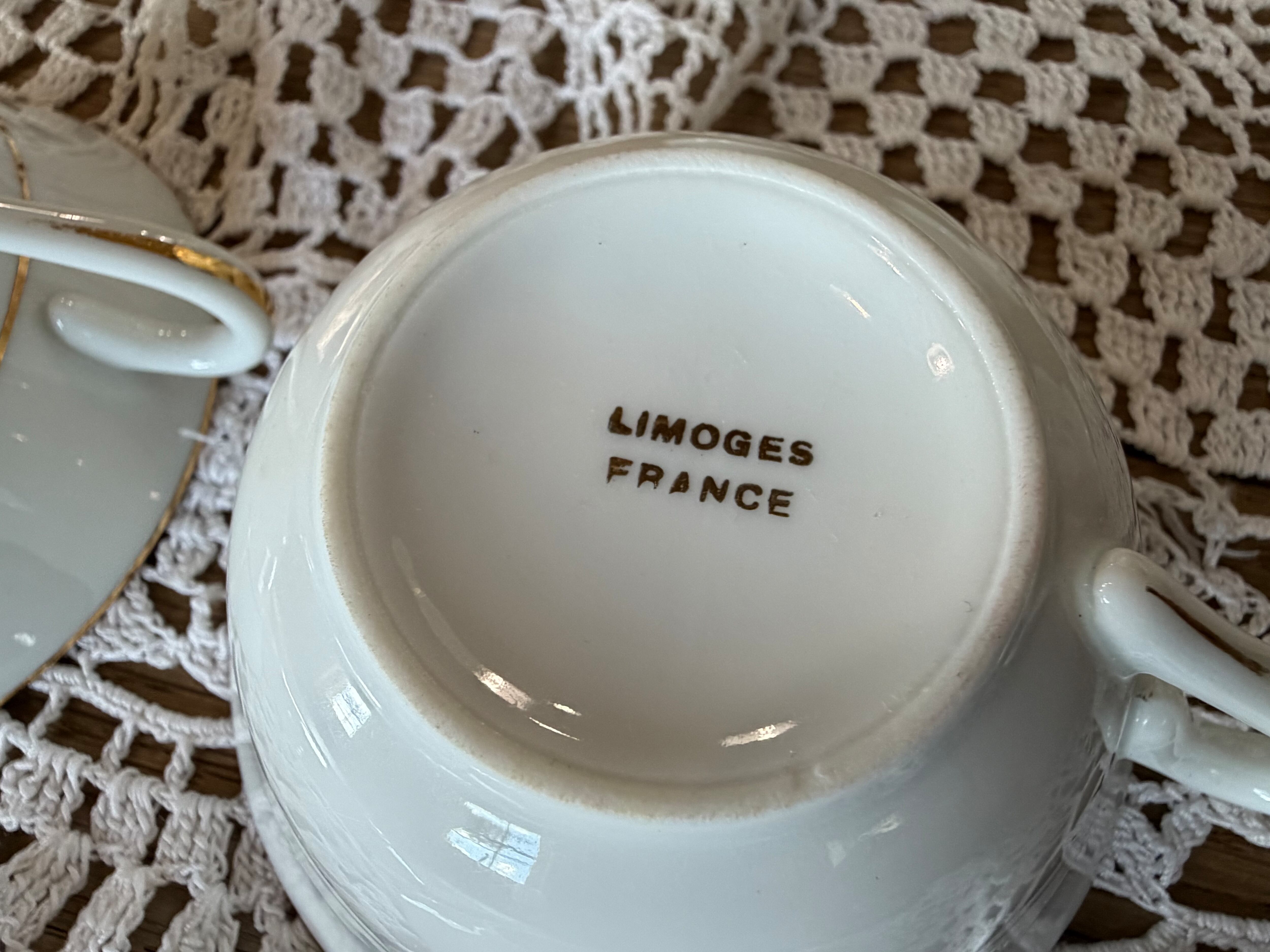 透き通るような白に金彩の縁取り。気品あるデザインの、リモージュのカップアンドソーサー。