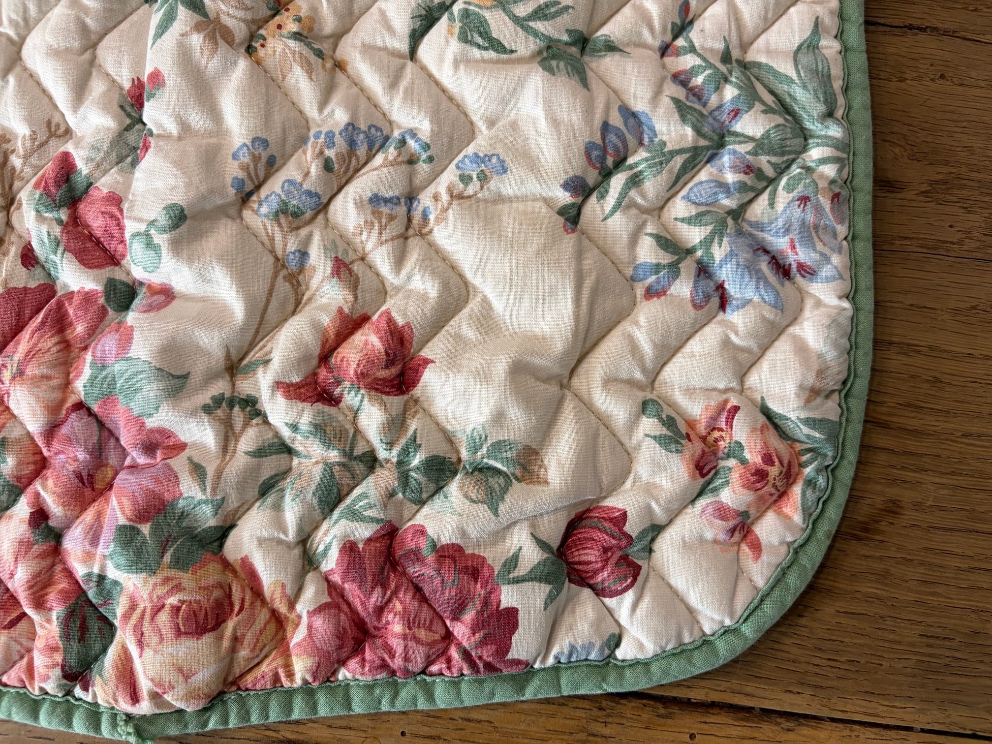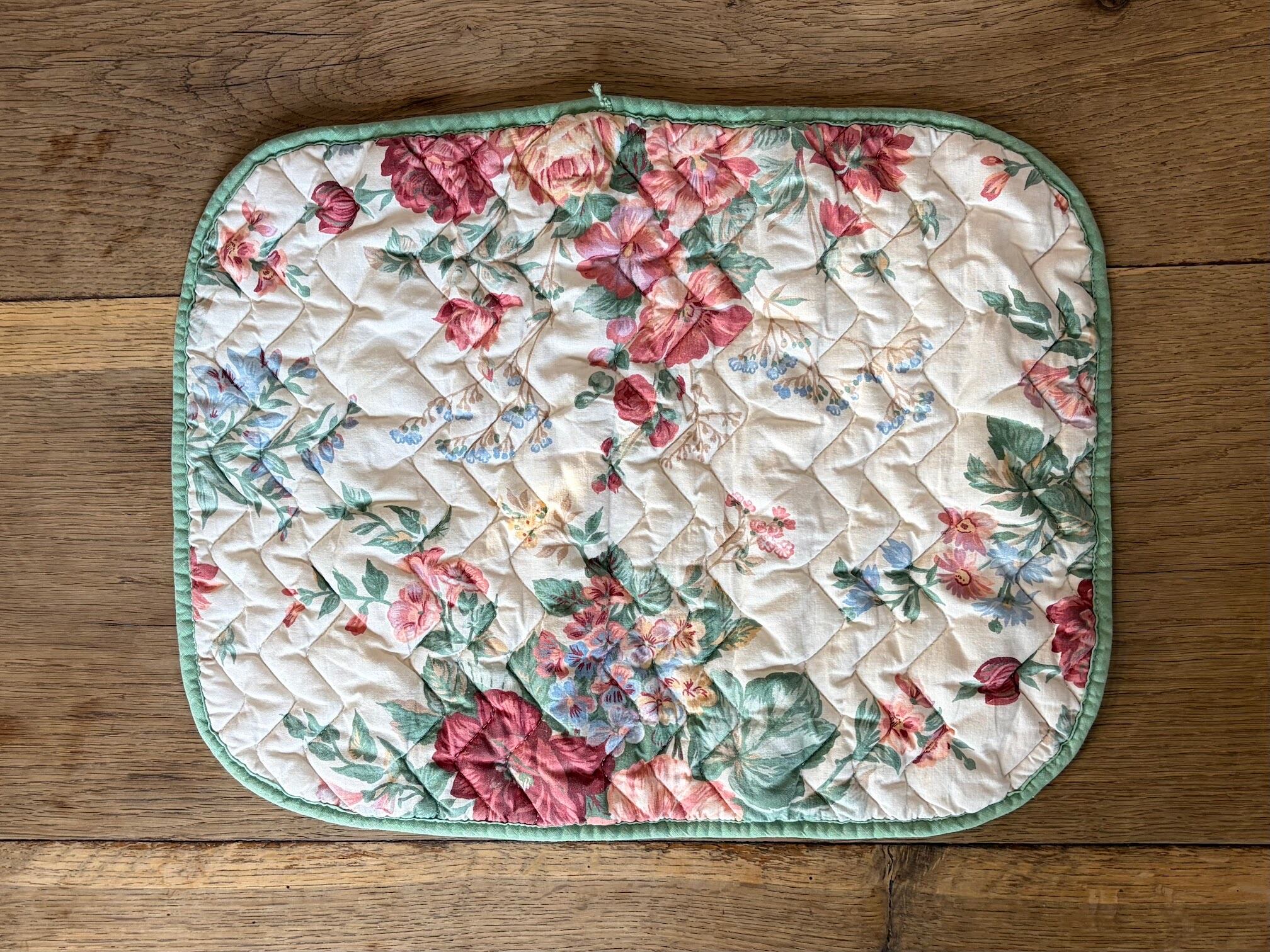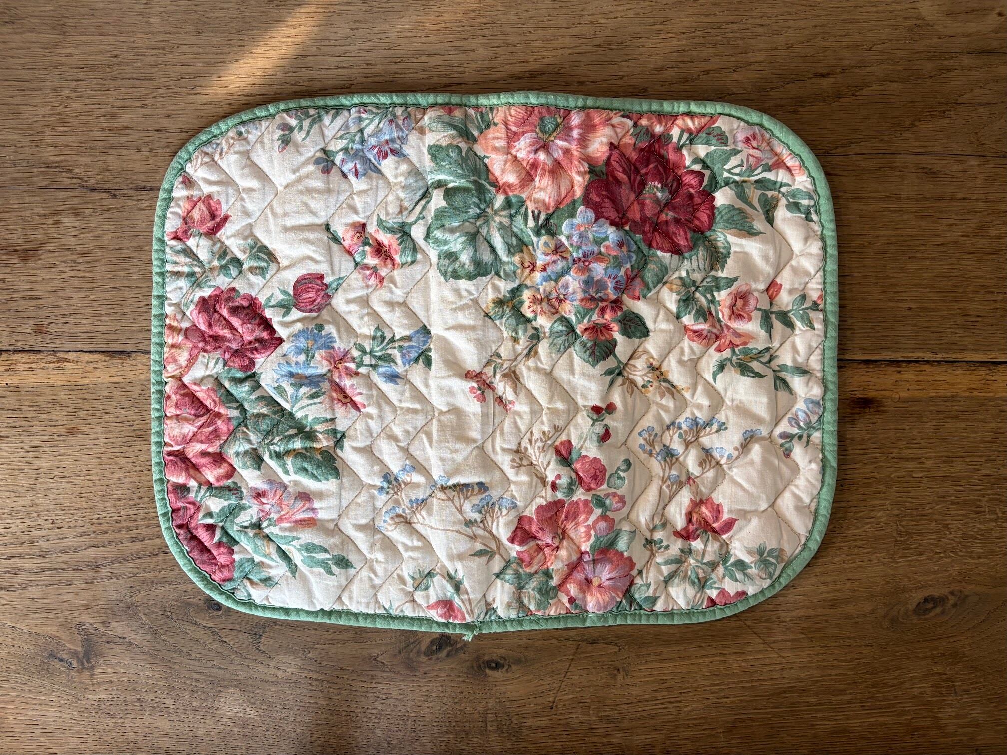 薔薇の絵柄が華やかなマットです。ステッチが入り、しっかりとした作りになっています。