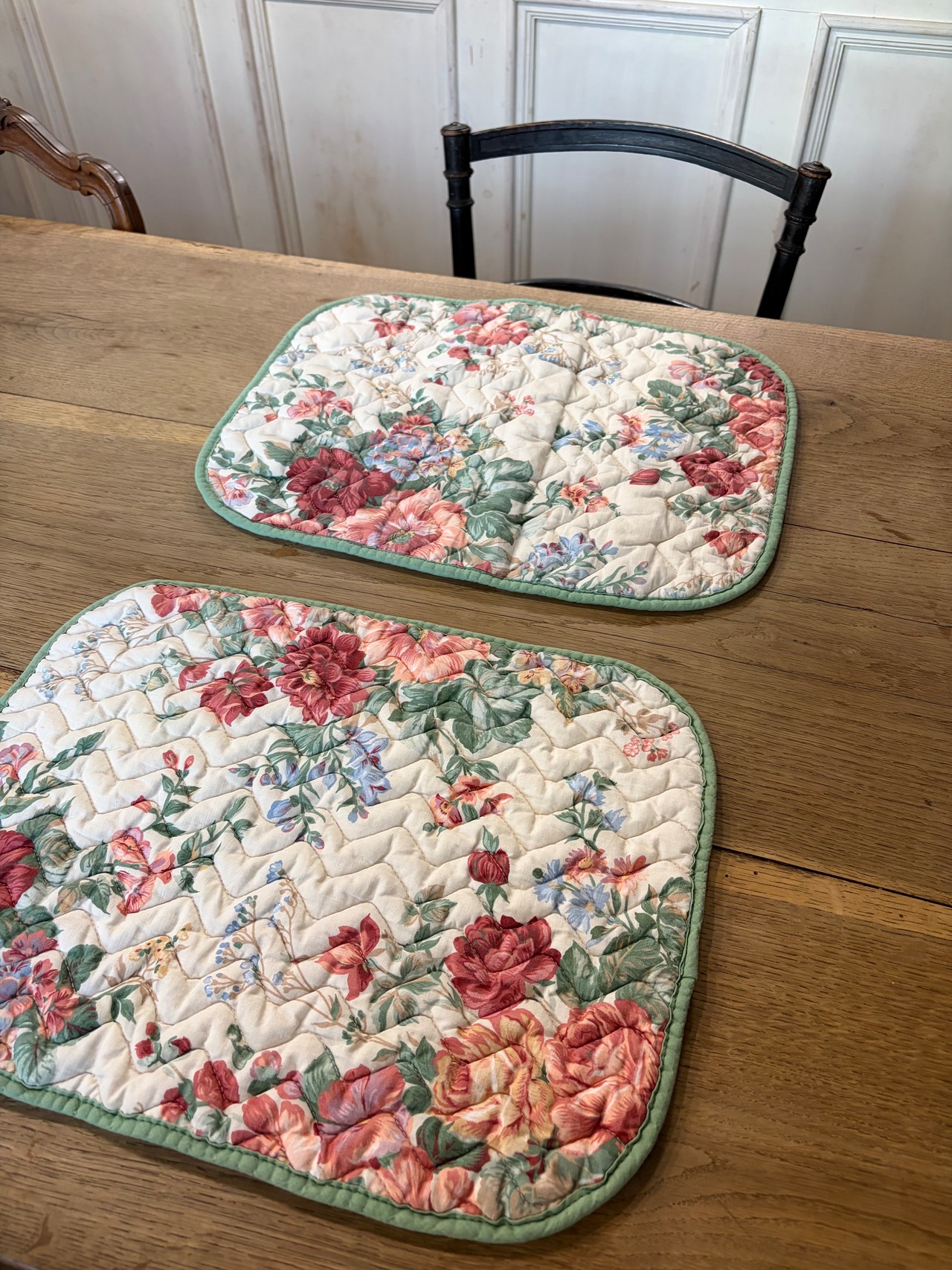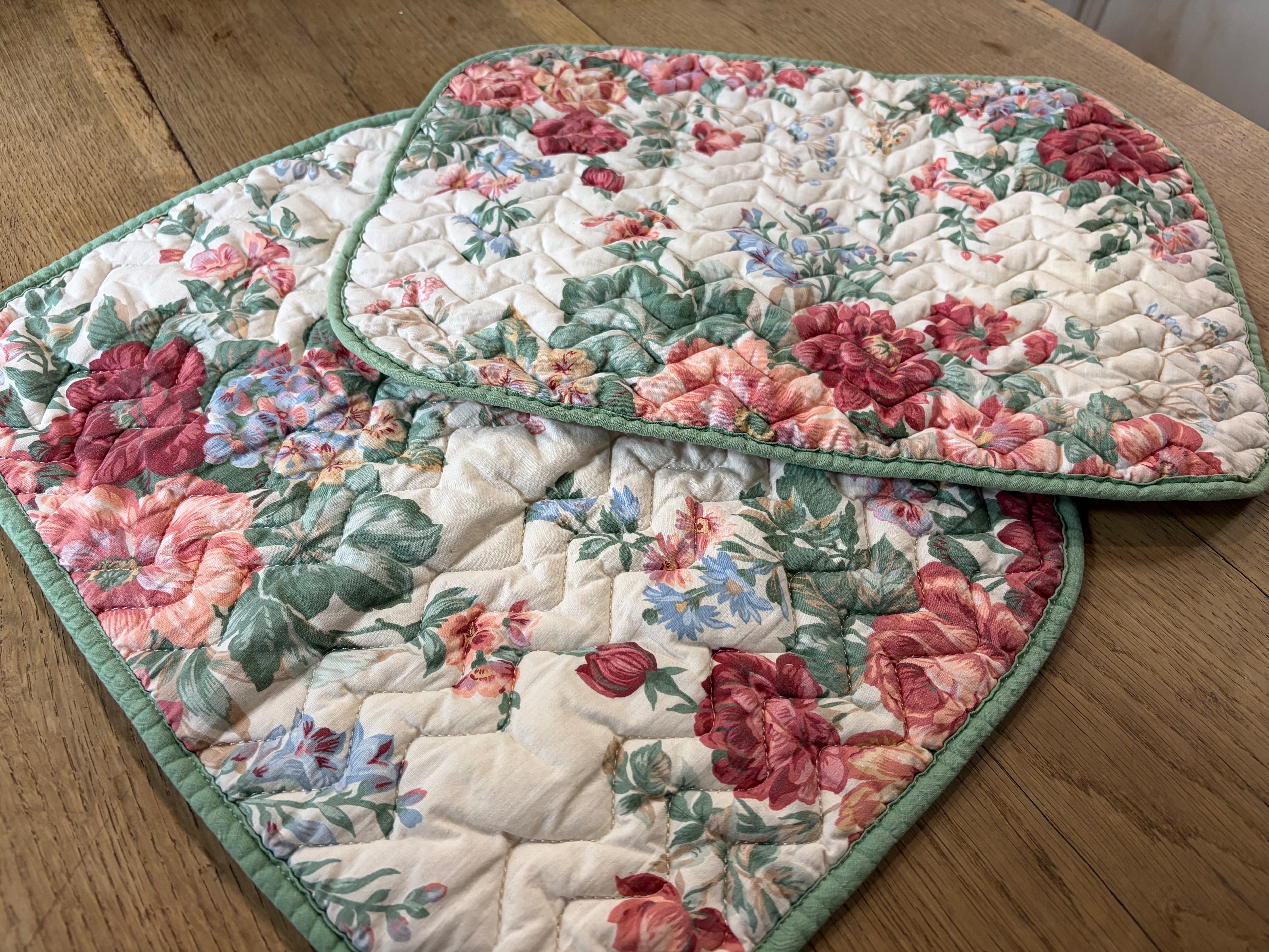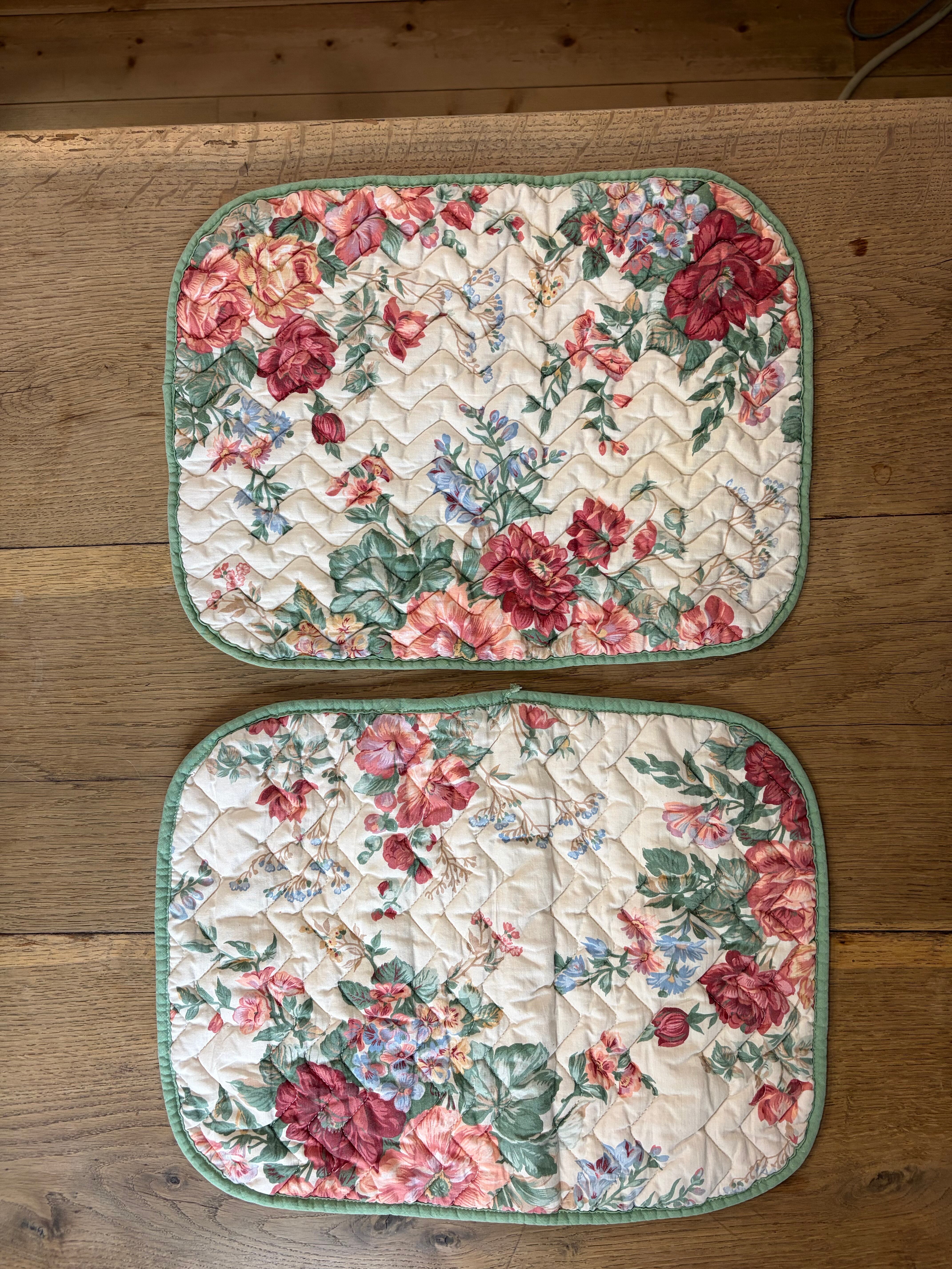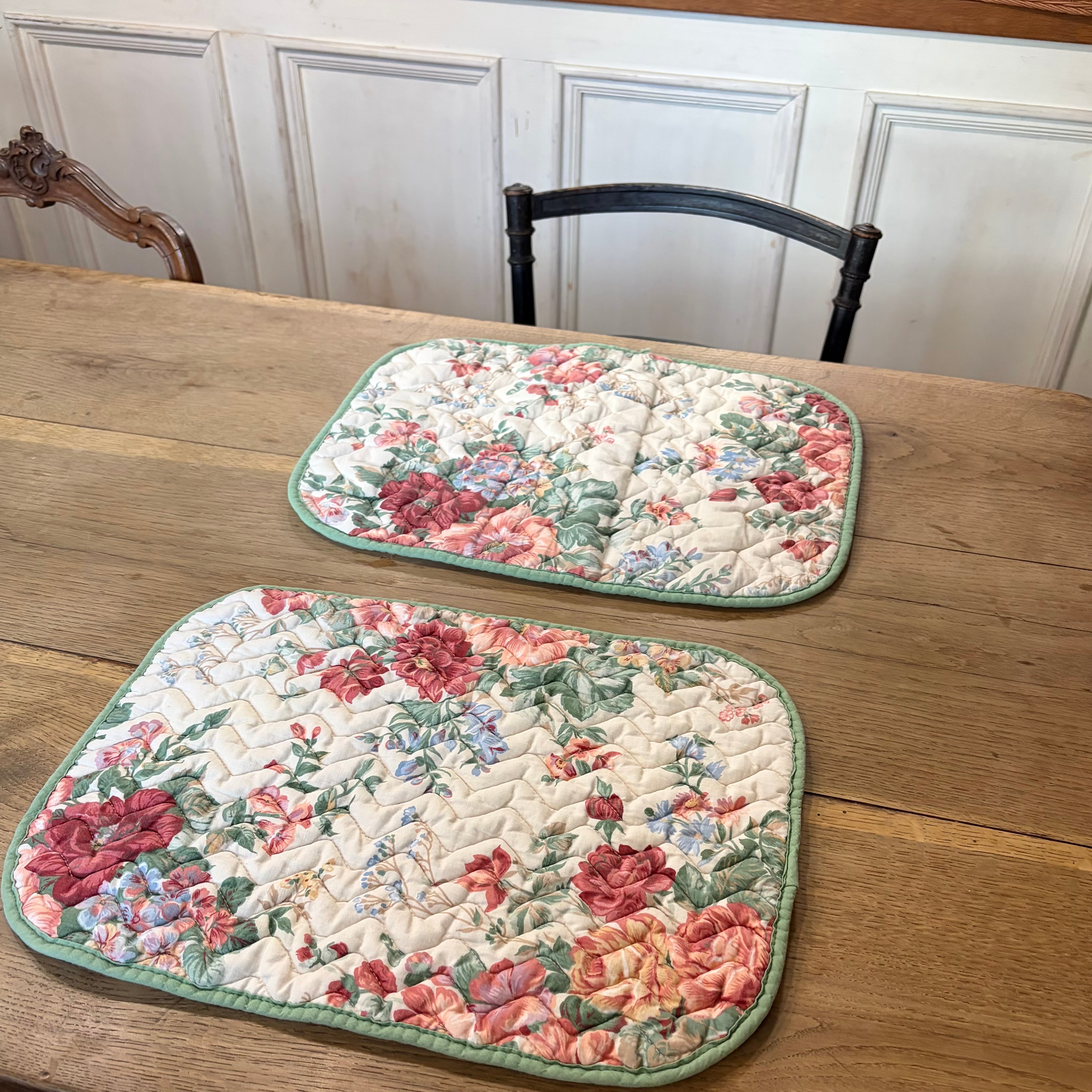 〖(2枚セット)フランスアンティーク テーブルマット 薔薇 花柄 ビンテージ【874】〗