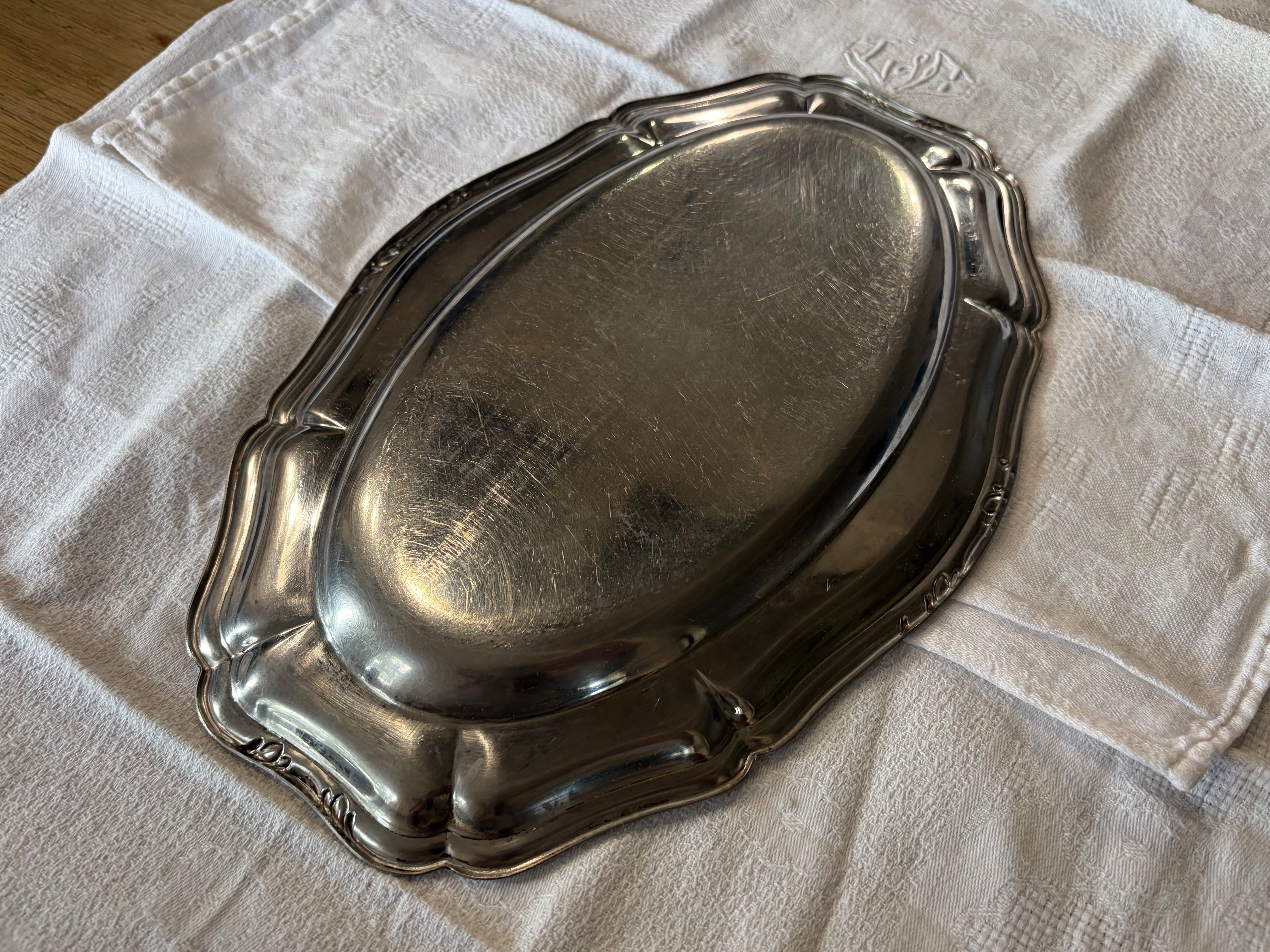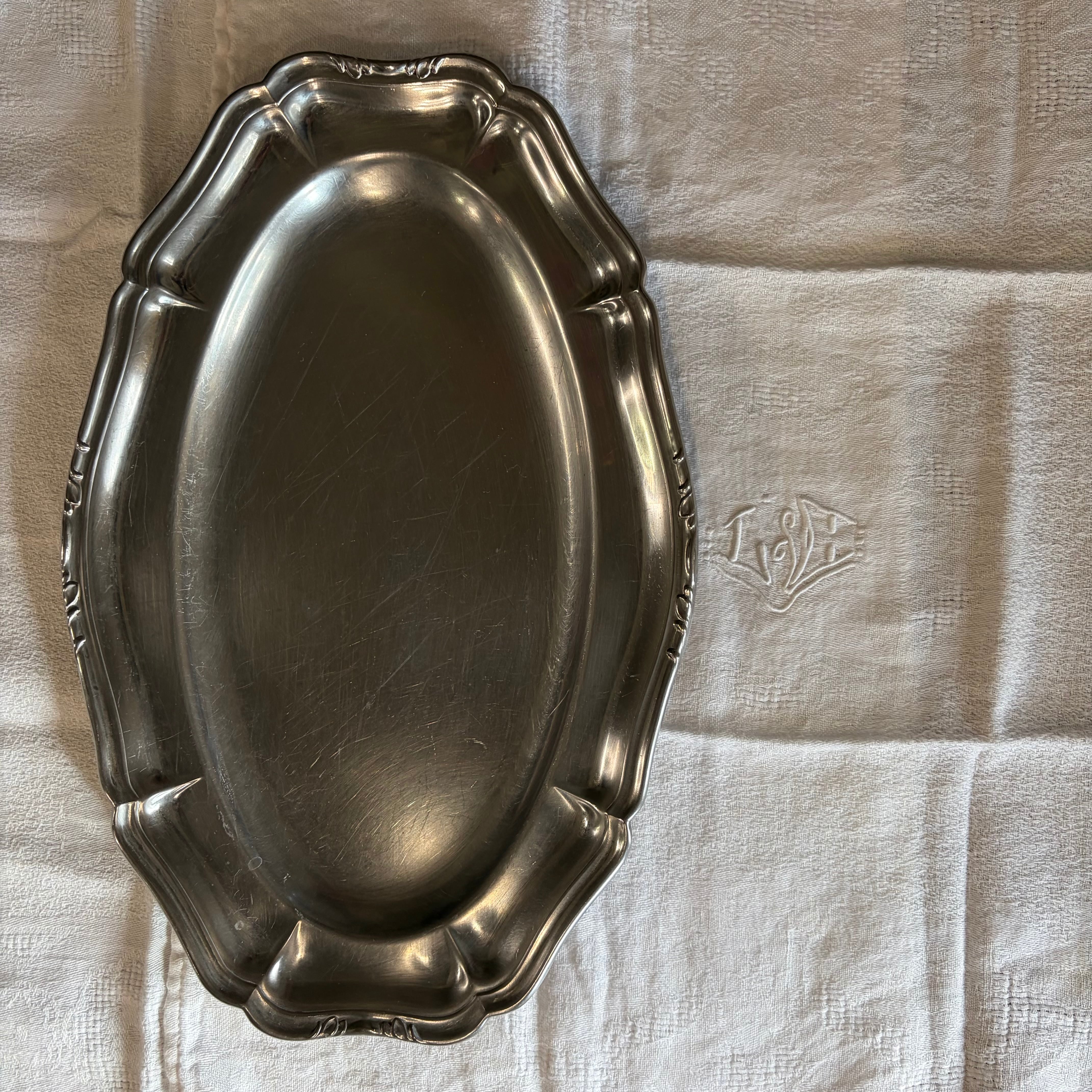 【送料無料】フランスアンティーク 花リム オーバルステンレス プレート【879】【フランスバイヤーセレクト品】