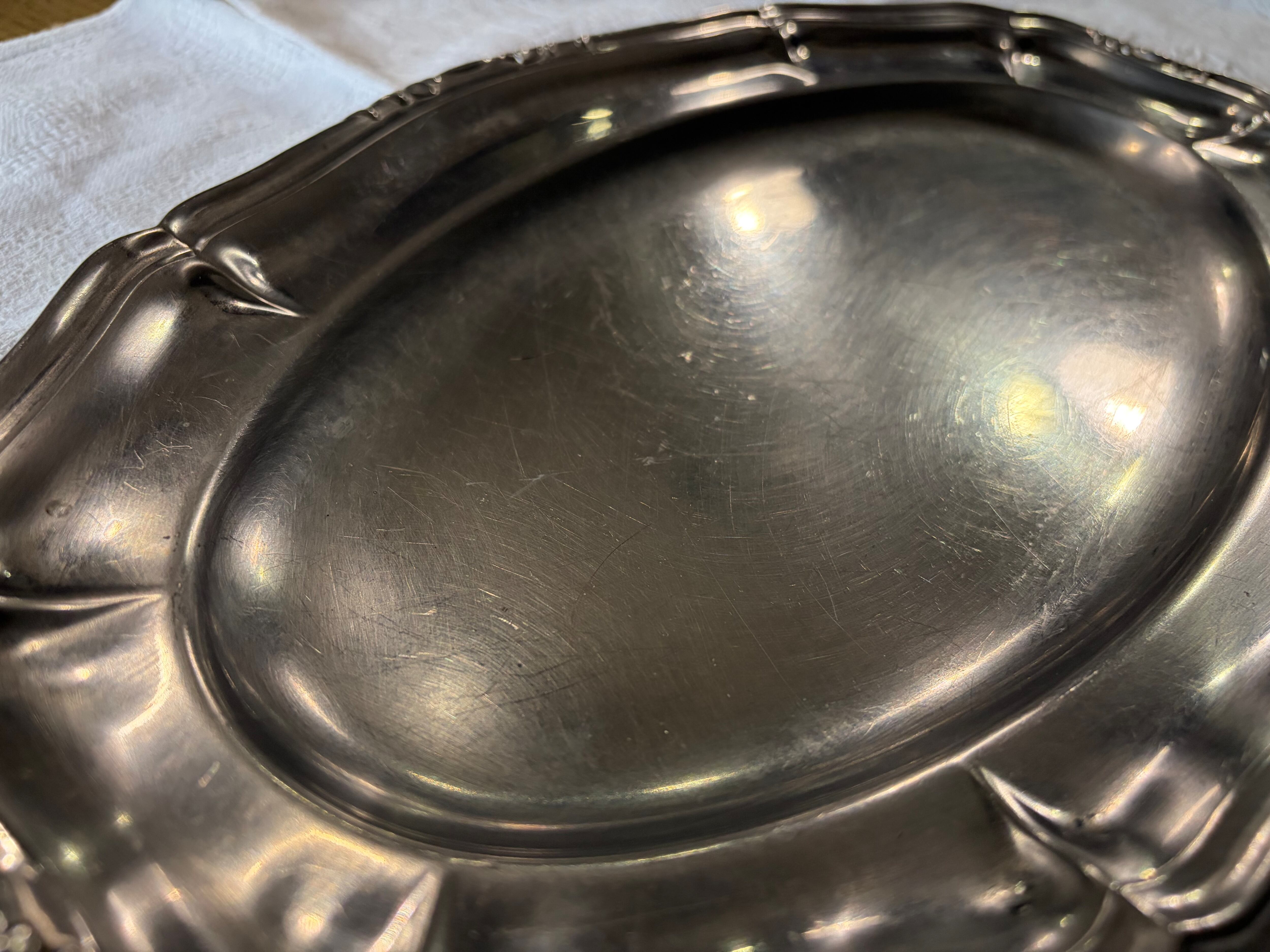 〖フランスアンティーク 花リム オーバルステンレス プレート【879】〗