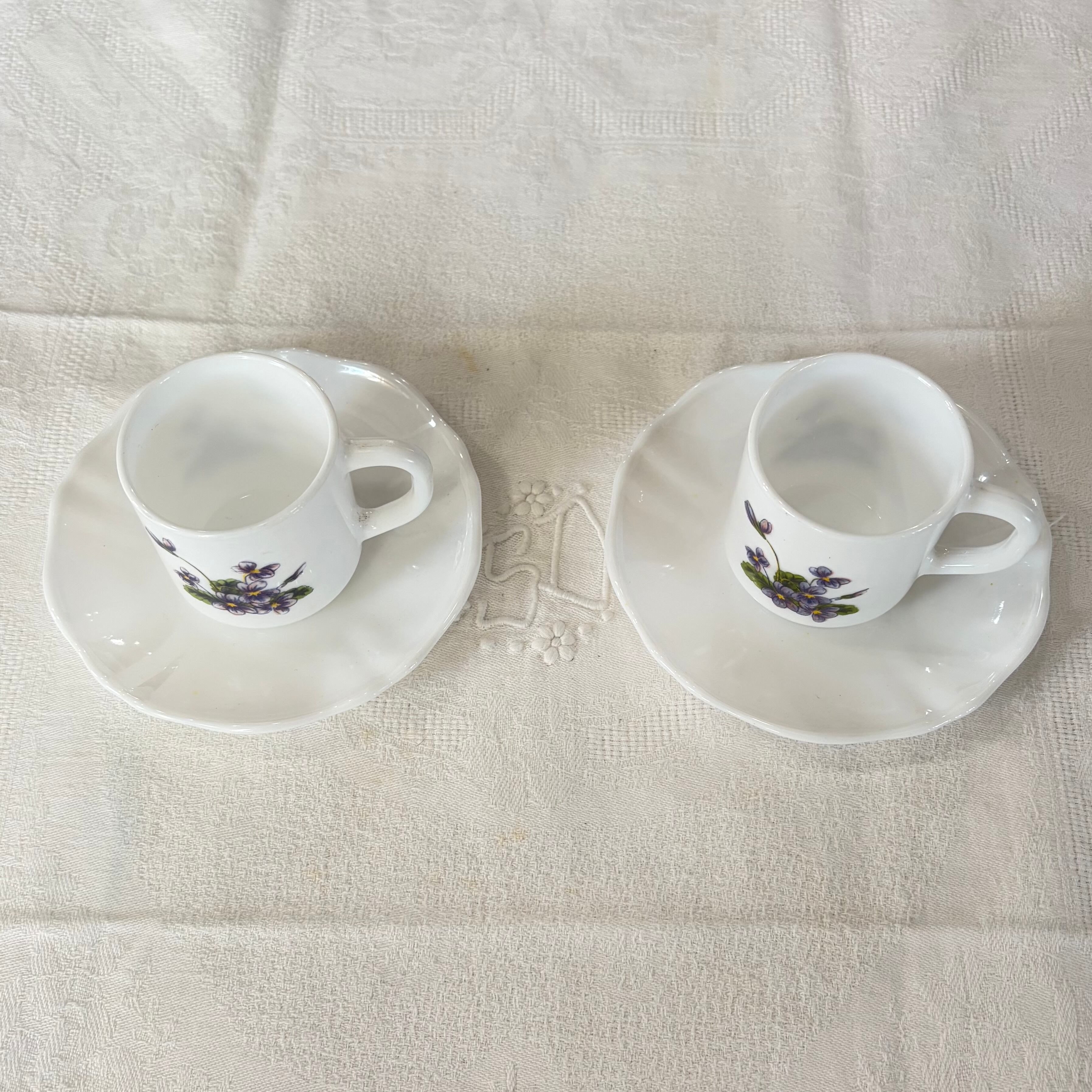 【送料無料】(2客セット)フランスアンティーク すみれ カップ&ソーサー アルコパル【886】【フランスバイヤーセレクト品】