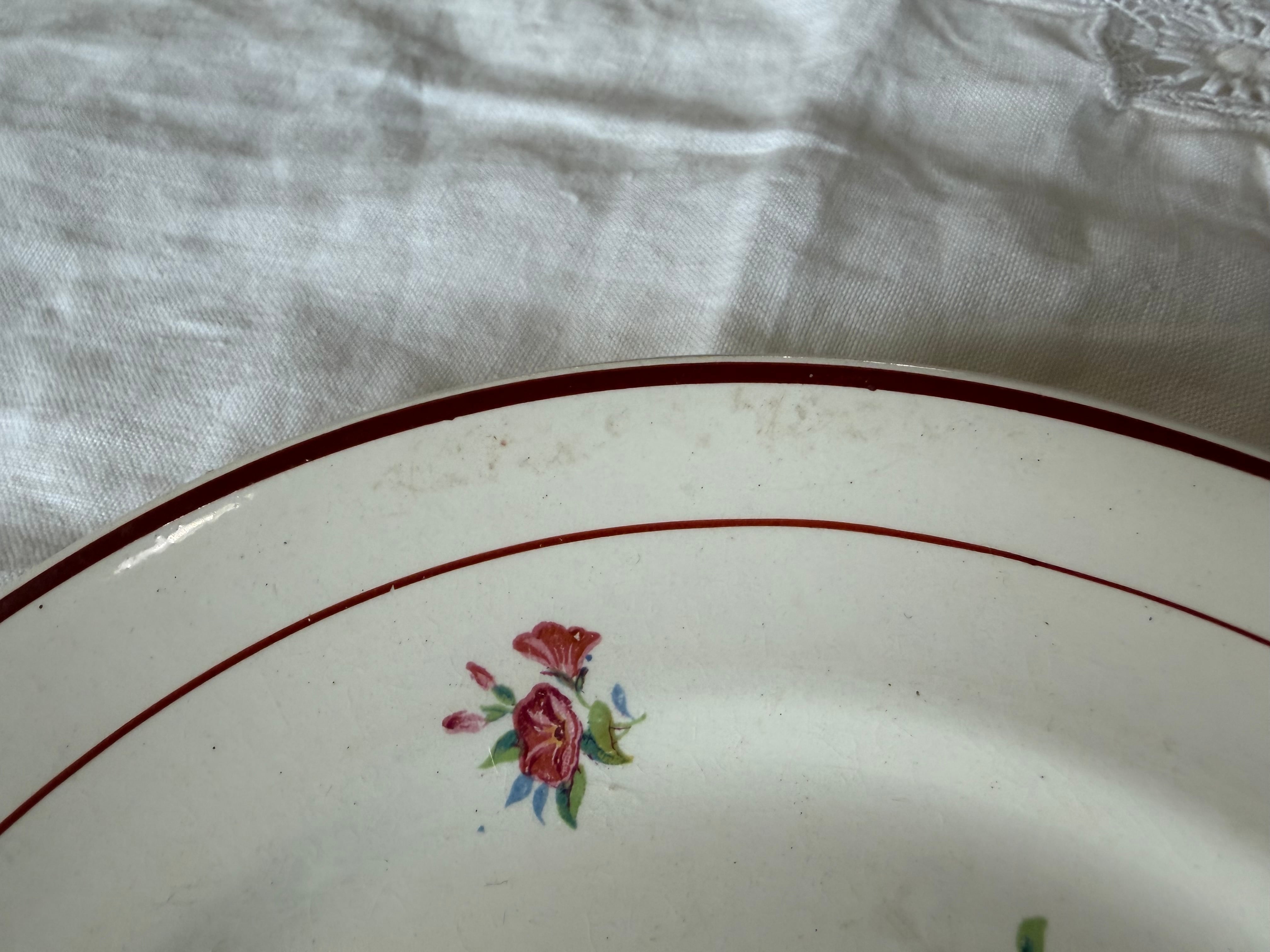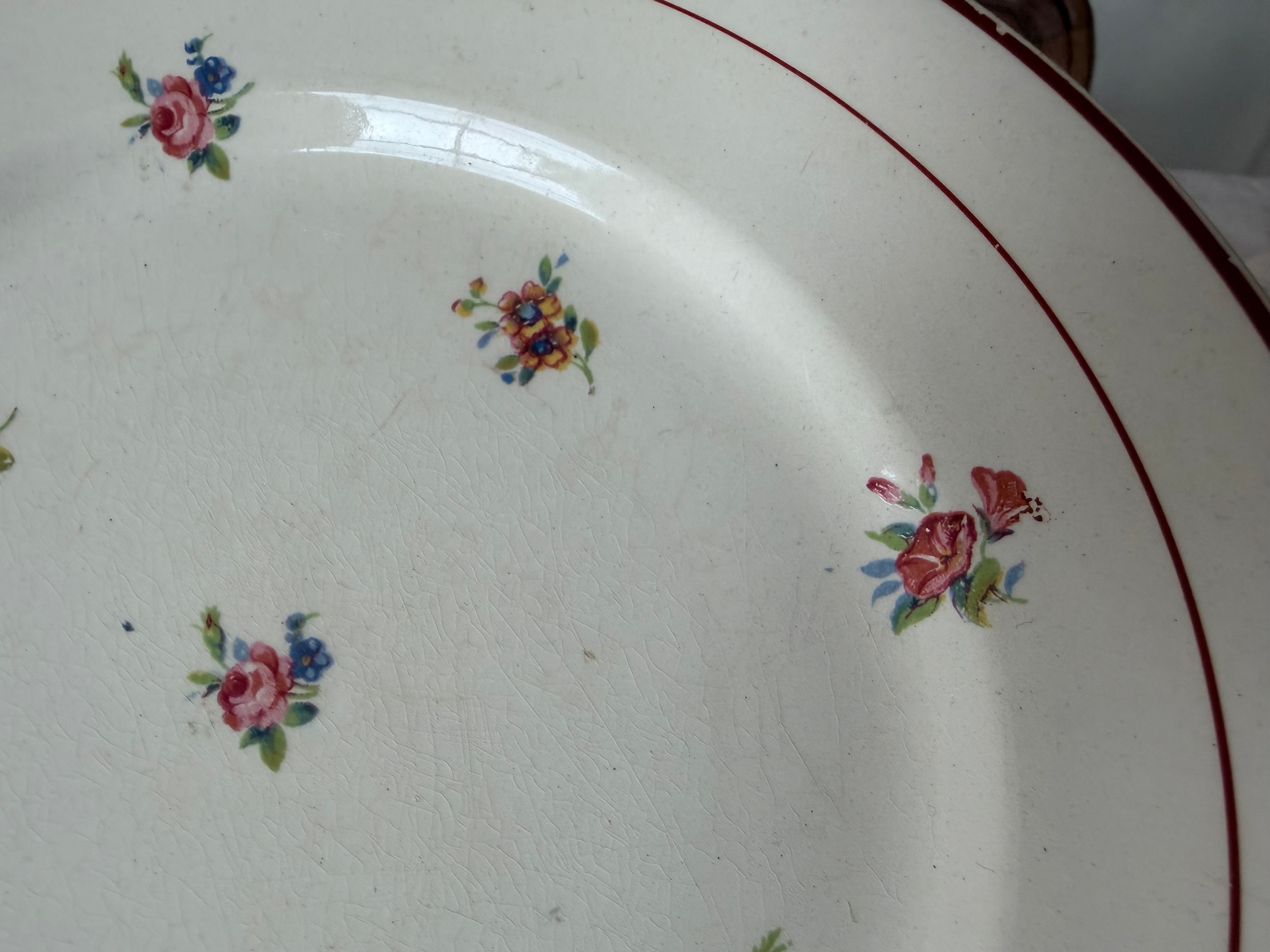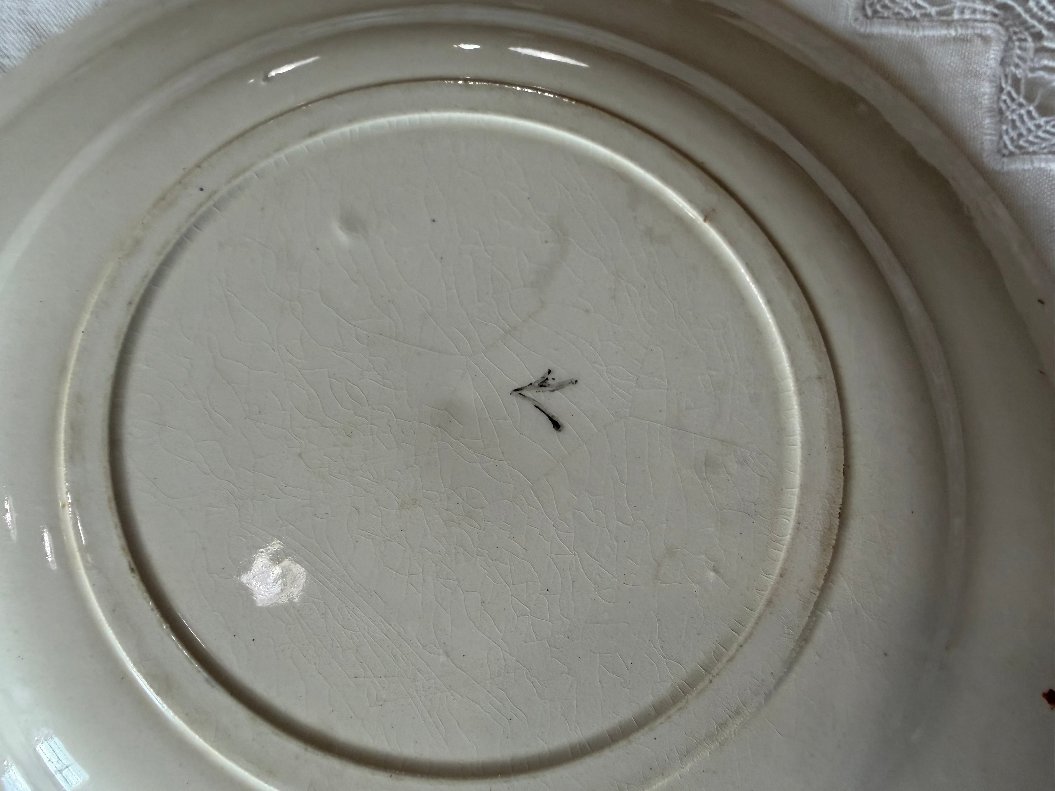 カトラリー傷、小さなシミ、縁裏に極小のチップがあります。