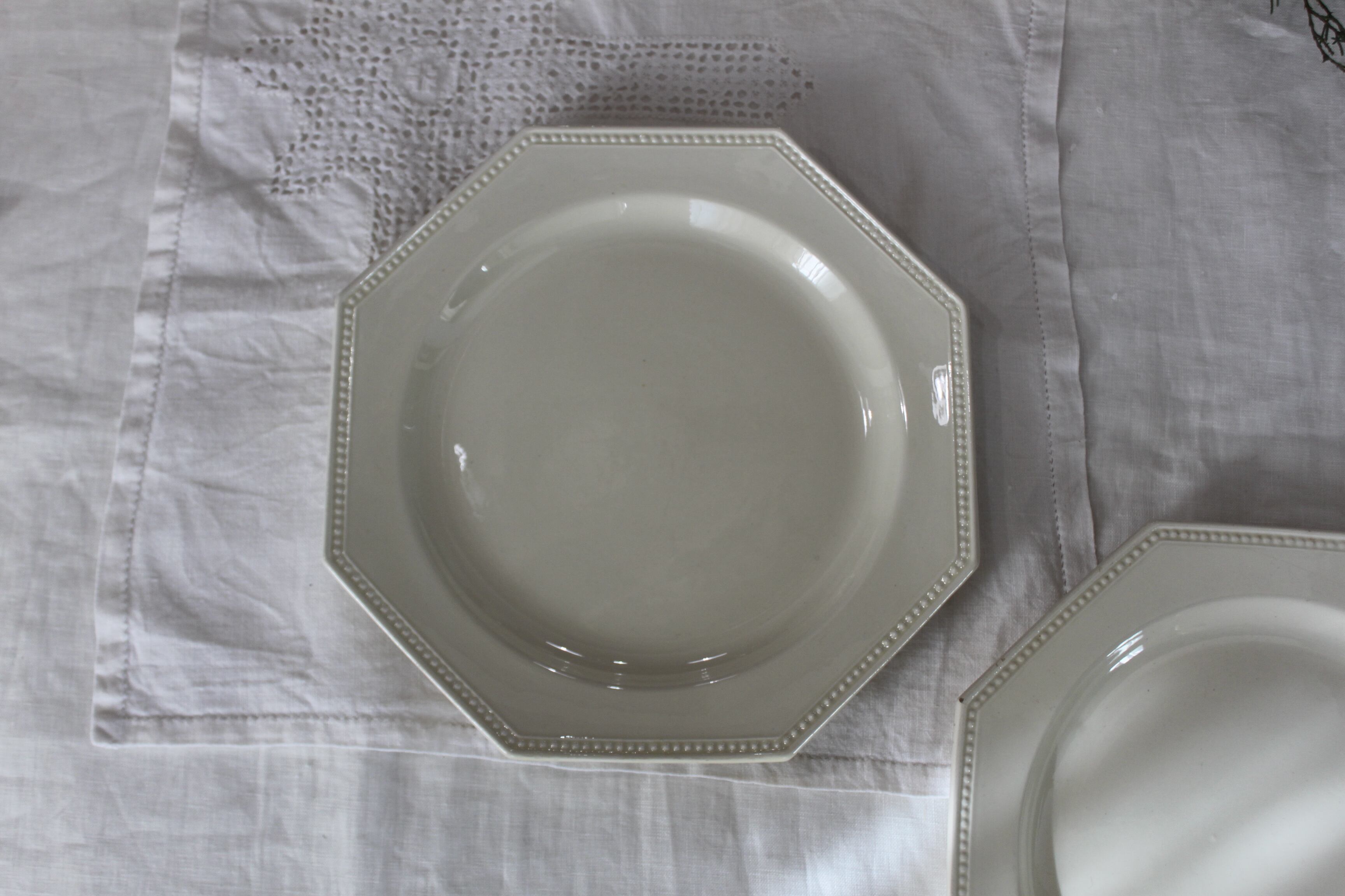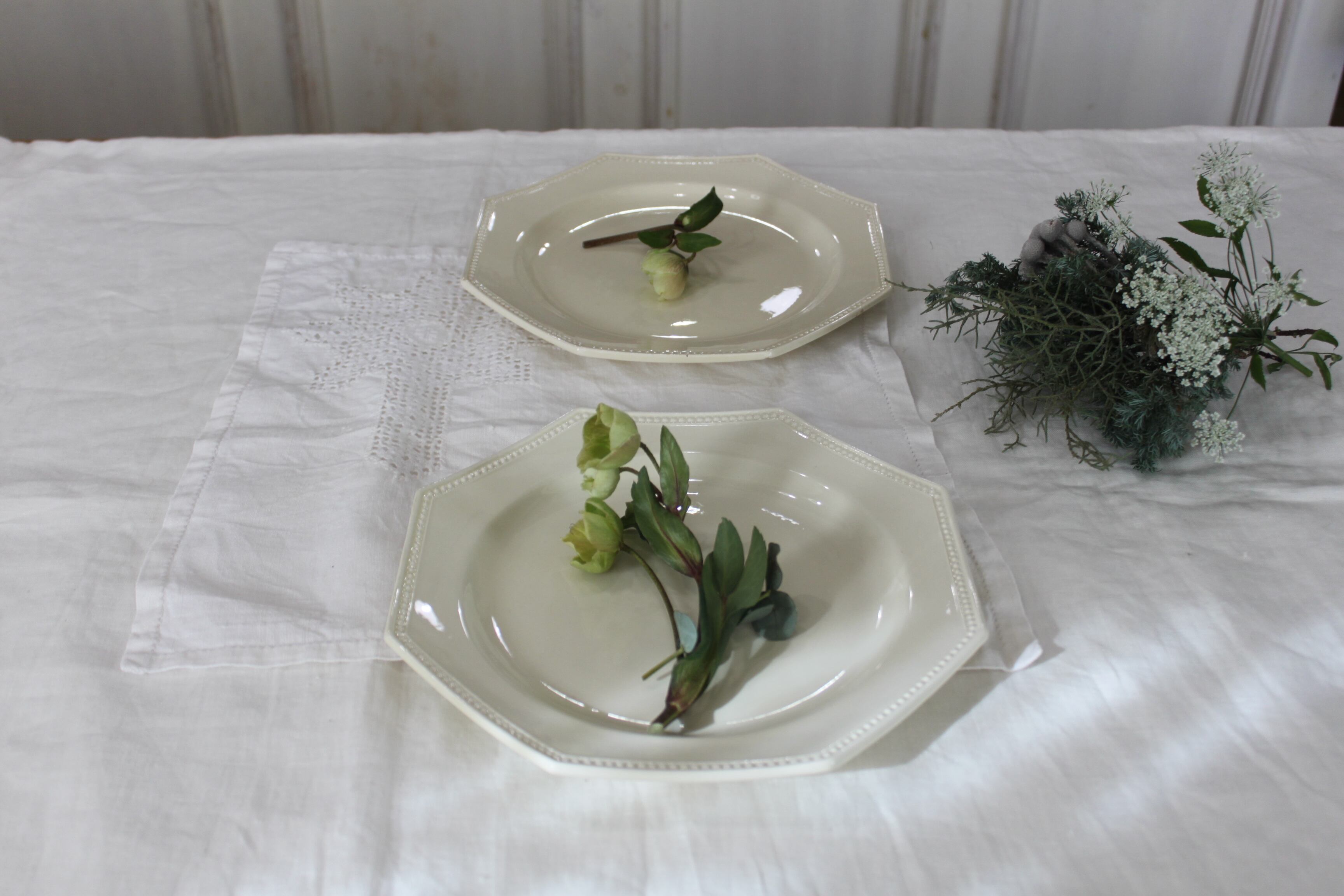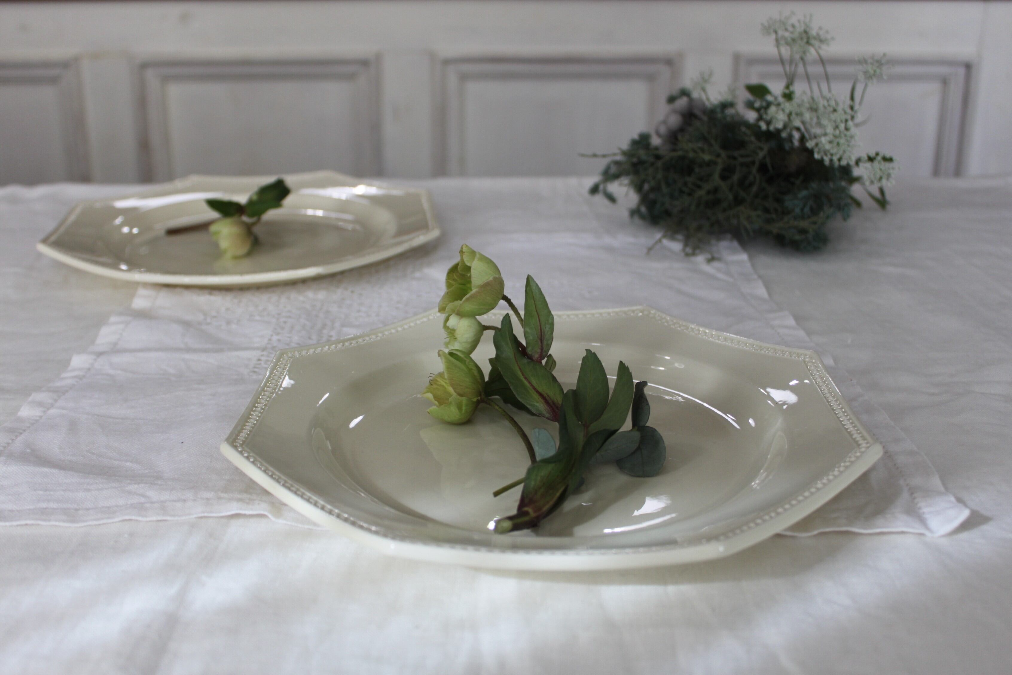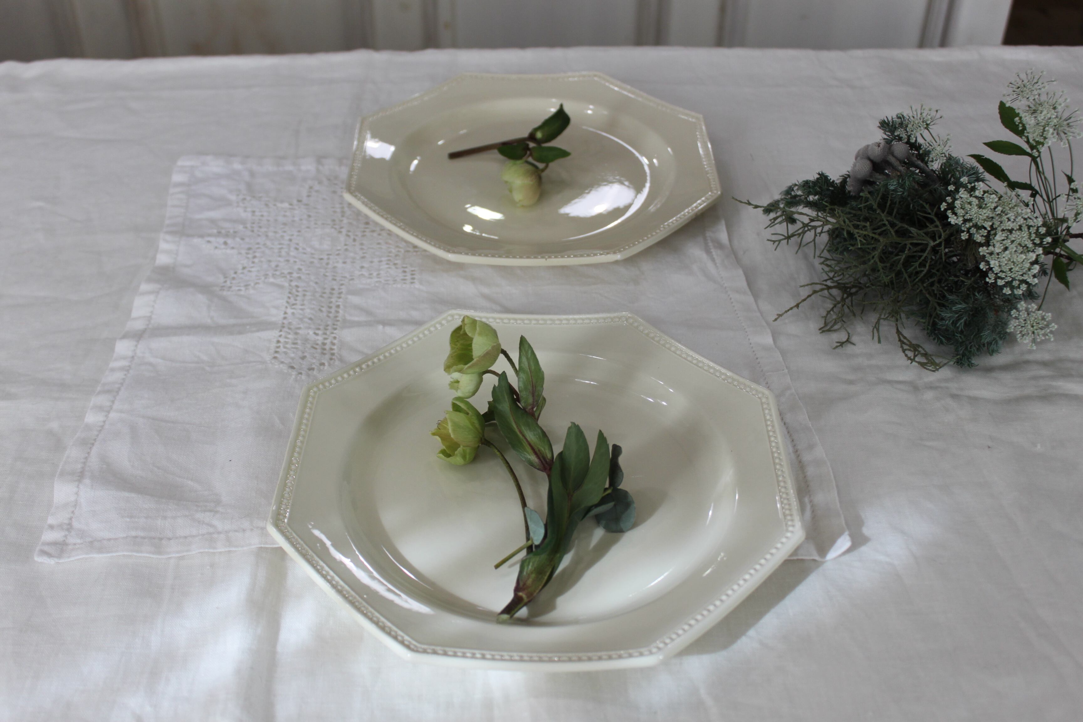 フランスより届いた、時代を超えて愛されるクレイユ・モントローの名品、オクトゴナル(八角形)ディナープレートです。