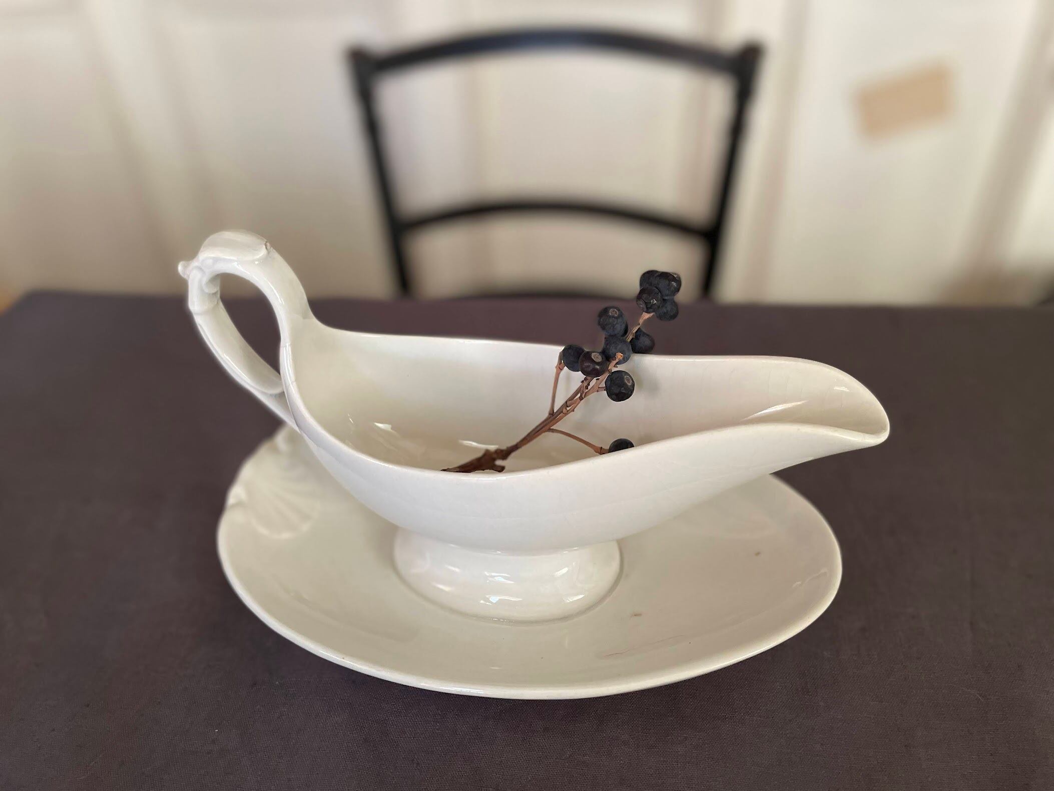 ディゴワン・サルグミンヌ窯ならではの柔らかな白の質感は、どこか温もりを感じさせ、繊細なレリーフの陰影を美しく引き立てています。