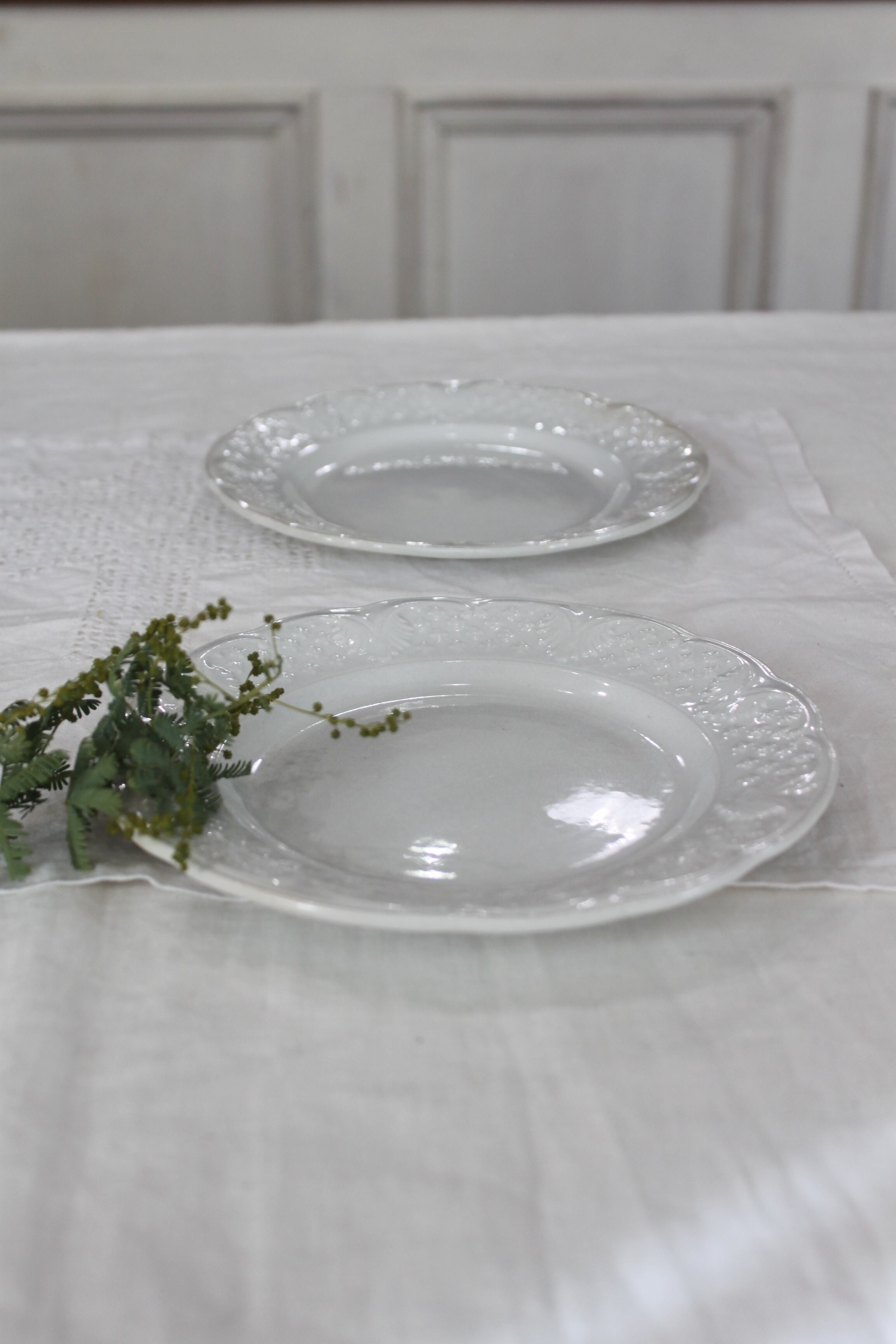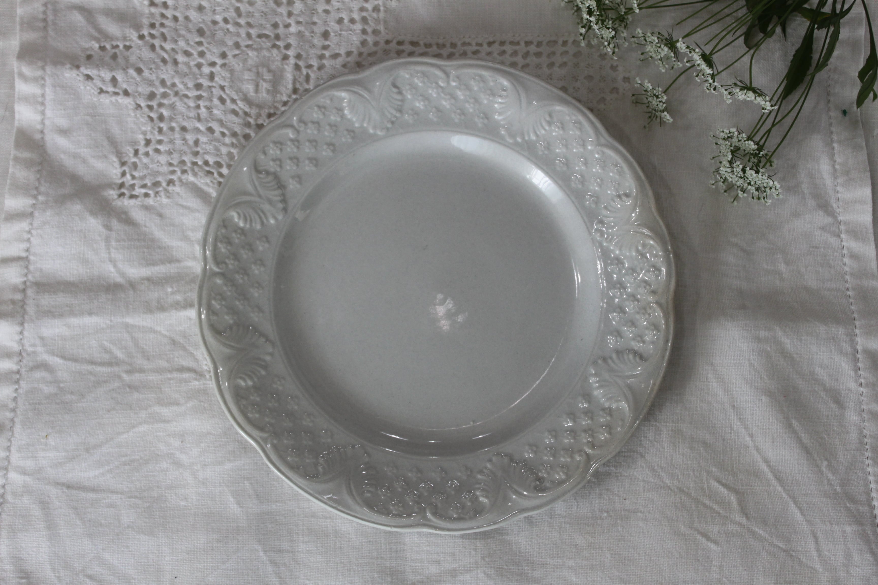 ショワジールロワ HB & CIE ロカイユと花のレリーフ デザートプレート 平皿 アンティーク フランス【V-331-A】