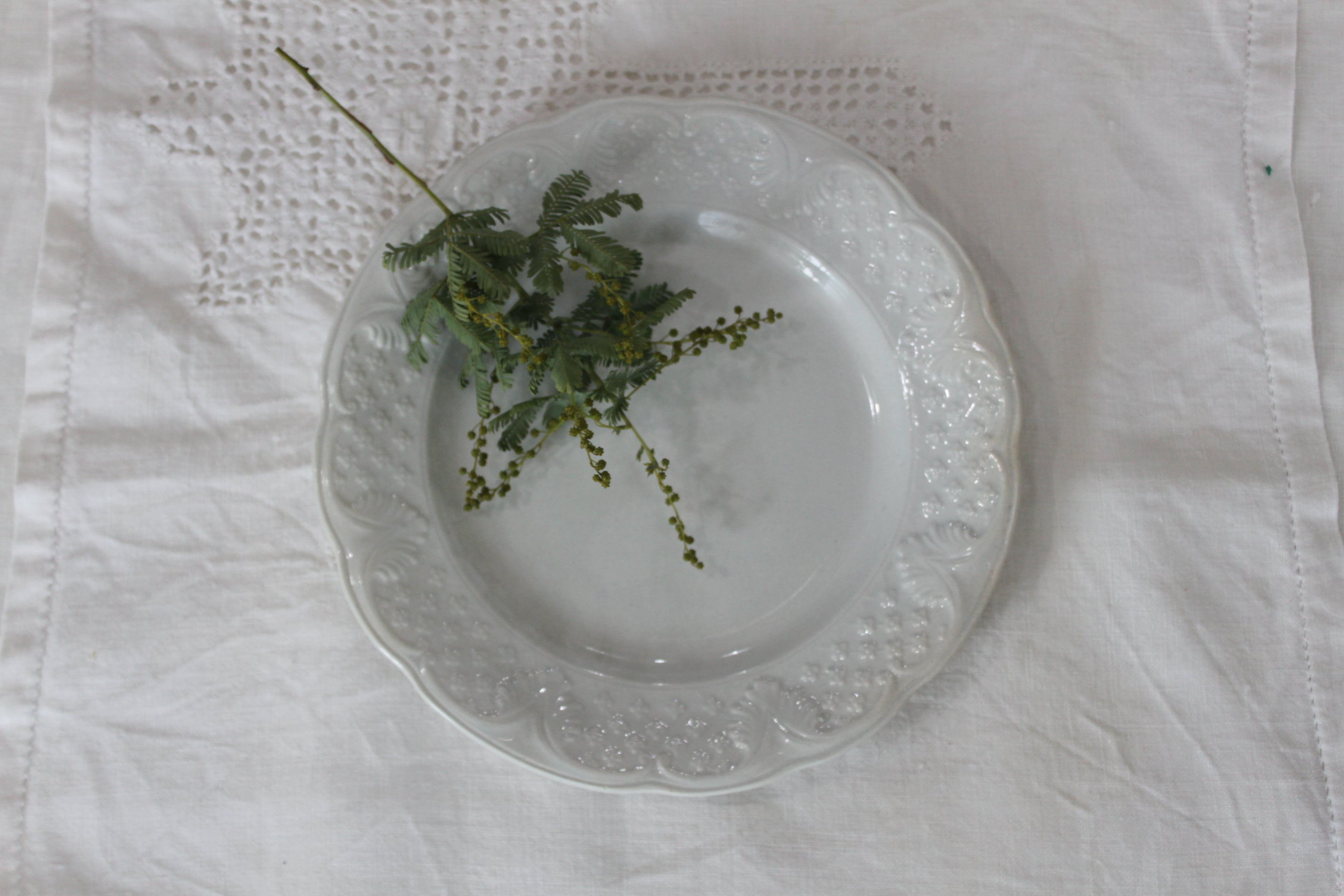 プレートのリムには優雅なロカイユレリーフと、小さな小さな花々が連なる繊細な装飾が施された、可憐さと気品をあわせ持つデザイン。