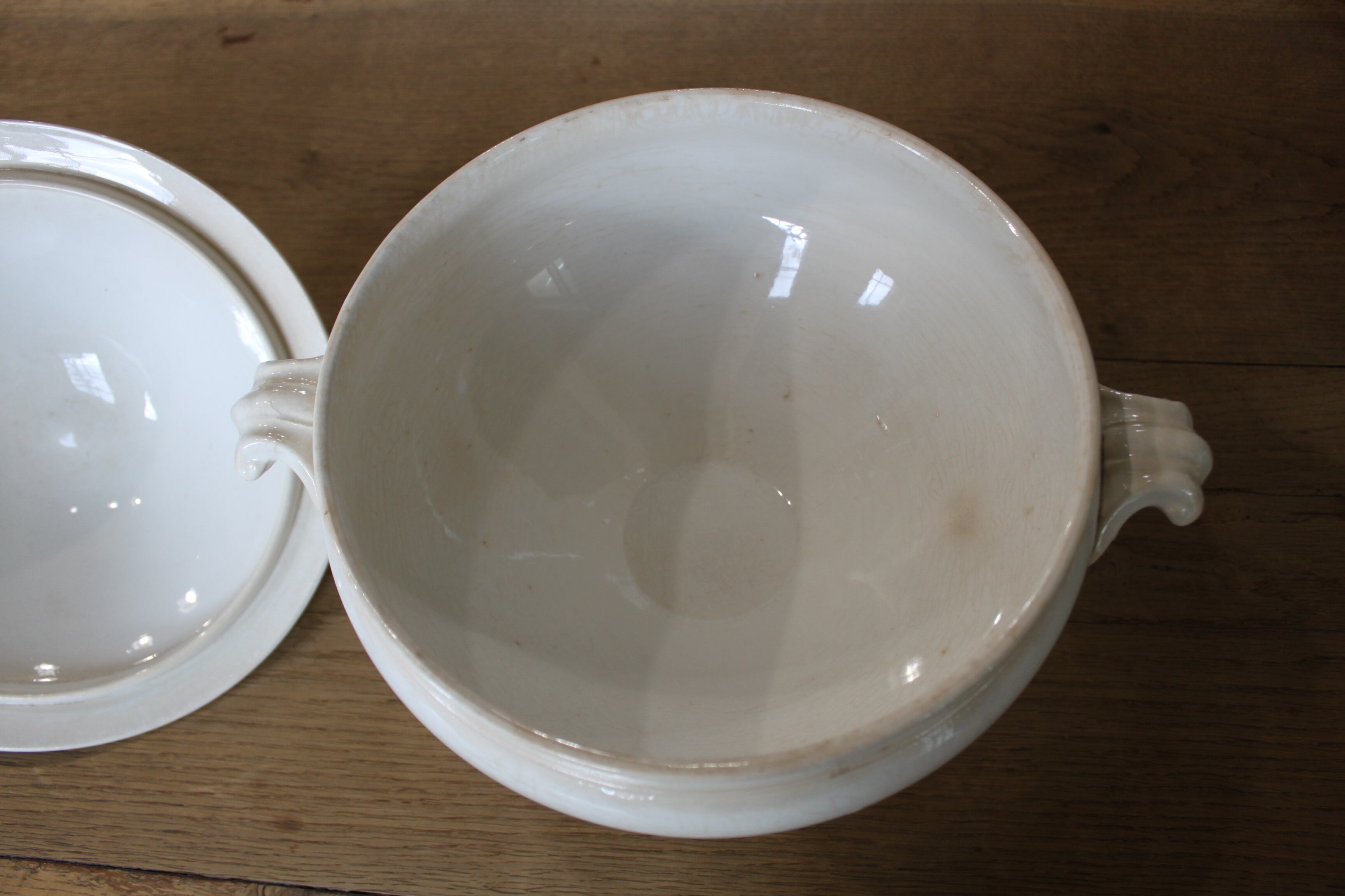 19世紀後半に作られたアンティークのため、全体に貫入や色付きが見られます。