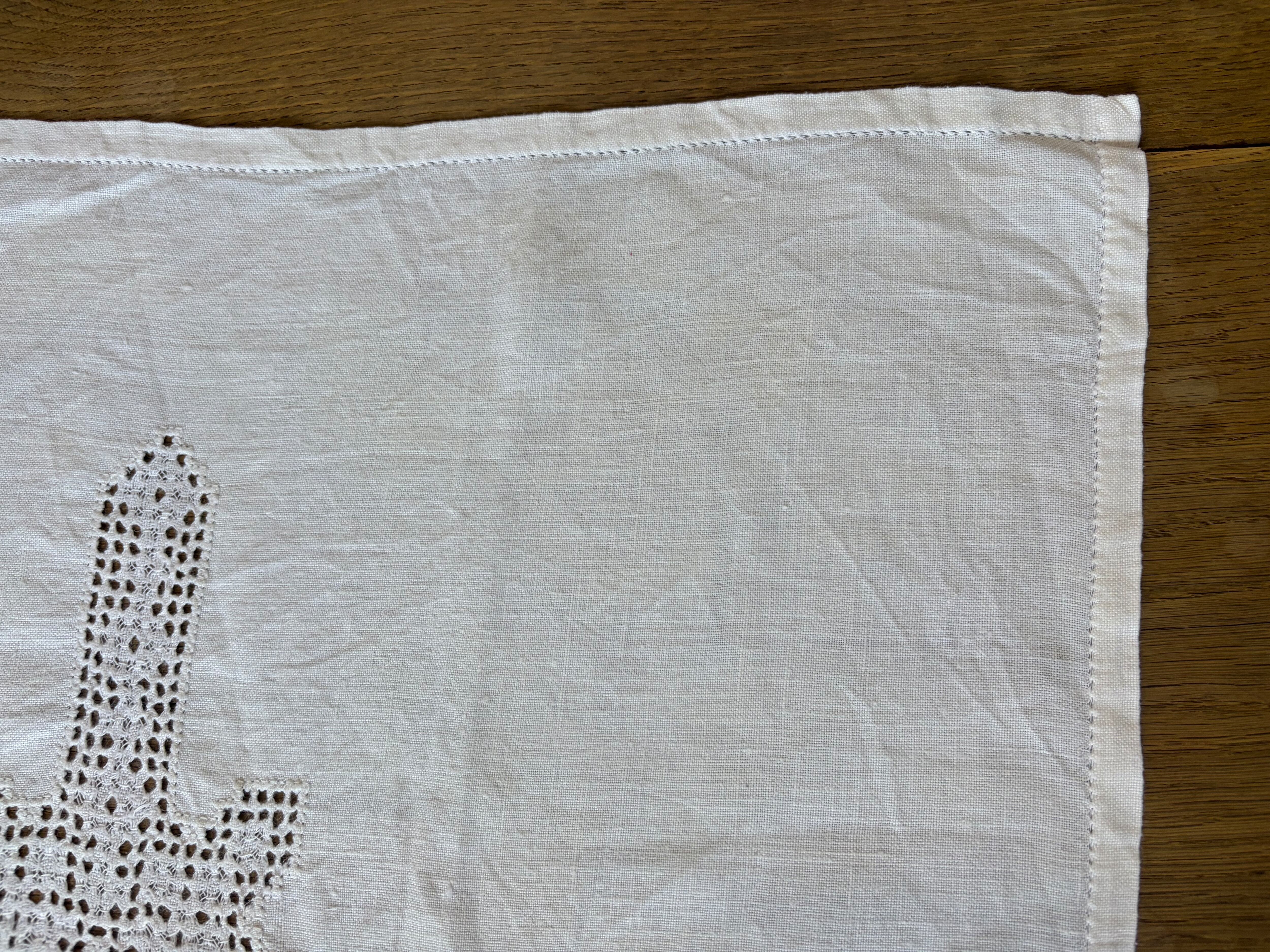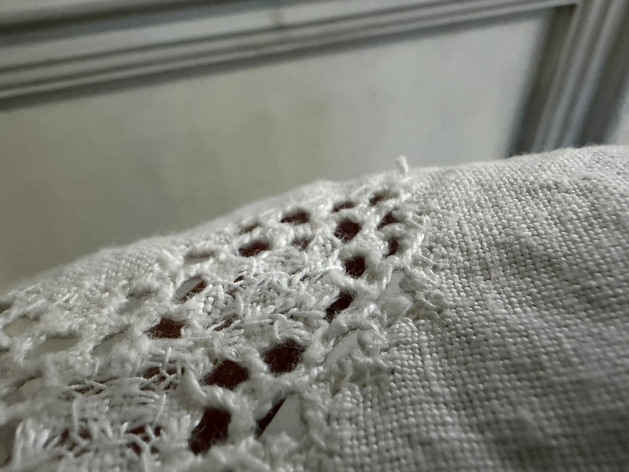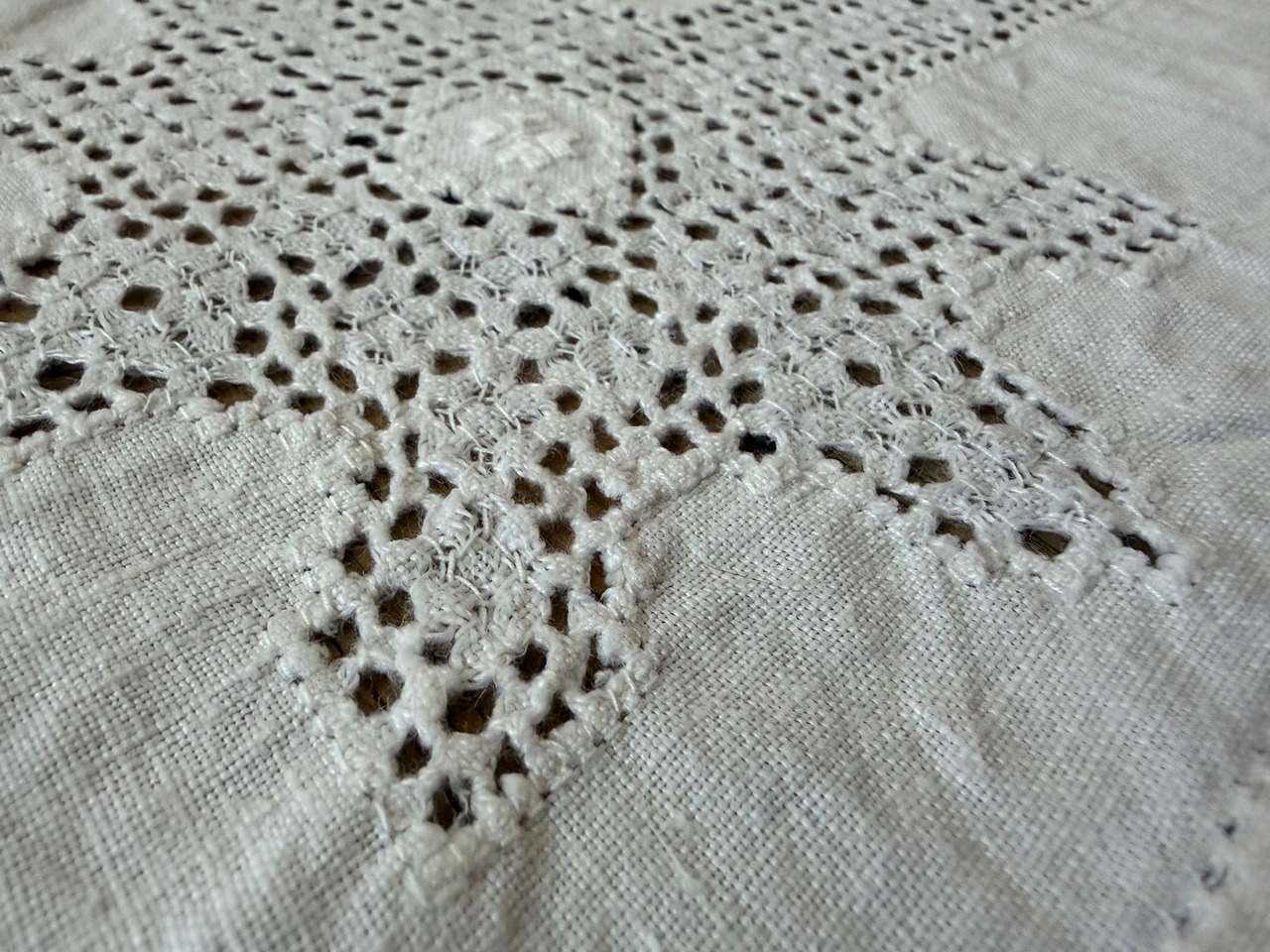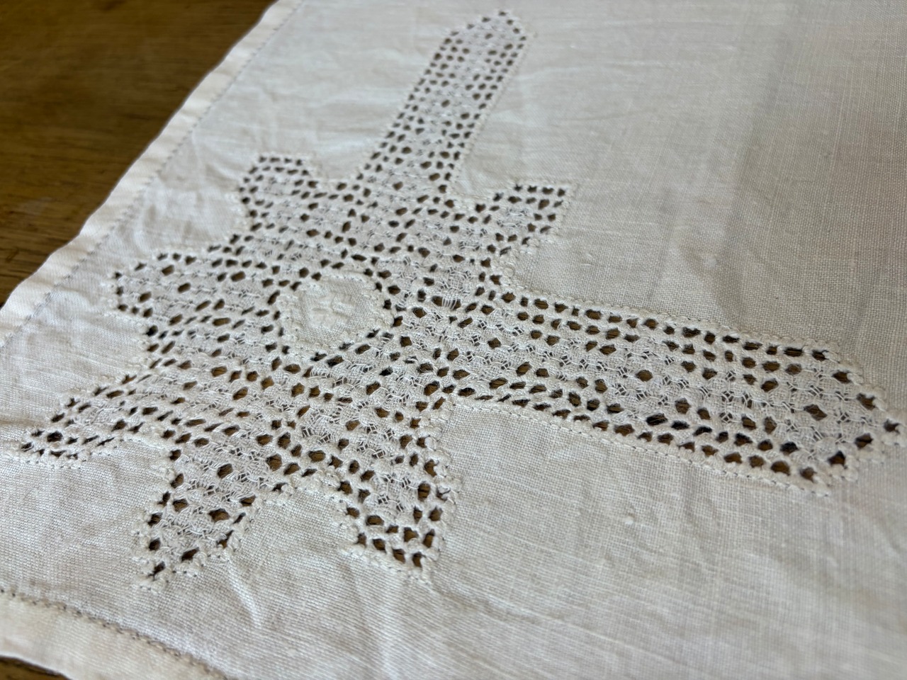 フランス アンティーク 手刺繍 ホワイトワーク ハーダンガー刺繍 麻布 【D-】