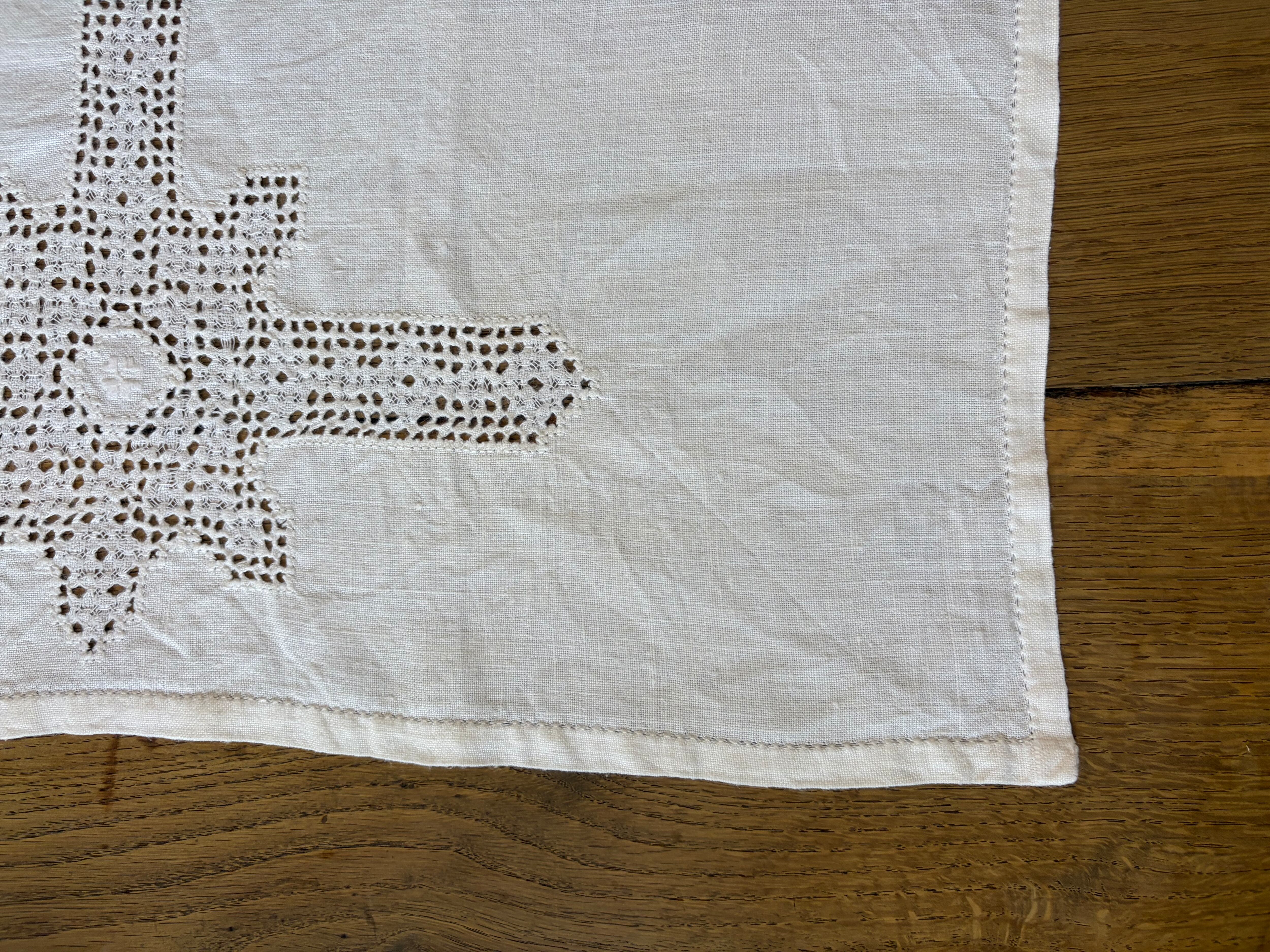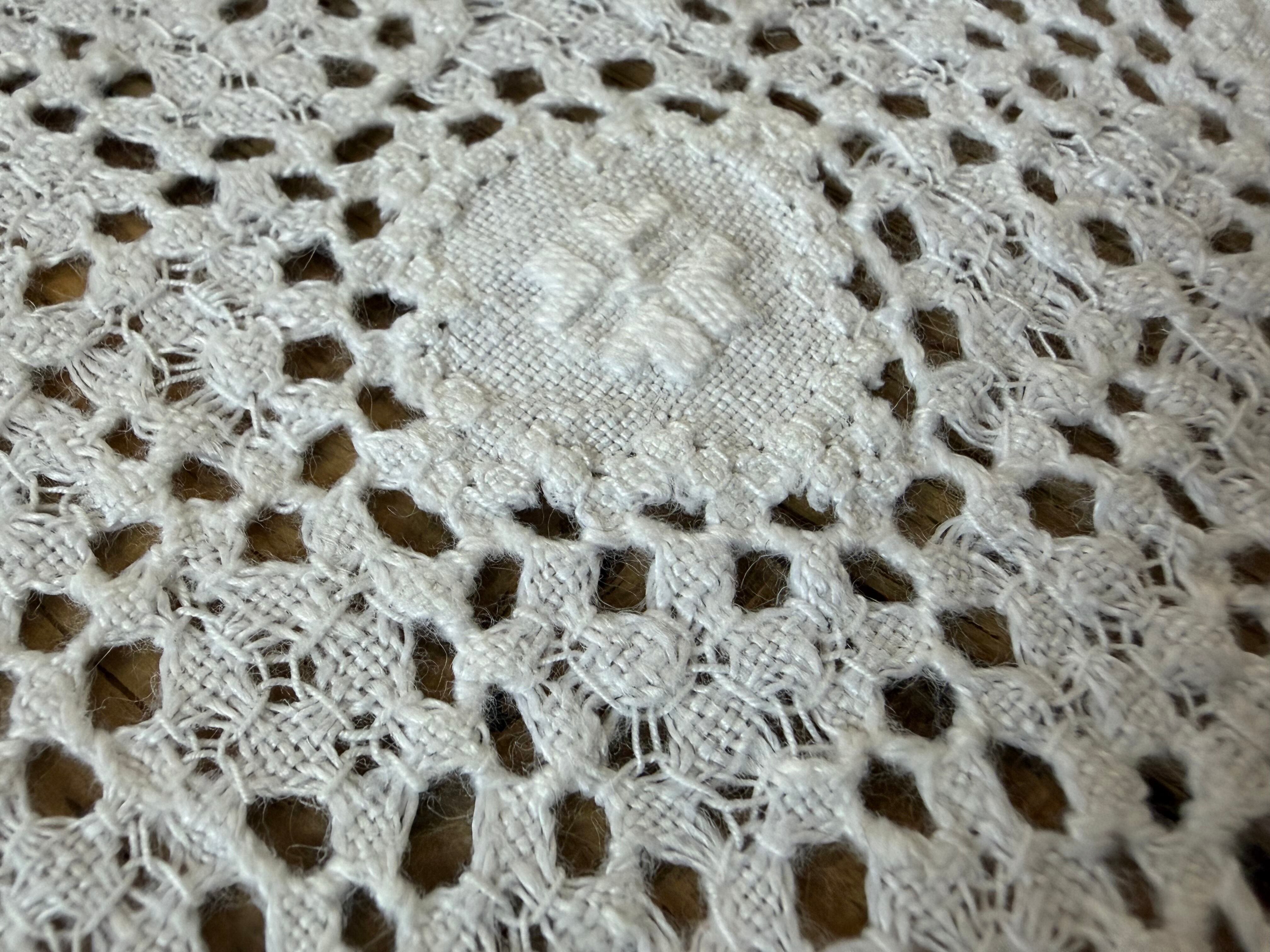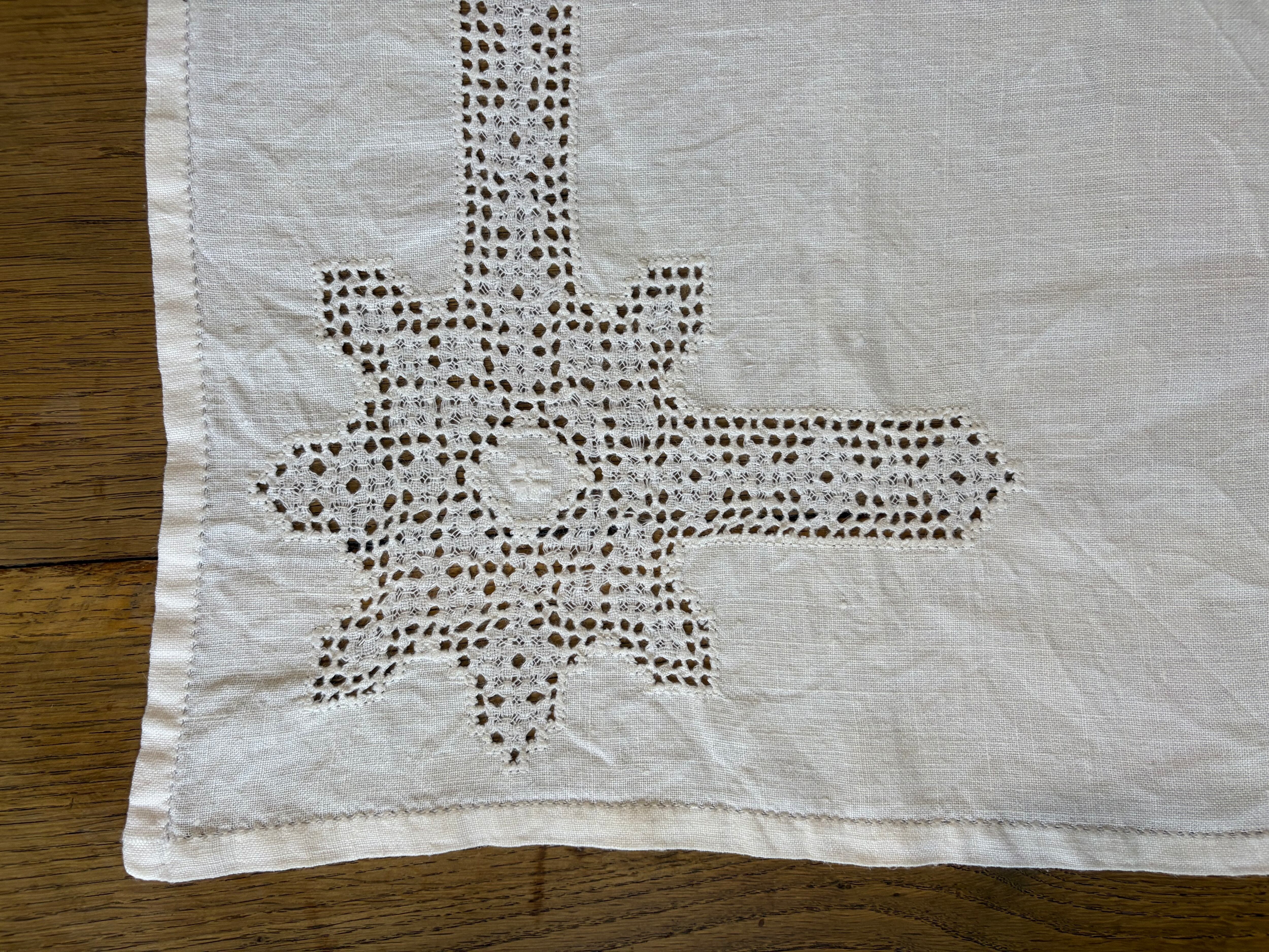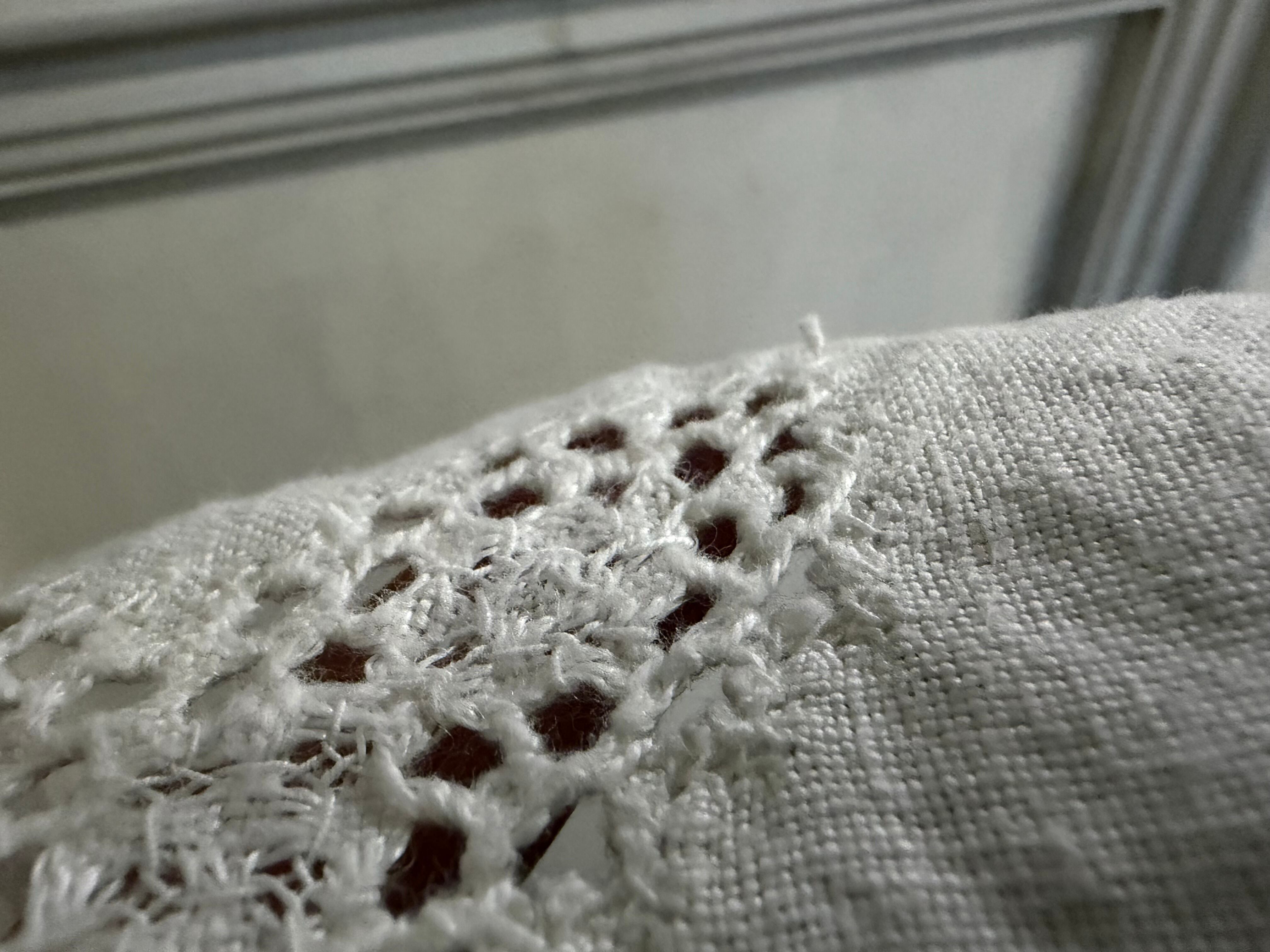 フランス アンティーク 手刺繍 ホワイトワーク ハーダンガー刺繍 麻布 【D-】