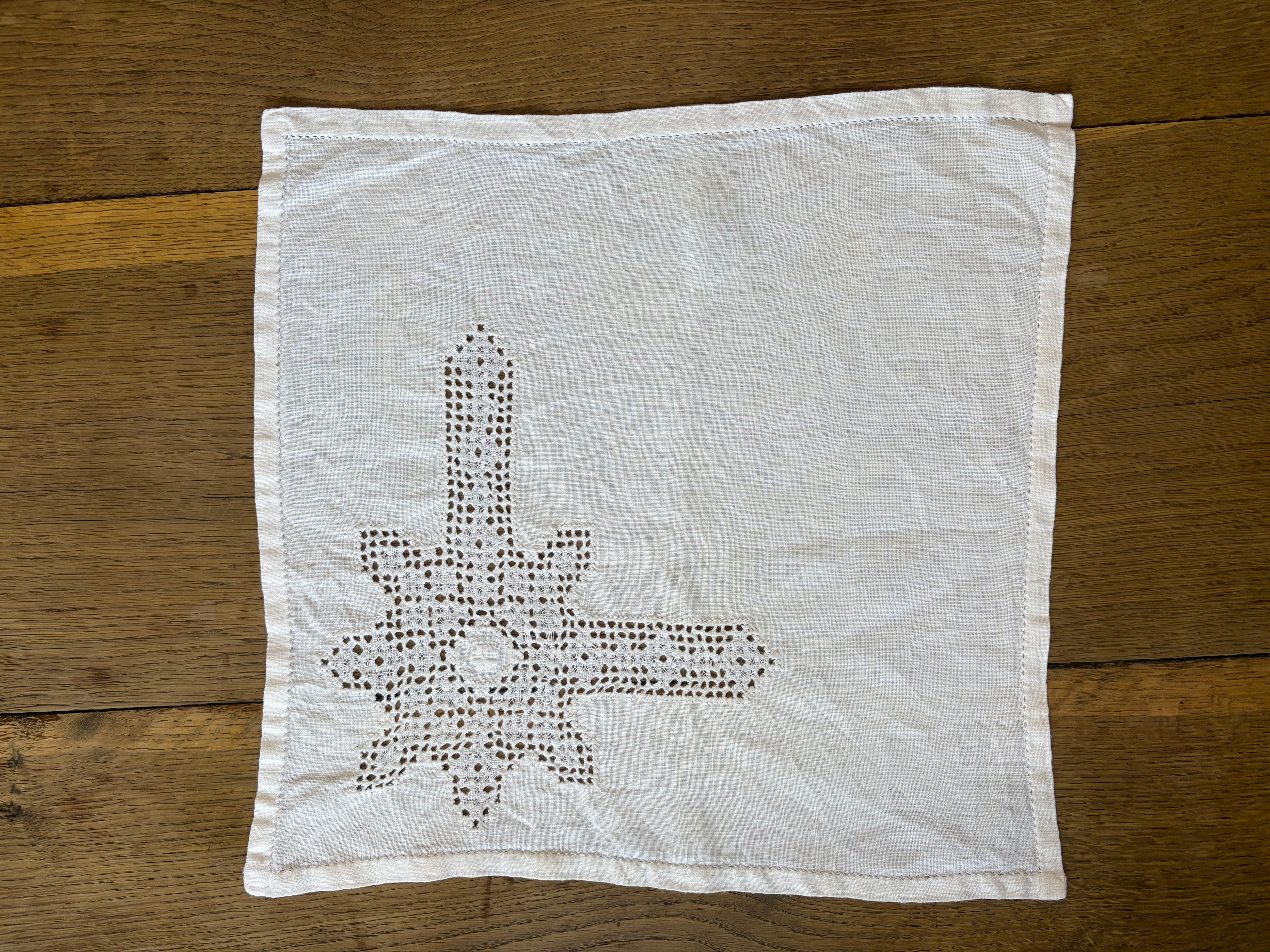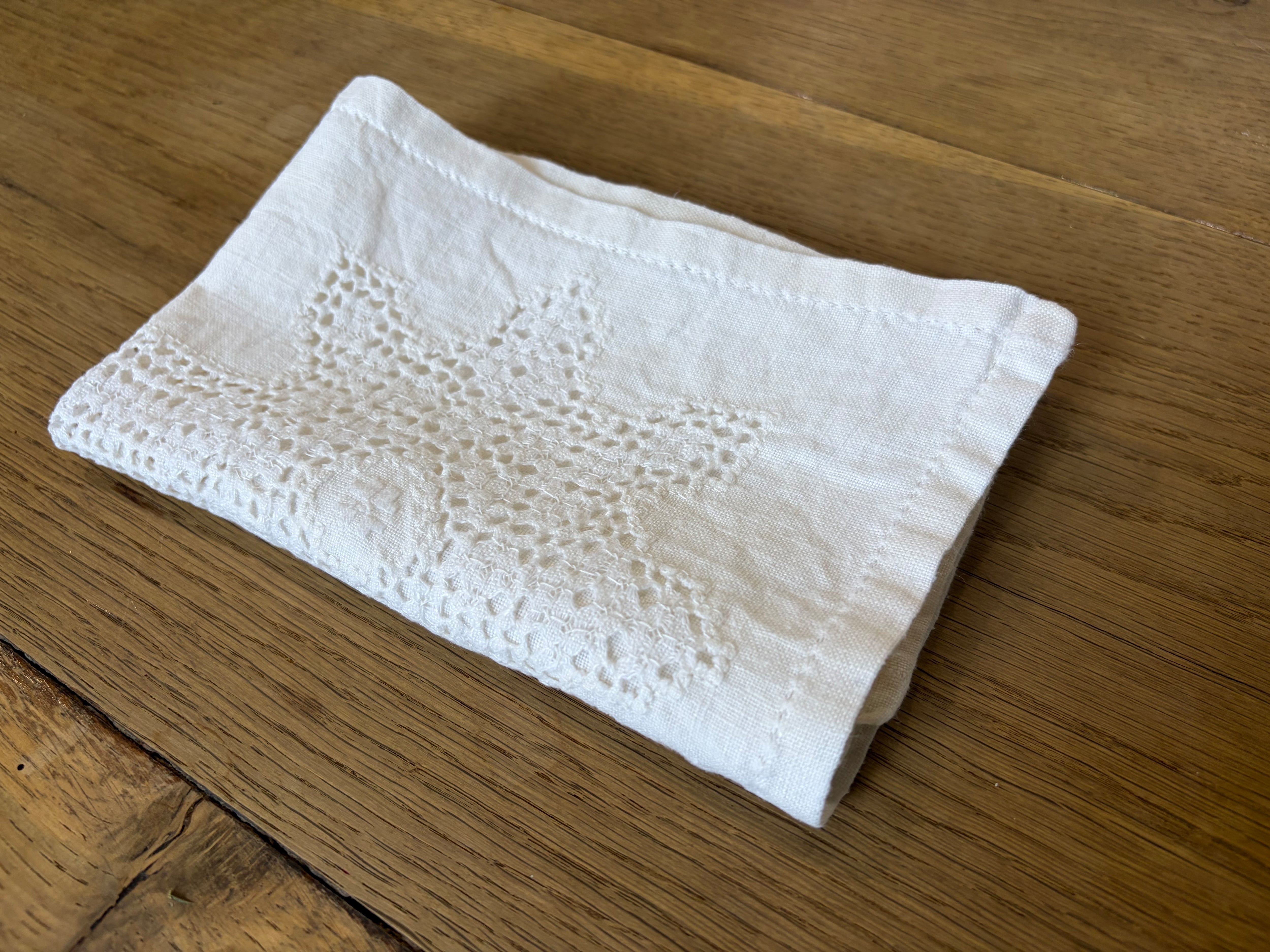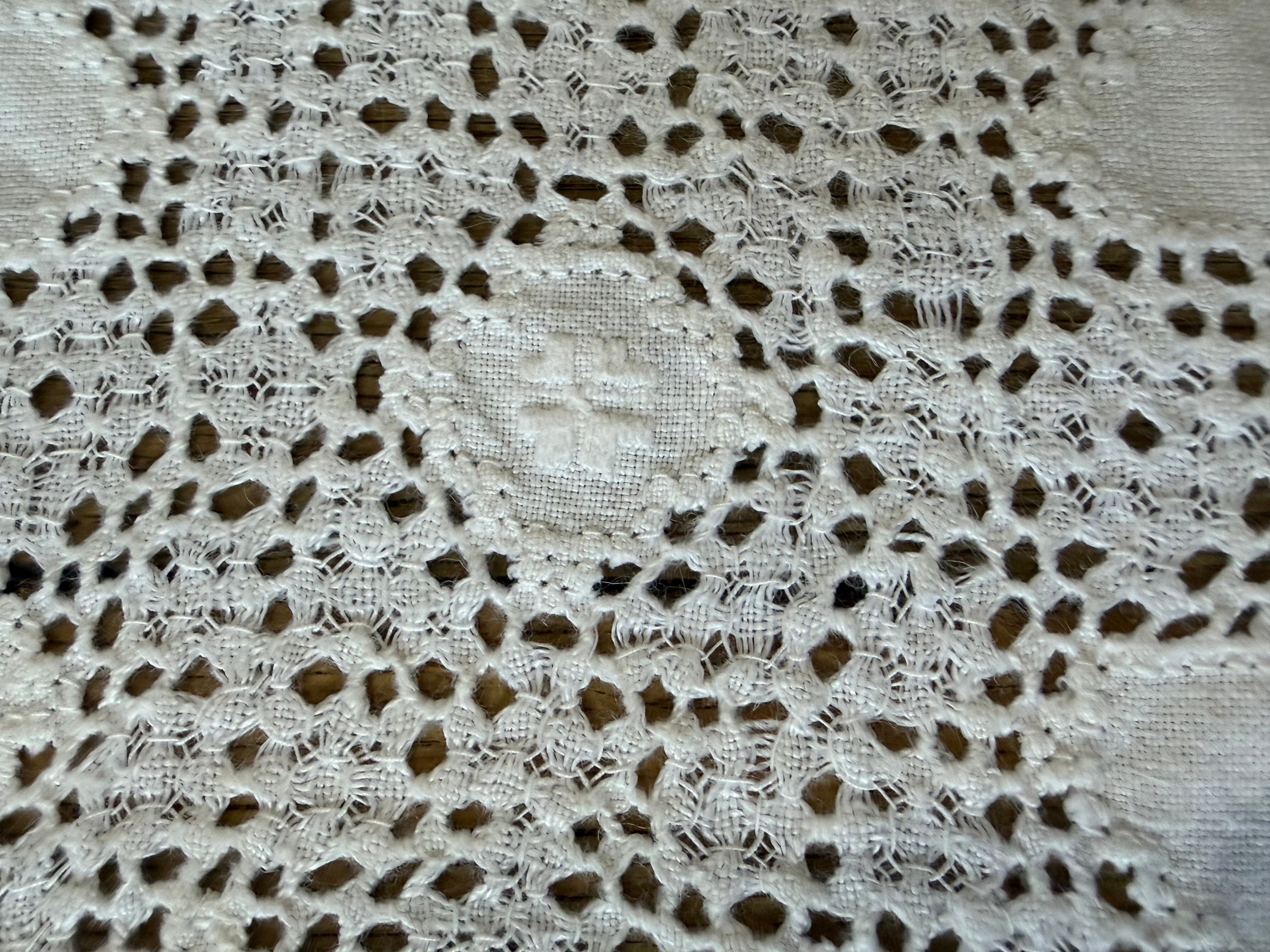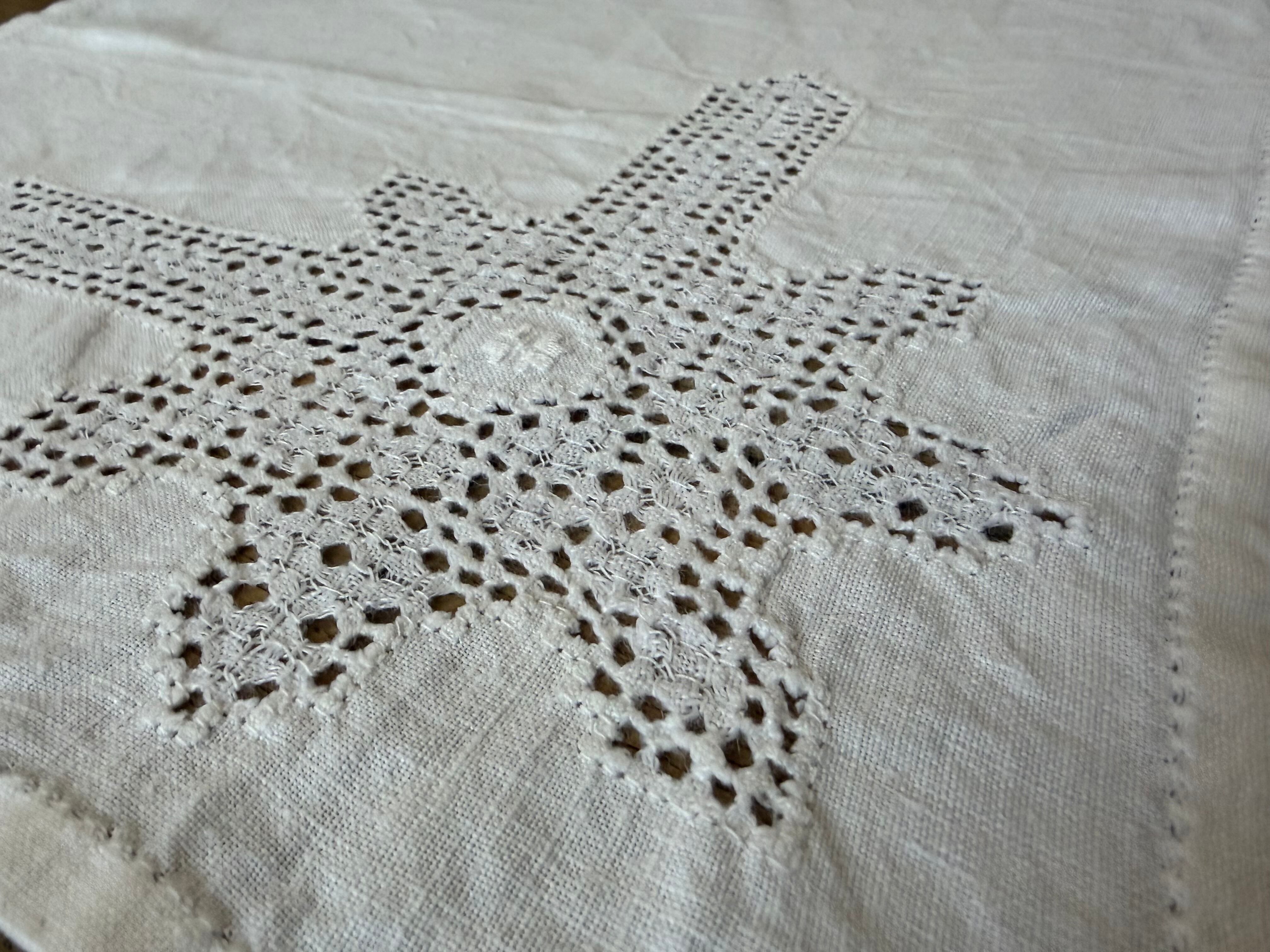 フランス アンティーク 手刺繍 ホワイトワーク ハーダンガー刺繍 麻布 【D-】