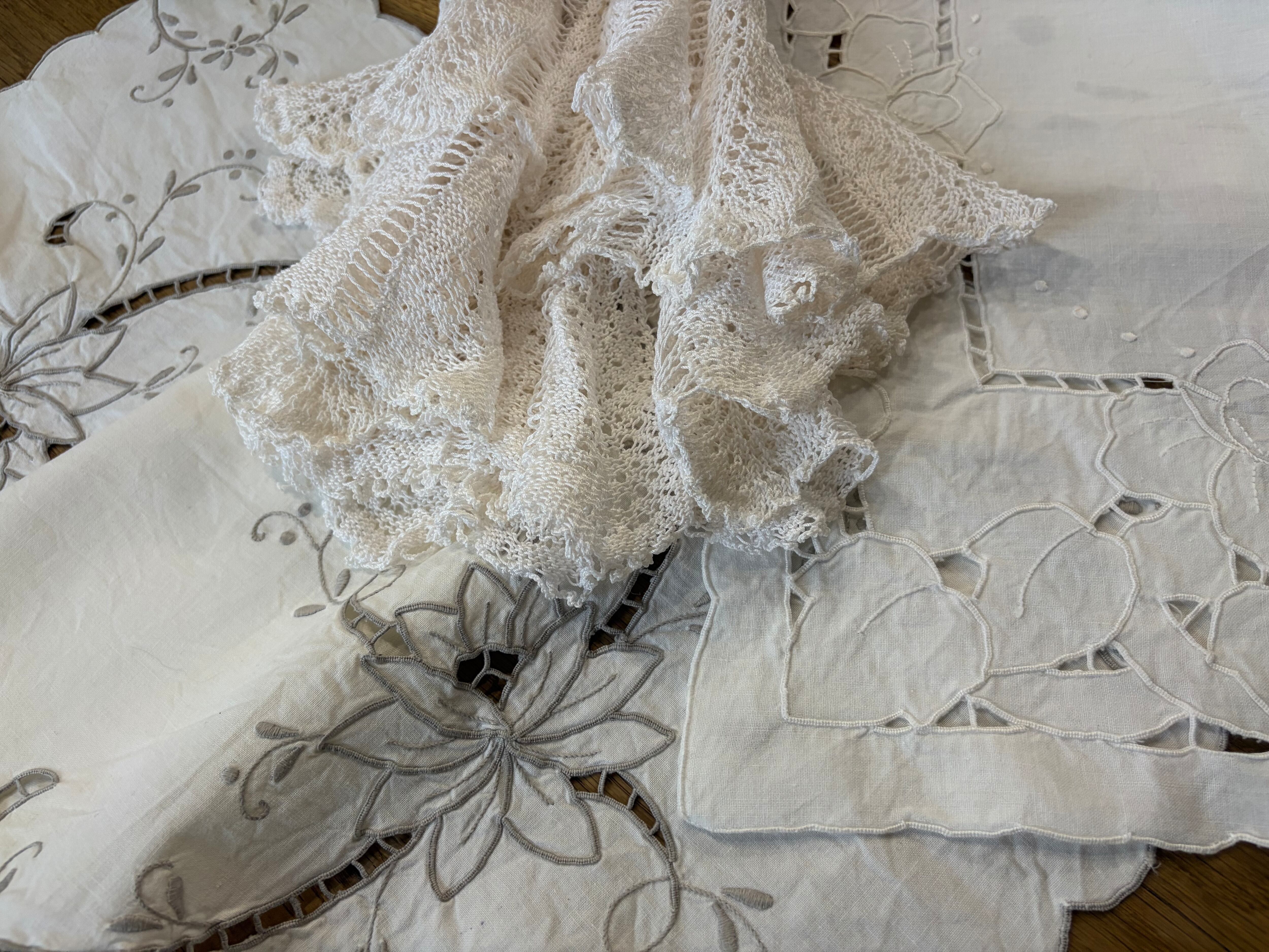 フランス アンティークカットワーク テーブルセンター【D-】