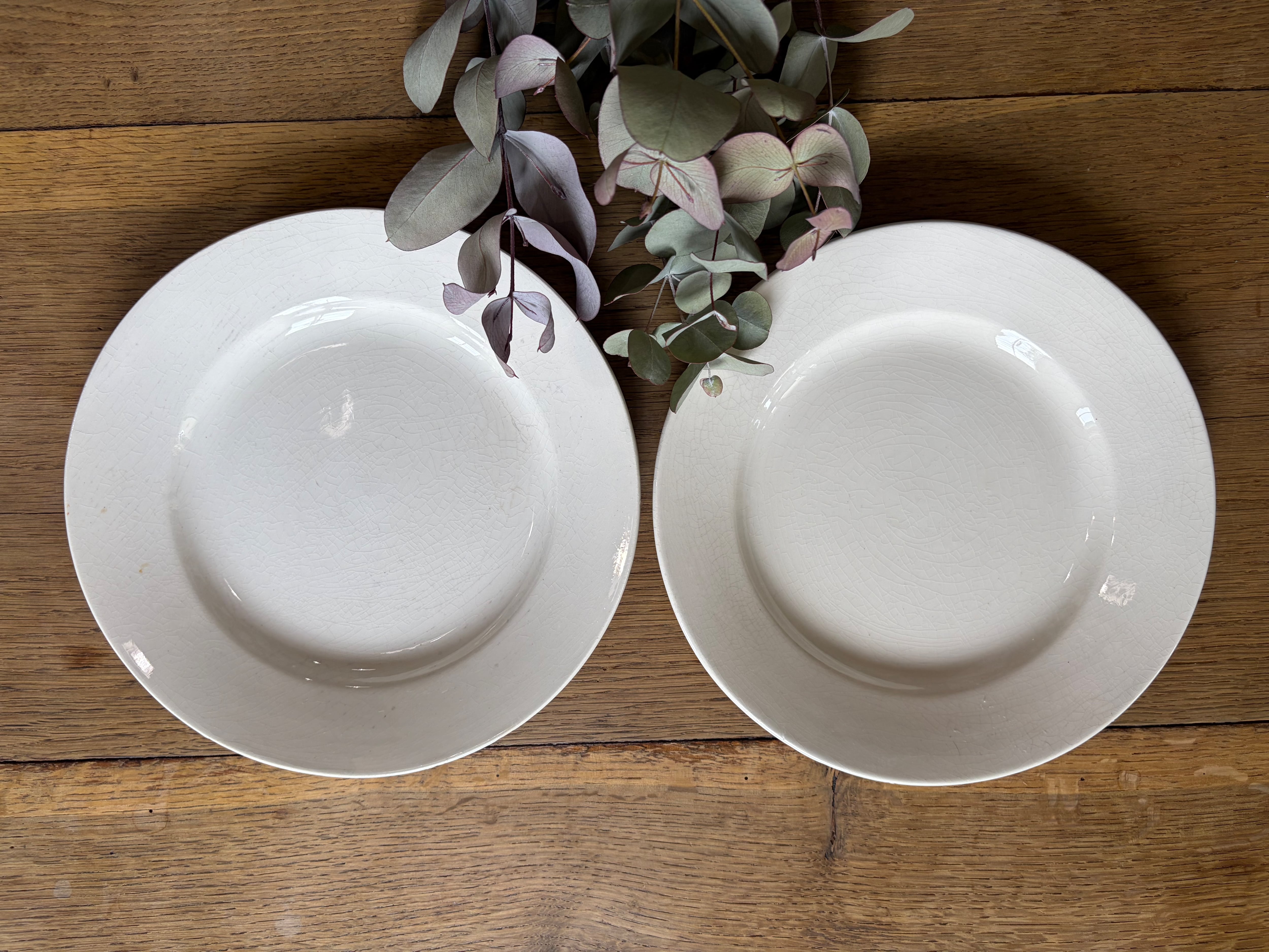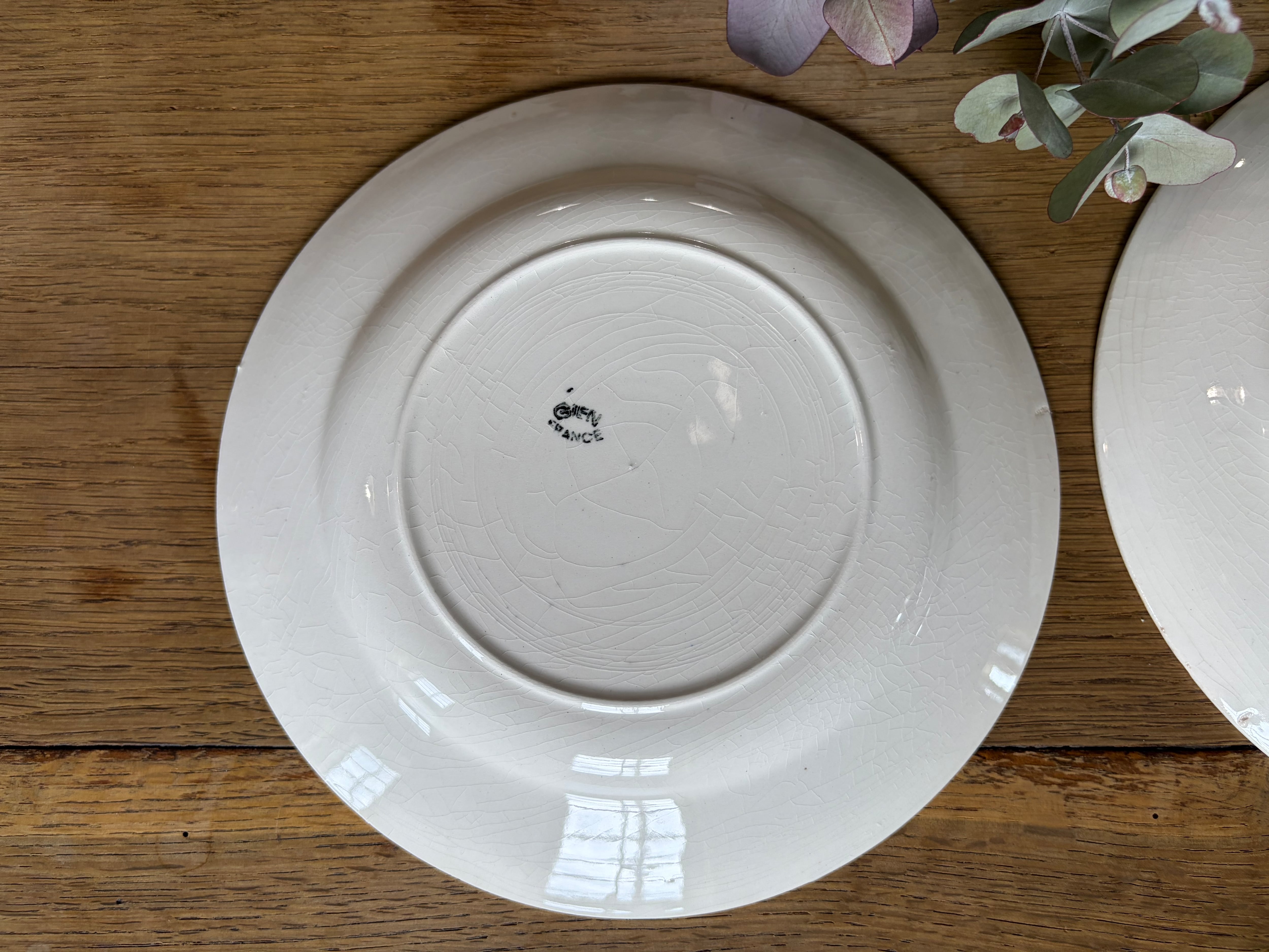 【送料無料】(2枚セット)フランスアンティーク Gien ジアン ホワイト プレート【917】【フランスバイヤーセレクト品】