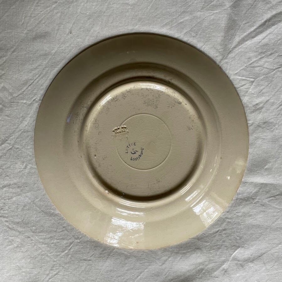 貫入、薄いカトラリー痕、縁と裏側に細かなチップ、染みがありますが、大きなダメージはなくアンティークとしては良い状態だと思われます。(画像をご参照ください)