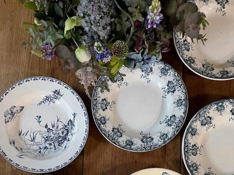 Saint Amand & Hamage(サンタマン)の、ブルーグリーンの小花模様が美しい深皿です。