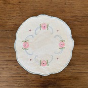 アンティークピンク小花刺繡ドイリー D-18