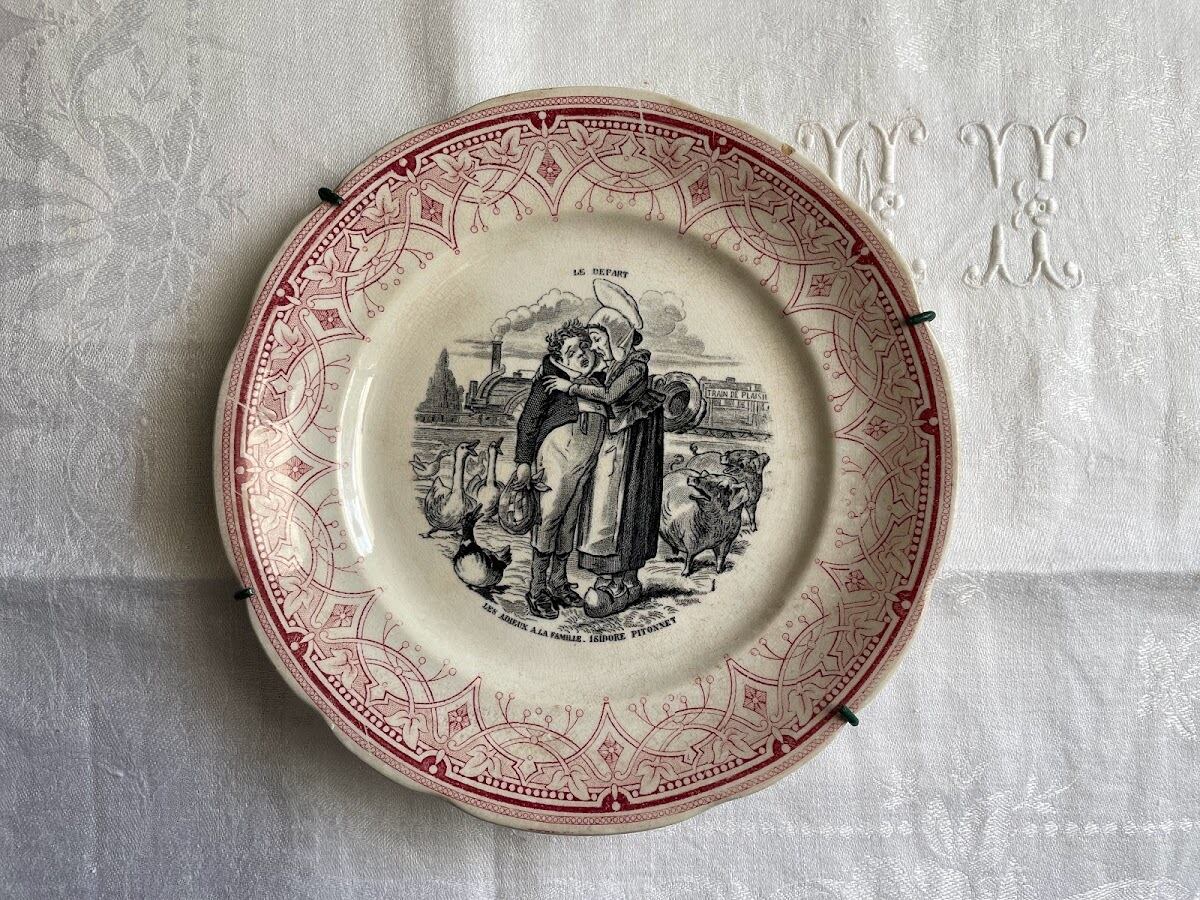 人生の一場面が描かれたプレート。このプレートは ” Le depart (出発) ” ですが、同じシリーズで場面の違う絵柄のプレートが数種類あります。