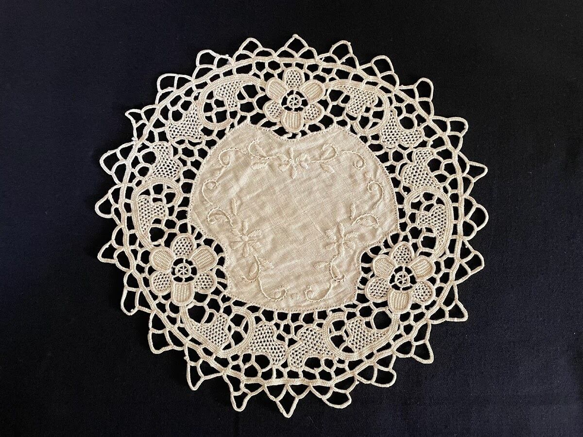 フランスアンティークレース ニードルポイントレース ドイリー D-142
