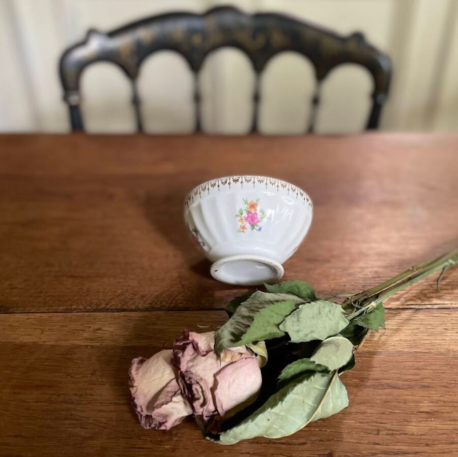 カフェオレボウル フラワー 金彩 ヴィンテージ フランス【V-64】