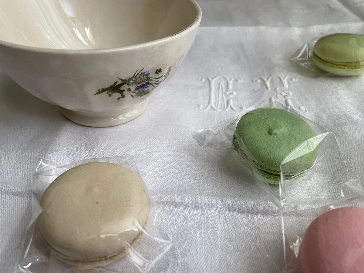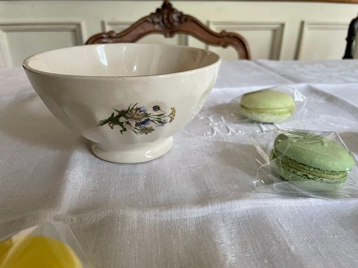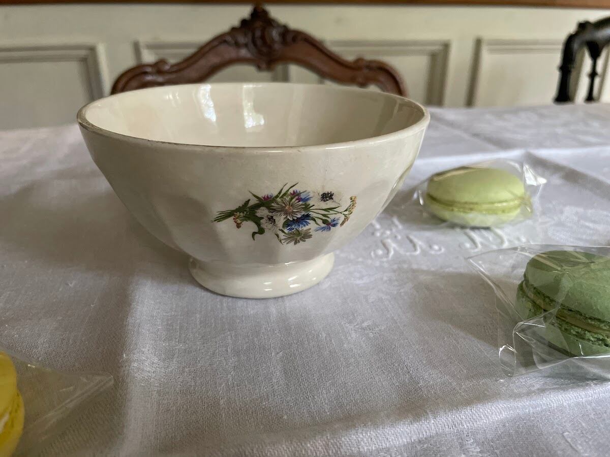 フランスのブロカントから届いたカフェオレボウルに描かれているのは、マーガレットと矢車菊、そしてヒナゲシでしょうか。