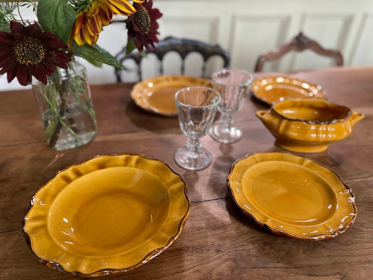 南仏プロヴァンスの陶器らしいおおらかであたたかな雰囲気が感じられるこちらのデザートプレートはプロヴァンスの窯、ADPのもの。