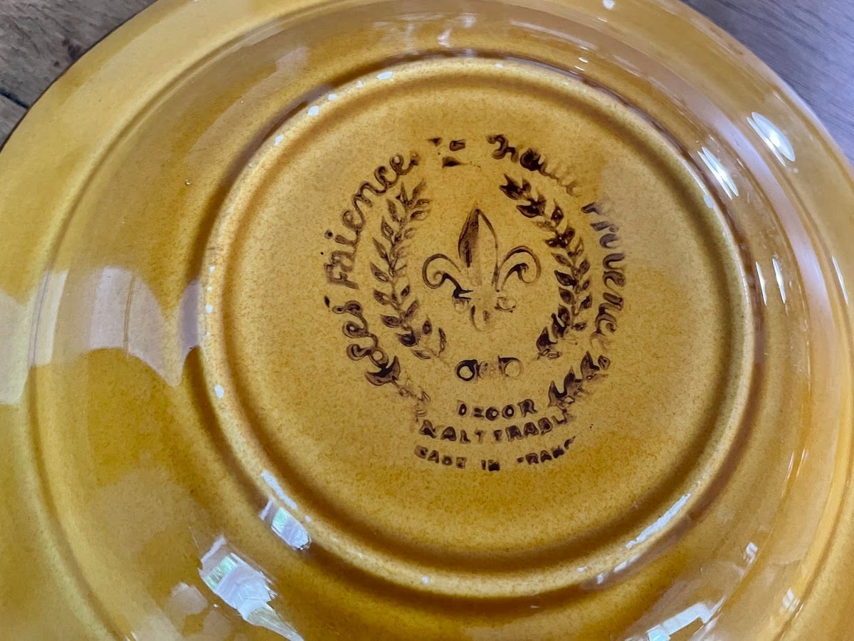 南仏プロヴァンスの陶器らしいおおらかであたたかな雰囲気が感じられるこちらの深皿プレートはプロヴァンスの窯、ADPのもの。