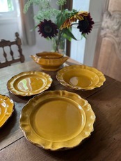 南仏プロヴァンスの陶器らしいおおらかであたたかな雰囲気が感じられるこちらのディナープレートはプロヴァンスの窯、ADPのもの。