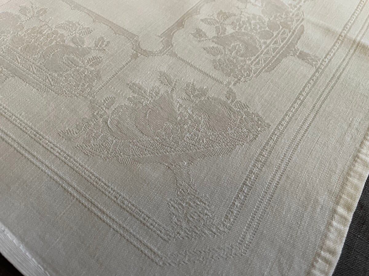 光の当たり具合によって模様が浮き出るダマスク織りのリネンは、上質さを感じる滑らかな手触りです。