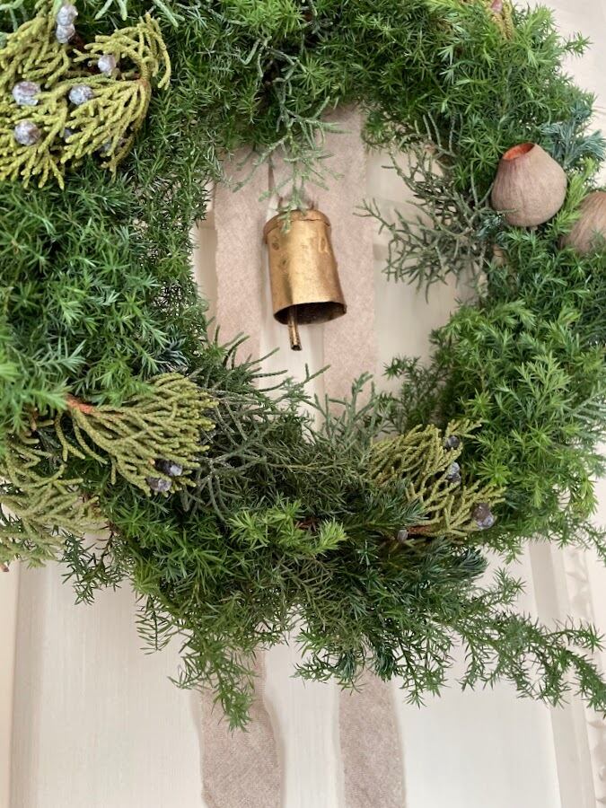 針葉樹とベルガムナッツのNoëlリース お正月用にも アイアンベル付き【G-1】