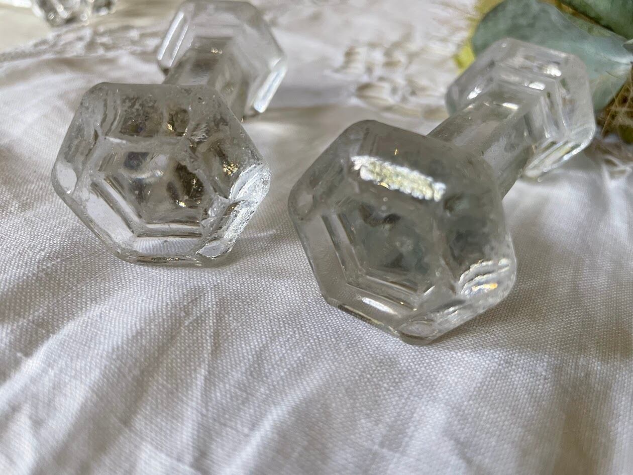 【2個セット】 アンティーク ガラスのナイフレスト クリスタル 六角形 カトラリーレスト B 【59】