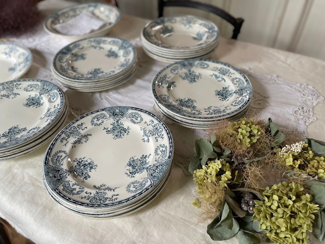 お屋敷からまとまって出てきたようで、同じシリーズのプレートやサイズの違うプレートをたくさん入荷しています。数枚揃えてお使いいただくとまとまった雰囲気で素敵です。