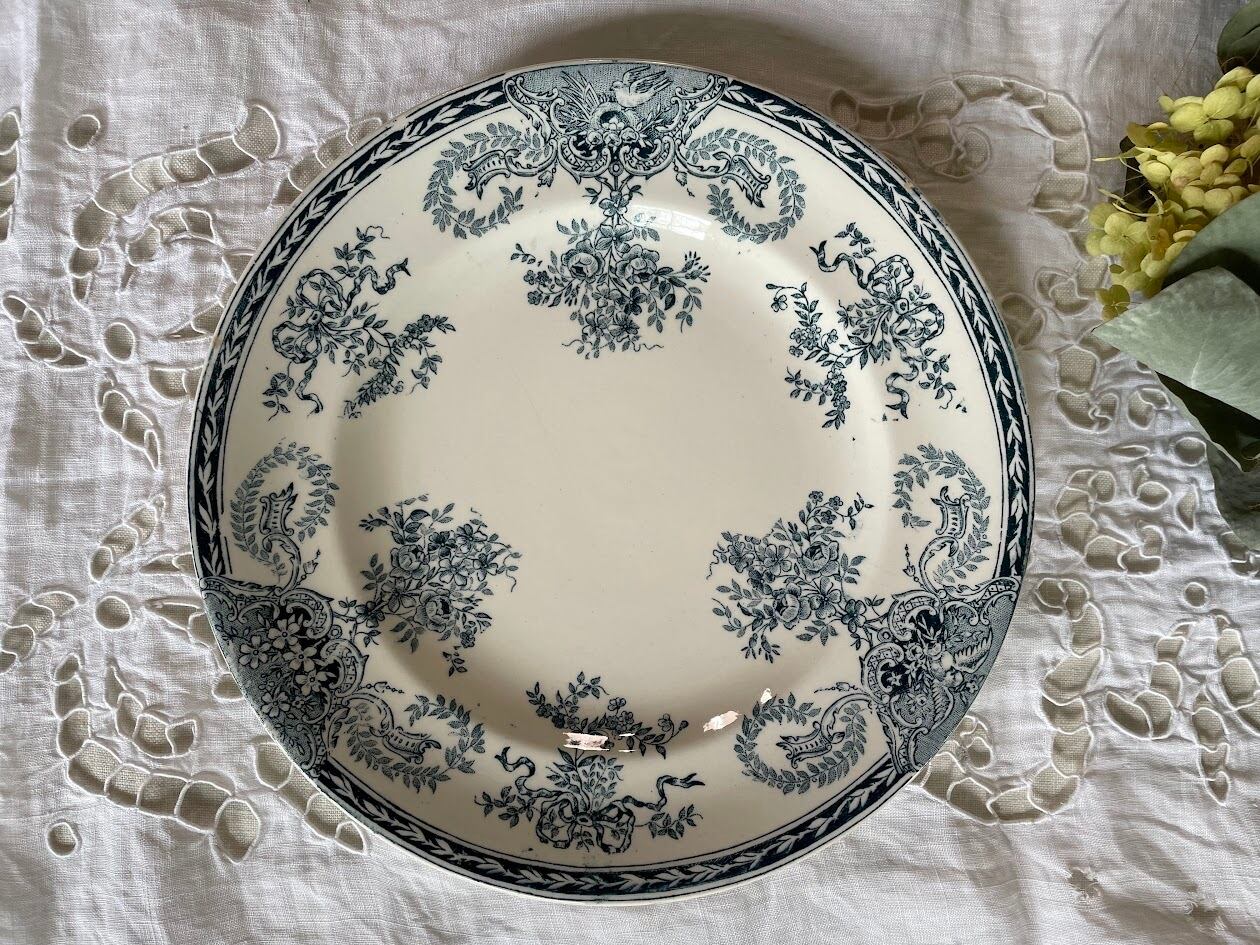 鳥とリボン ロンウィ 平皿 ディナープレート アンティーク フランス 【V-220】